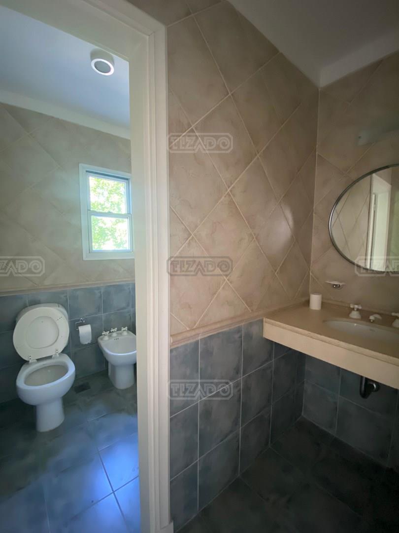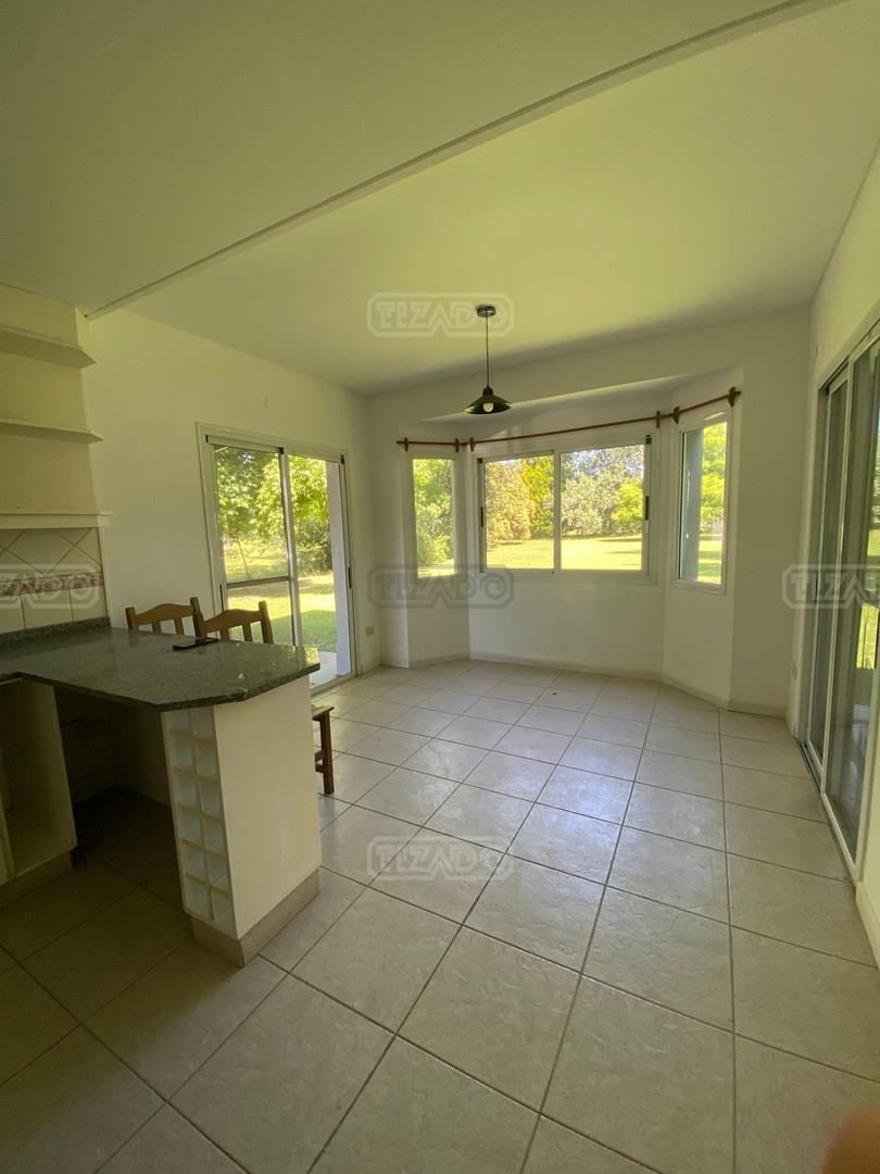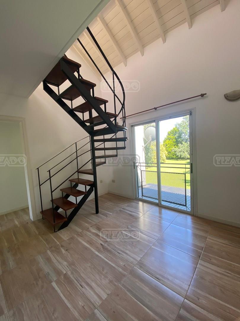 Propiedad en alquiler anual sin muebles!! En planta baja hall recibidor con doble circulacion. Toil de recepcion. Living amplio con mucha luz natural. Comedor diario con salida a la galeria. Cocina comedor. Dependencia de servicio con baño, y lavadero con entrada de servicio. En planta alta 3 comodos dormorios, uno de ellos en suite con vestidor y baño y aire acondicionado. Los otros dos con interior de placard. Baño completo. En la tercera planta play o escritorio, y dos cuartitos de guardado separados. Galeria con parrilla. Lote parquizado y con fondo a pulmon verde. Calefaccion por piso. Alquiler anual sin muebles: u$s 1.250 + expensas + munic y servicios. Es un lugar encantador emplazado en un entorno natural único donde el paisaje en tonos de verdes aporta belleza y serenidad alejando el vértigo de la ciudad.Sumado al mejor estilo de campo se encuentran los bulevares, las calles alumbradas con farolas, los gazebos y las plazoletas adornadas con coloridas flores, producto del buen gusto y el refinamiento. Seguridad las 24 horas y triple cerco perimetral energizado rodeando los 6,5 Km. del predio. Alumbrado de espacios comunes Calles asfaltadas Tendido subterráneo de electricidad y servicios Cerco perimetral Caballerizas Gazebos Excelente parquización y forestación Paisaje natural único Aves autóctonas acompañan las lagunas Más de 50 especies arbóreas Senderos ecuestres Colonia de Vacaciones Talleres de Recreación Iniciación Deportiva Escuelas Deportivas Fitness para Adultos Escuela de Natación Deportes Alternativos