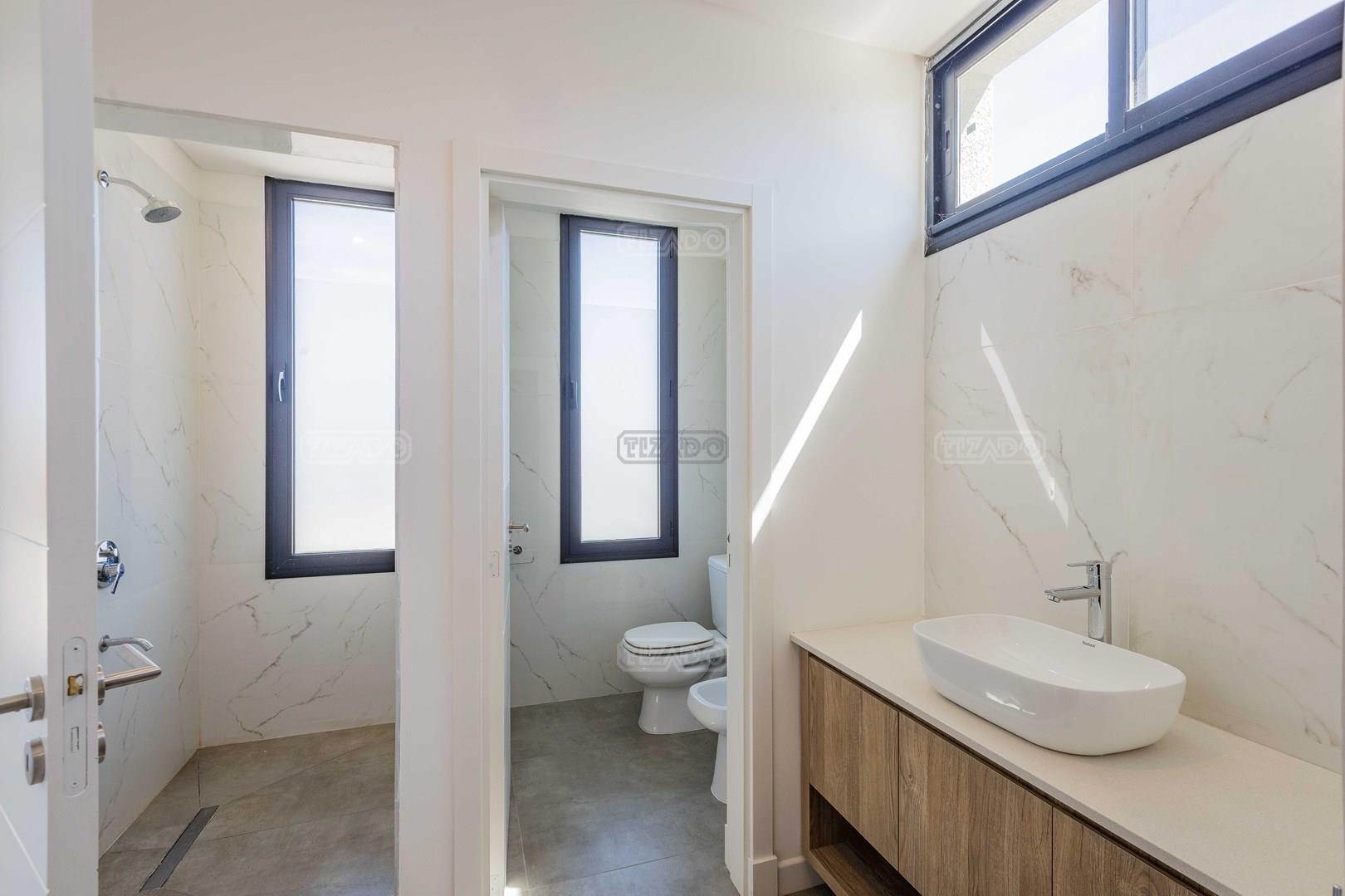 Casa en venta en el barrio Araucarias, Puertos. SE VENDE CON RENTA HASTA OCTUBRE 2027. La casa cuenta con 6 ambientes. Excelente calidad constructiva, orientacion Noreste, sol todo el dia en la pileta. Calefacción por piso radiante, pre instalación para Aires Acondicionados, riego automático, jardin parquizado, aberturas en negro de aluminio con doble vidrio (DVH), grifería y sanitarios de calidad Premium, pisos de porcelanato, placas de 1.60 x 0.80 mts. Planta Baja: -Habitación de servicio u oficina con baño propio que permite ser usado desde el exterior para uso de pileta -Toilette para visitas -Cocina con mucho espacio de uso y de guardado, isla que integrada al living -Alacenas y bajo mesadas con tapas de Silestone negro -Horno empotrado electrico y anafe a gas -Lavadero completo de buenas dimensiones con salida independiente. -Galería cubierta de 36 M2 con parrilla e isla con bacha -Piscina de 3,5 x 7 mts con playa humeda y solarium. -Jardín de 400 M2 aprox. con riego automático -Cochera para 2 autos Planta Alta: -Master Suite con gran balcón terraza, amplio vestidor y baño con box de ducha separado. -3 dormitorios juniors super luminosos con placares de piso a techo. -Ante baño y baño con bañadera para las estas 3 habitaciones juniors. Coordinar visita para verla, Tizado Puertos.