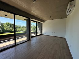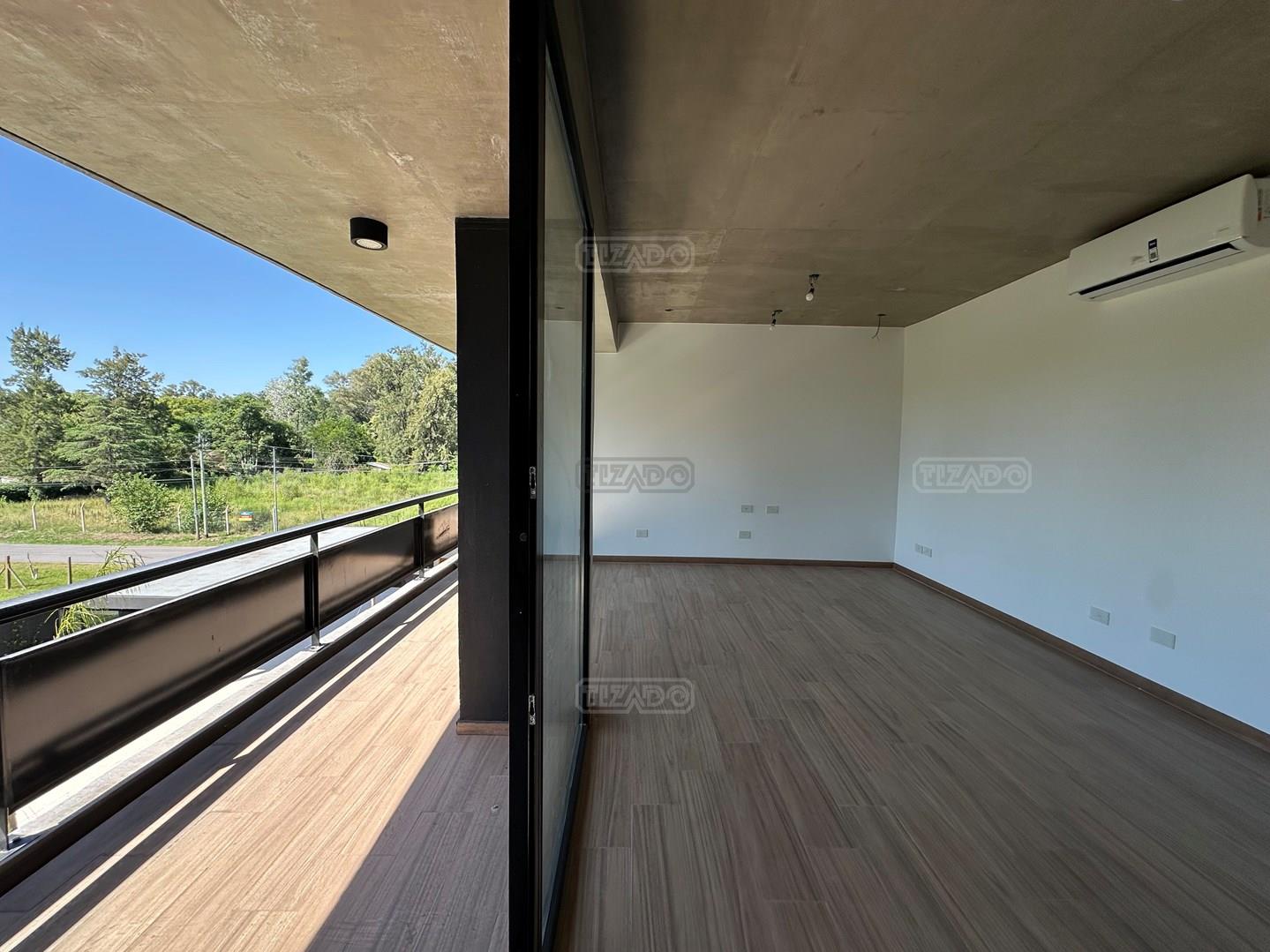 Departamento TRES ambientes en ALQUILER ANUAL en Segundo Piso con balcón y parrilla propia, ubicado en el nuevo Proyecto LA BOTA 450.- Al ingresar, hall de distribución, toilette, cocina integrada al living comedor, con amplios ventanales con vista al balcón y al espacio común del desarrollo. Dormitorio en suite con vista a la parte interna del complejo, con vestidor y baño completo con bañera y un cuarto con baño con bañera. Se entrega con Cortinas colocadas y Spots en todos los ambientes. Aires Acondicionados frío calor en todos los dormitorios y living. Calefacción eléctrica por split. Aberturas de piso a techo, de aluminio negras doble vidrio. Pisos de Porcelanato símil madera. Techos de hormigón visto. Agua Caliente por termotanque eléctrico. Horno y Anafe eléctrico. La unidad incluye una cochera descubierta. Amenities: Piscina con solarium, SUM, Sector de Parrillas. Seguridad: Monitoreo por camara y sistema de alarma en todo el perimetro. La Bota se encuentra en la ciudad de Benavídez, a 500 metros de Panamericana, Ramal Escobar y limita con localidades como Garín, Ingeniero Maschwitz, Dique Lujan, Tigre y General Pacheco.- El Proyecto se distingue por su patio central, el cual integra la naturaleza generando amplias perspectivas visuales entre los espacios interiores y exteriores. (Las expensas están sujetas a modificaciones, actualizadas a Diciembre 2025) - Coordina una visita, vení a conocerlo!