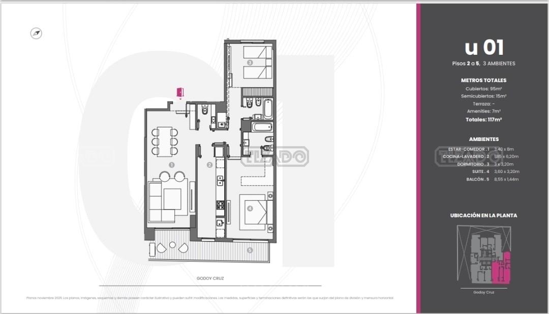 Ubicado en Palermo, considerado uno de los barrios más elegantes y exclusivos de la Ciudad de Buenos Aires. En un entorno Con una diversa oferta gastronómica, cultural, comercial y de entretenimiento, ideal para vivir con amigos y familia. Un emplazamiento estratégico dentro de la Ciudad y posibilita acceder en pocos minutos tanto a la Zona céntrica, a la autopista panamericana o al aeroparque Jorge Newbery motivo por el cual combina la posibilidad de una conexión rápida y cómoda junto a un entorno residencial exclusivo. B Residence Palermo es un desarrollo único en la zona gracias a su emplazamiento privilegiado, un lote de doble frente con más de 26 metros, sobre Godoy Cruz. Diseñado con amenities de primer nivel y con un amplio Parque, te permitirá disfrutar del tiempo libre en familia en un entorno seguro y exclusivo. 17 pisos de viviendas multifamiliares - de 68 a 339m² Unidades residenciales de 2 a 5 ambientes con dependencia, de 68 a los 339m². Cocheras y bauleras opcionales. Tres SS de cocheras. Acceso por montaauto. FORMA DE PAGO sugerida para esta etapa: anticipo del 50% y saldo en 36 cuotas mensuales y consecutivas en pesos ajustados por índice de la cámara de la construcción. Amenities Premium: Cocheras de cortesía Hall de recepción doble altura SUM: Amplio Salón de Usos Múltiples Espacio exterior abierto Piscina con Solarium Gimnasio cubierto Terraza con Parrillas y Semicubierto Espacio de Laundy Seguridad Privada 24hs -- Martilleros responsables: Fabian Bergier - CUCICBA 5404 Carolina Zottola - CMCPSI 6674