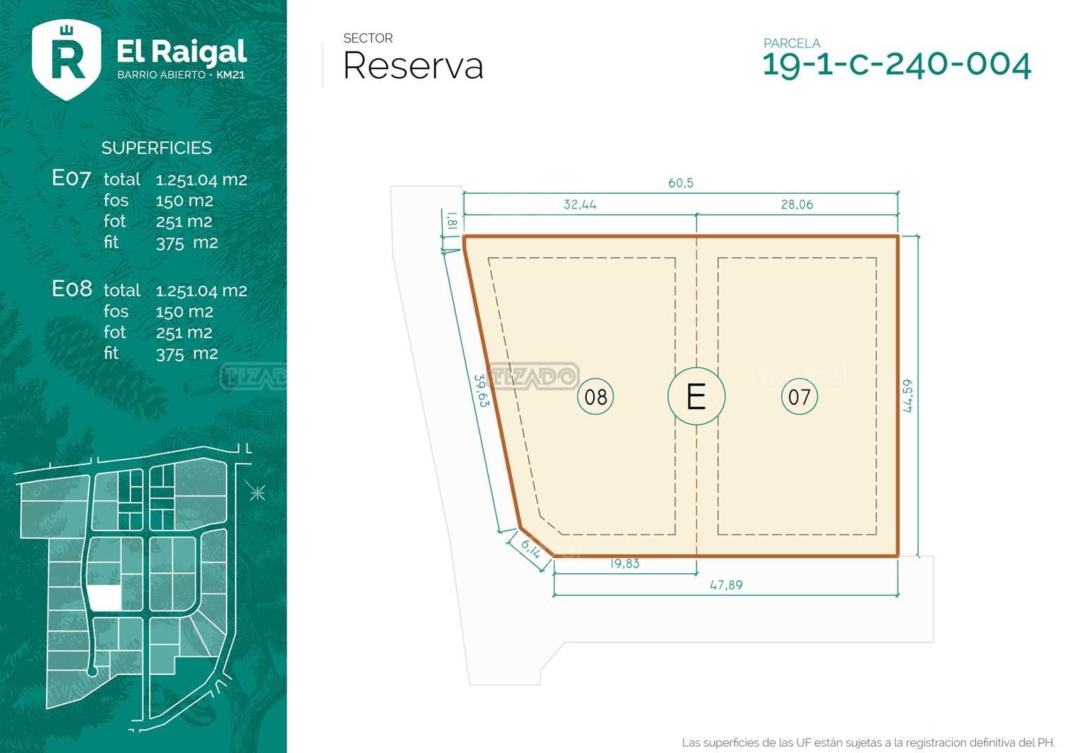 El Raigal - Un Oasis en Bariloche Descubre El Raigal, un exclusivo barrio residencial diseñado para quienes buscan vivir en amplios lotes, con todos los servicios de una ciudad y sin expensas. Ubicado en el hermoso Circuito Chico, este lugar único es un verdadero oasis en Bariloche. El Raigal combina un diseño urbanístico moderno con estrategias de eficiencia energética. Disfruta de un entorno natural excepcional, con áreas de reserva forestal que albergan especies autóctonas, además de luminarias LED que promueven la sostenibilidad. El barrio contará con un sistema de seguridad cerrado, equipado con cámaras en las tres entradas para tu tranquilidad. Todos los servicios soterrados, todo dentro de uno de los Parques Nacionales más bellos del país. El Raigal te ofrece: Agua potable Electricidad Gas natural Recolección de residuos sólidos Salón de usos múltiples (SUM) y plaza con juegos saludables Cancha de fútbol Amplios espacios verdes Bicisendas y senderos Paradas de transporte y estacionamiento ¡Financiación disponible! Modalidad de pago: 30% de anticipo, 50% en 24 cuotas fijas y 20% al momento de la posesión. Ni Tizado Propiedades (M&G Inmuebles Patagonia SRL), ni el Martillero a cargo son responsables de los indicadores urbanísticos, factibilidades de construcción, ni usos permitidos sobre el inmueble objeto del presente. Corredor y Martillero Matriculado: Sebastián Caretta - Matricula N.333-RP-20 F.412 T.Il