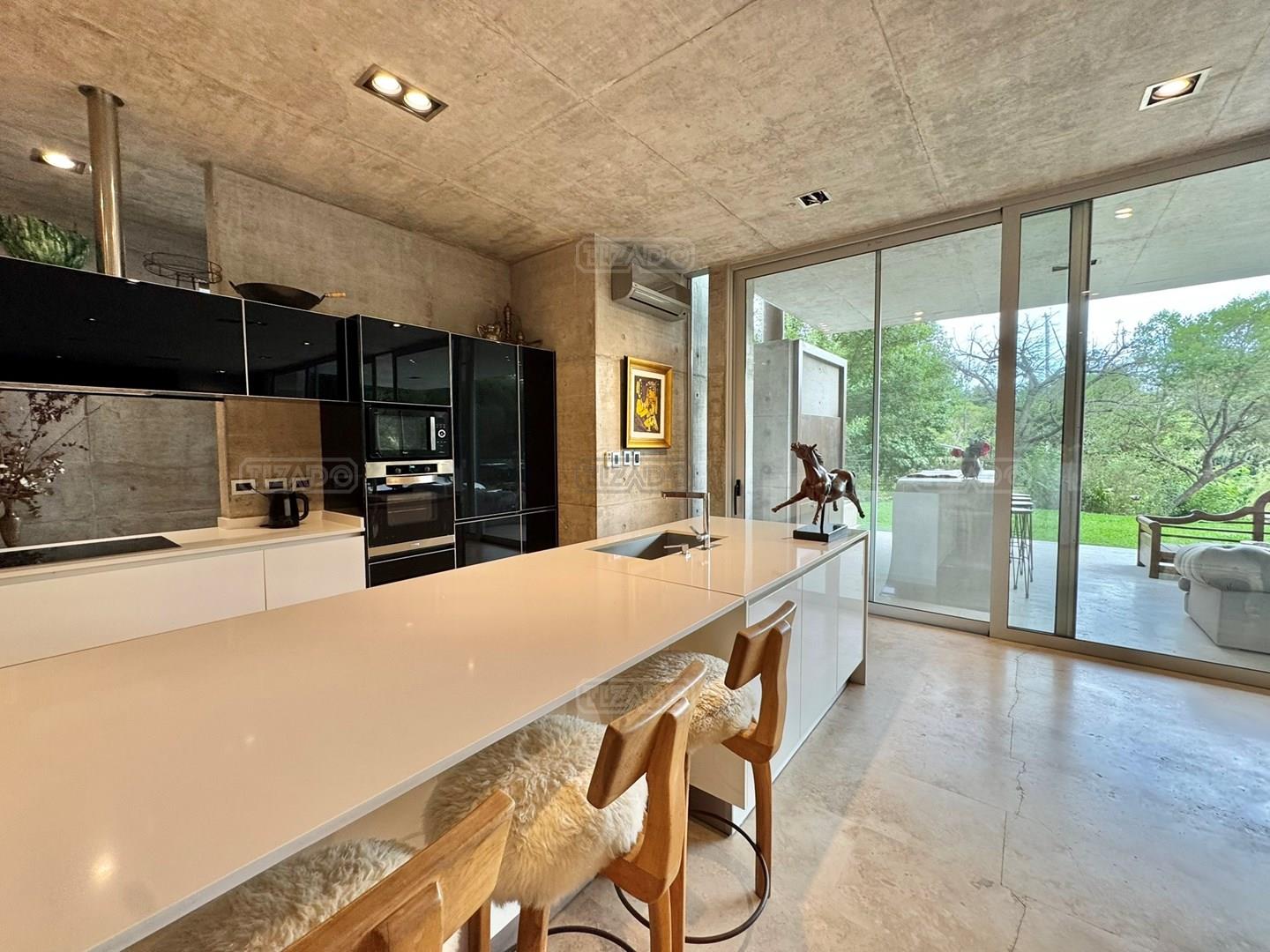 Casa en Venta y alquiler con muebles en El Yacht, Nordelta. Casa de Diseño Exclusivo implantada en un lote con mucha privacidad y verde, frente a la reserva natural de El Yacht, un espacio protegido de aproximadamente 2 hectáreas de bosque nativo! Casa única que combina arte y río, de estilo brutalista por A+R Interior Design, distinguida internacionalmente en los International Property Awards (Londres) y en el American Architecture Prize (Nueva York), donde fue premiada en la categoría Diseño Arquitectónico / Arquitectura Residencial. Es una pieza de arquitectura contemporánea situada en un entorno natural incomparable, con amarra propia y vistas privilegiadas, donde el diseño y el paisaje conviven en equilibrio absoluto. Superficie cubierta: 500 m² Año de construcción: 2016 Plana baja: - amplio espacio de comedor, living, cocina con unas dimensiones poco comunes y sin una columna en el medio lo que da una sensación muy linda de amplitud y mucha luz por su diseño que juega con el hormigón y los vidiros lo que hace de la casa un lugar luminoso y cálido. Toilete, lavadero, habitación de huespedes o escritorio en suite con entrada independiente, lavadero. Primer planta: Acceso por escalera. - Hall de distribución. - Dormitorio principal en suite con vestidor. Box de ducha e hidro. Salida a terraza privada. - 3 habitaciones en suite con placard y baño completo. (dos de las junior suites se pueden unir) Segunda planta: Acceso por escalera. - terraza que funciona como mirador, con fogonero y una vista y espacio soñado al río. Exterior: - Galería cubierta con parrilla y barra. - Jardín parquizado con riego automático e iluminación. - Piscina climatizada con borde infinito - amarra propia con salida directa al río Luján. El Yacht es uno de los barrios más exclusivos de Nordelta, concebido para quienes buscan una vida vinculada al agua y al deporte. Cuenta con: Club house sobre la bahía con amarras Piscina Canchas de tenis Amplios espacios verdes parquizados Sectores de descanso con pérgolas Senderos y áreas recreativas para disfrutar al aire libre La combinación de infraestructura deportiva, naturaleza preservada y vida náutica posiciona al barrio como uno de los más distinguidos de la zona.