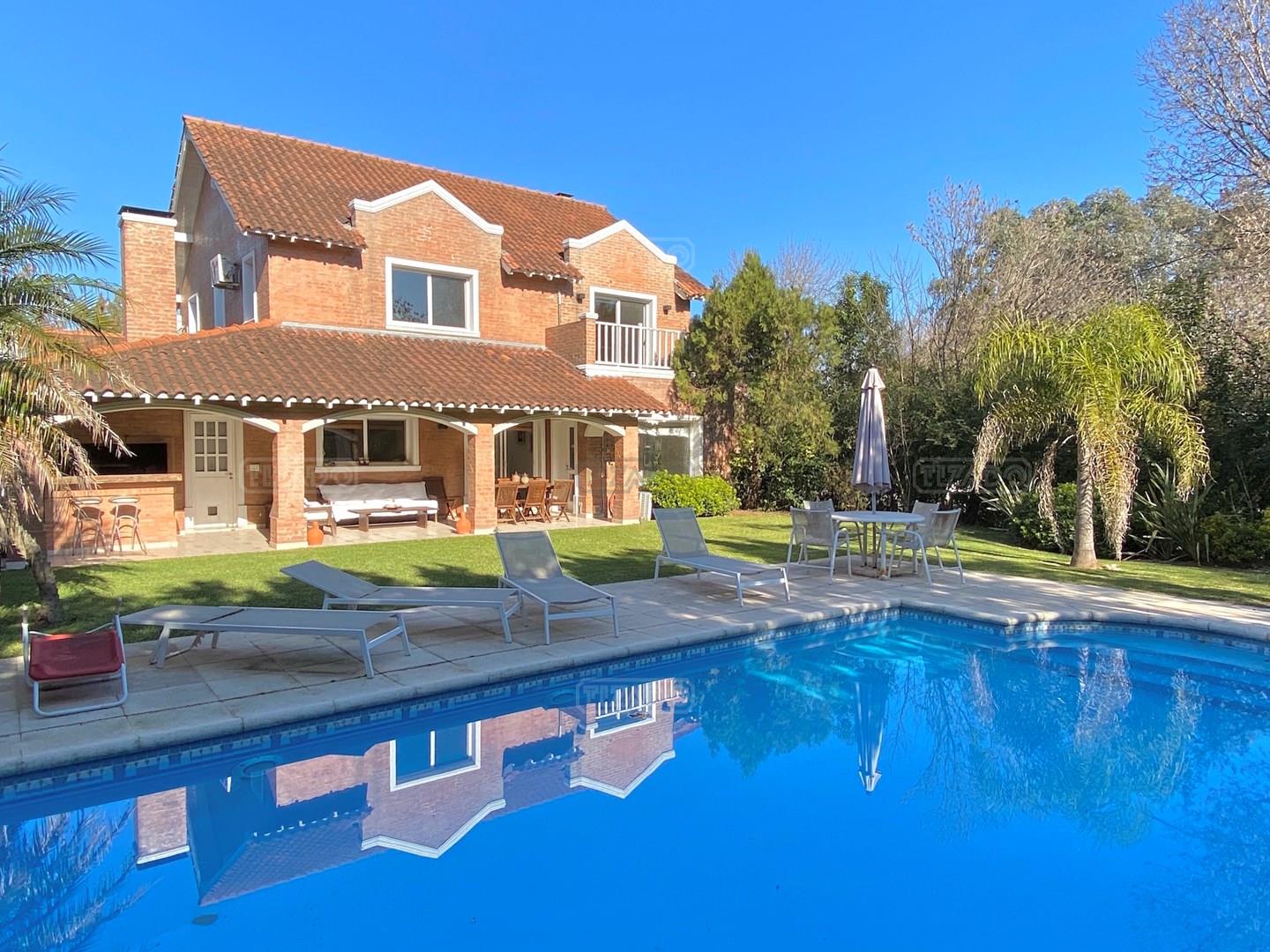 Excelente casa en alquiler de verano en el Barrio Privado Galapagos! Cuenta con 3 dormitorios, uno en suite mas otro baño completo. Living comedor, cocina con comedor diario, escritorio, lavadero, toilette, cómoda galería con parrilla y baño externo. Cochera cubierta. Pileta y jardín iluminado, riego por aspersión. El Barrio tiene canchas de tenis, de paddle, futbol, club house, vóley, SUM y seguridad las 24 hs. Se alquila POR MES ENTERO. Diciembre u$s 3.700 Enero u$s 4300 Febrero u$s 3.800 Mas gastos jardinero, piletero, productos, luz, gas, agua, cable e internet y expensas