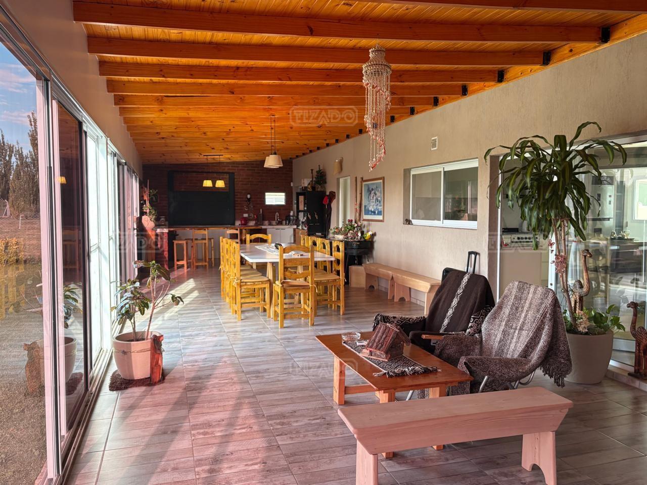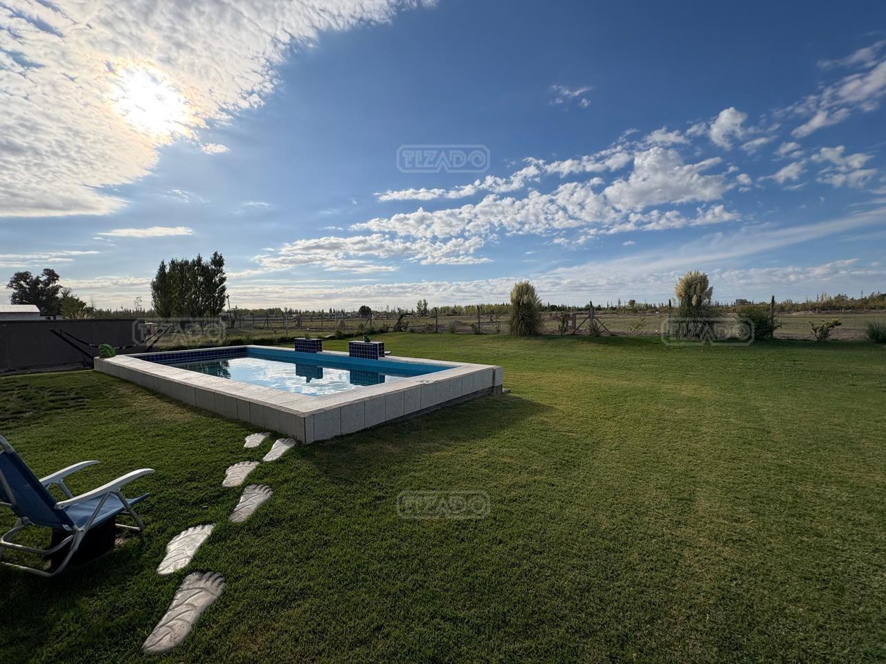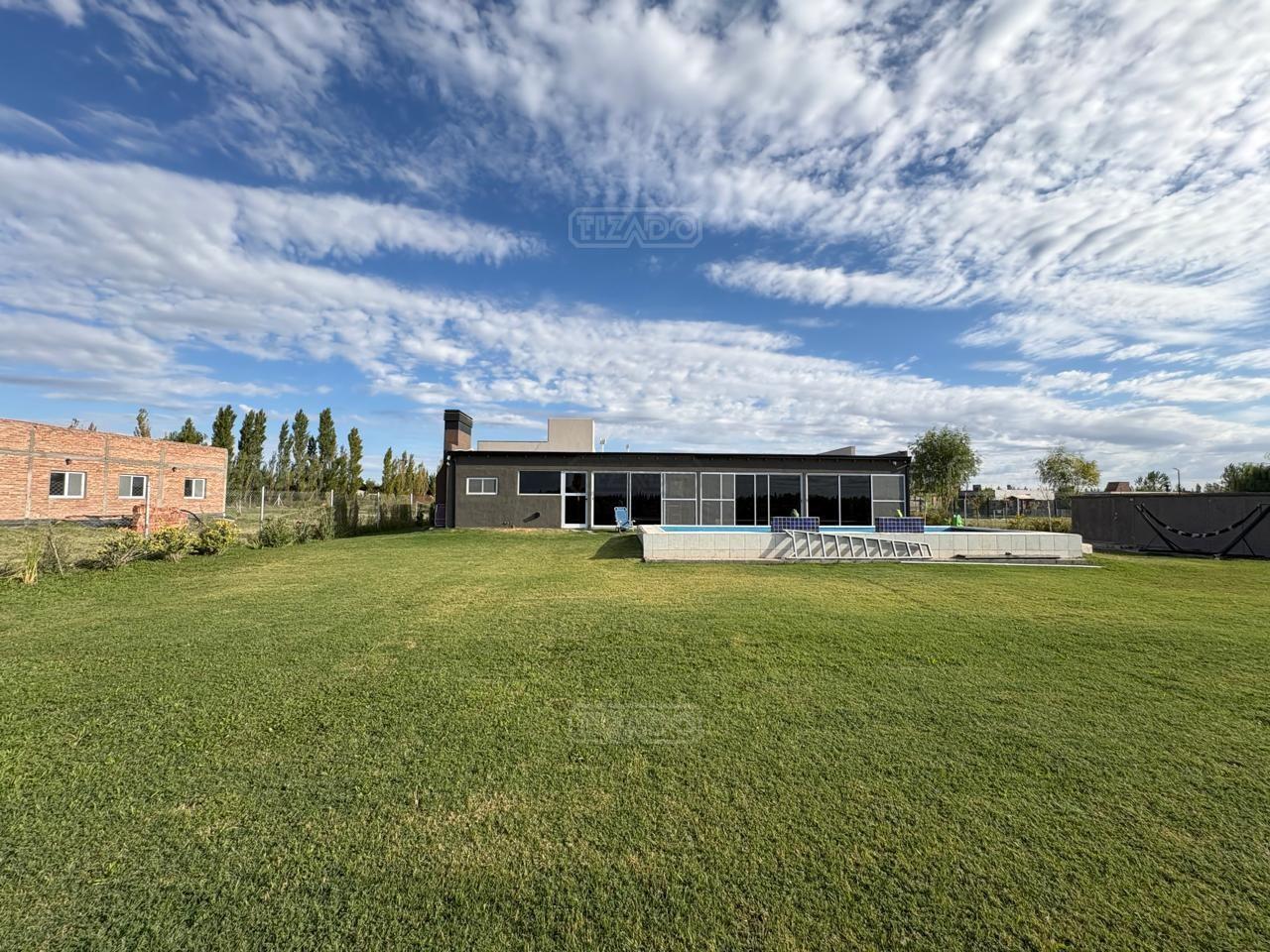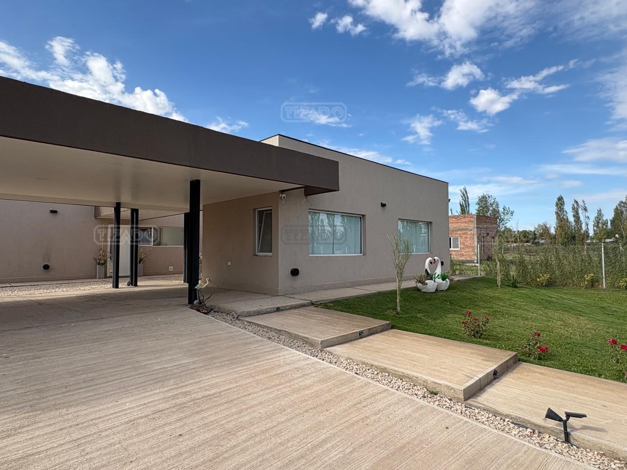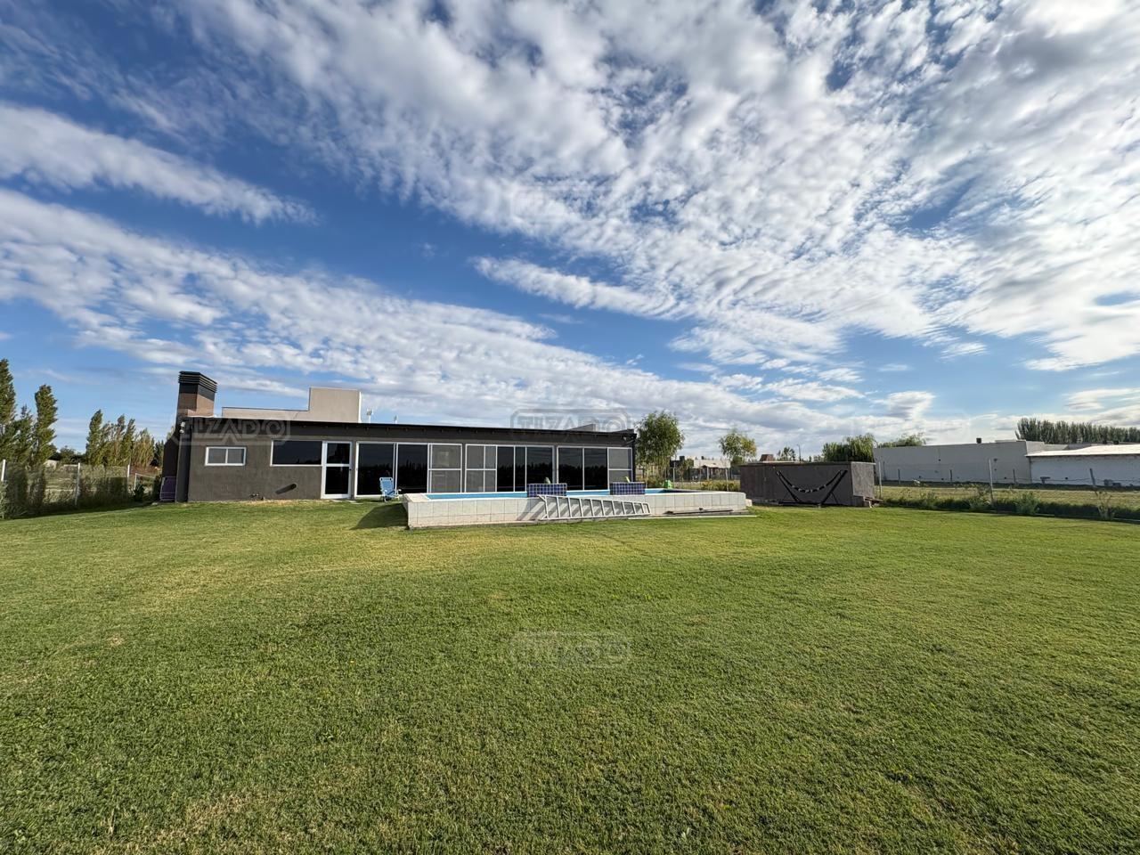 Ubicada en un barrio cerrado: "Estilo chacra" Cipolletti, esta propiedad combina tranquilidad, naturaleza y cercanía a la ciudad. El barrio cuenta con acceso controlado con guardia de seguridad las 24 horas, portón eléctrico con control remoto, cámaras de seguridad, servicios subterráneos, iluminación LED, cancha de tenis en el barrio y amplios espacios verdes. Además, se encuentra a solo 5 minutos del centro, con rápido acceso a Ruta Provincial 65 y a Avenida Circunvalación de Cipolletti. Al ingresar a la propiedad se encuentra un cómodo espacio de estacionamiento con garaje cubierto para tres vehículos y acceso lateral adicional. La casa recibe con un living–comedor amplio y luminoso, conectado con la cocina, que cuenta con espacio de despensa y sector de lavado, generando un ambiente funcional para la vida diaria. En el área privada se encuentran tres dormitorios con placares empotrados. El dormitorio principal es en suite y cuenta con vestidor. Los otros dos dormitorios comparten un baño completo con antebaño. Además, la propiedad dispone de un baño de servicio, con acceso desde la cocina o el quincho. Hacia el exterior, la propiedad invita a disfrutar del entorno con un amplio quincho con parrilla y una piscina de 10 x 4 metros. El jardín cuenta con sistema de riego por aspersores e iluminación exterior LED, ideal para aprovechar el espacio durante todo el día. Entre sus detalles de confort y seguridad se destacan la calefacción tradicional, cisterna, cámaras de seguridad y portón eléctrico con control remoto.