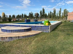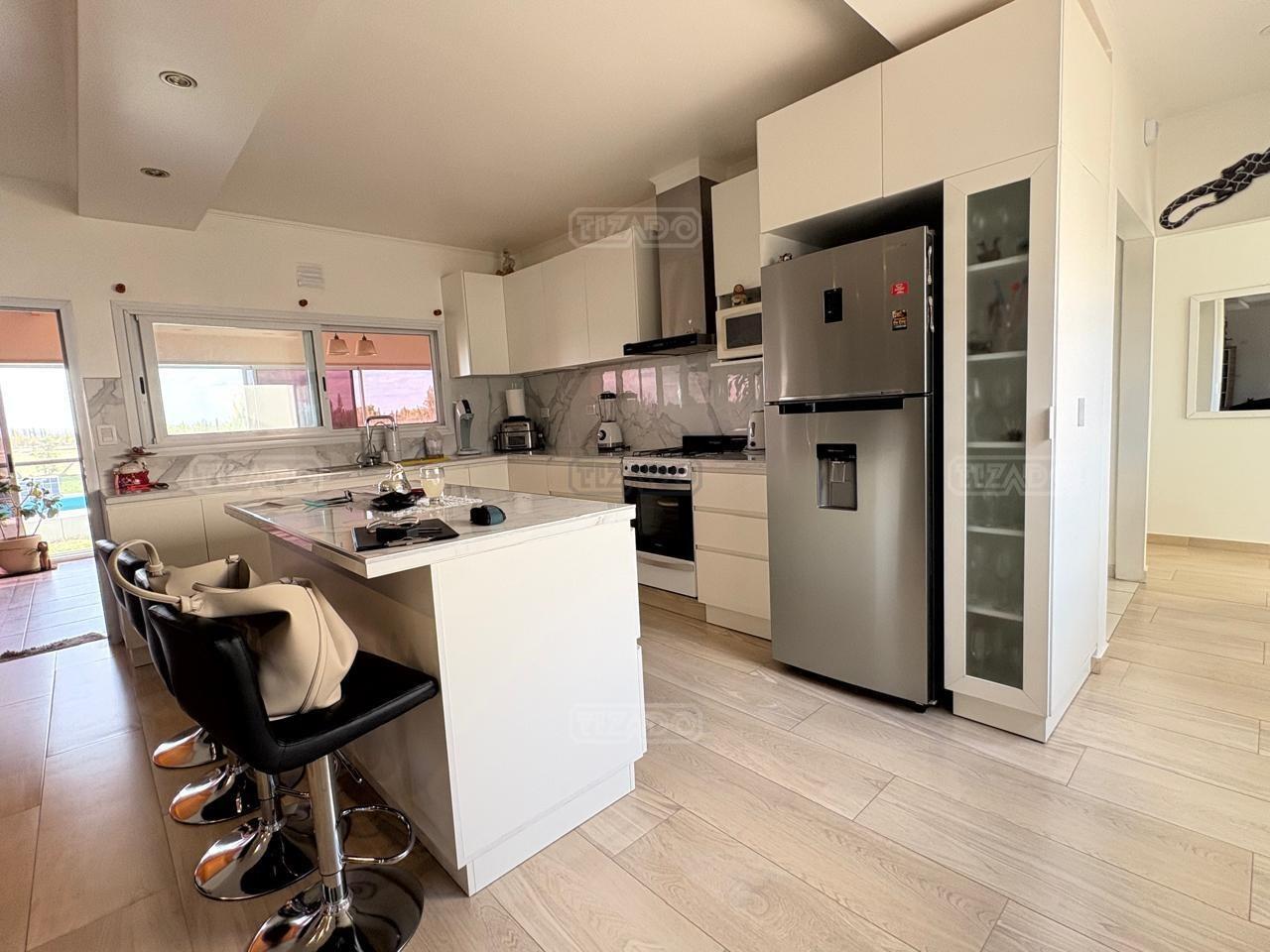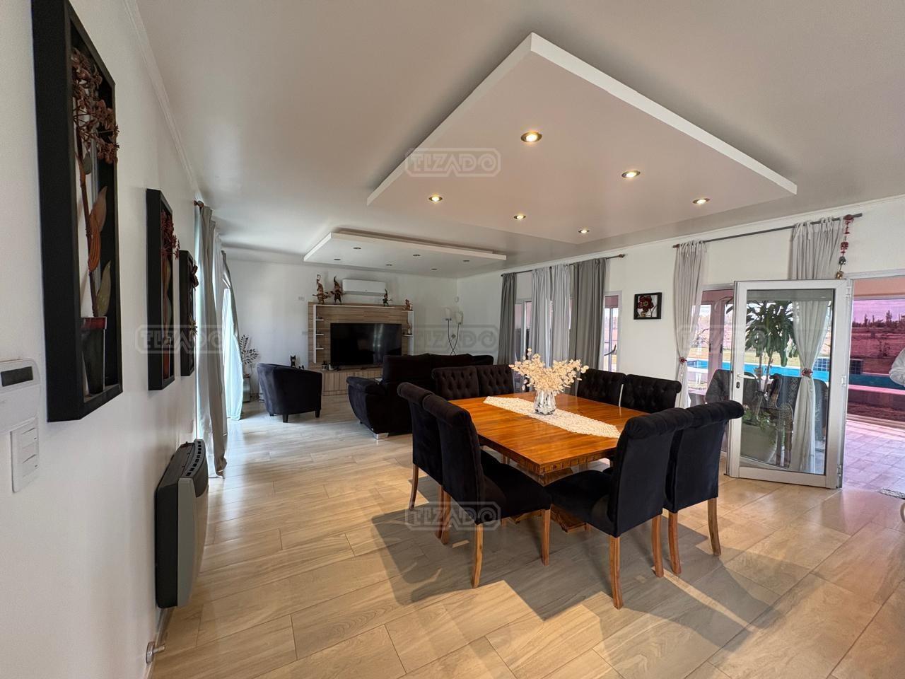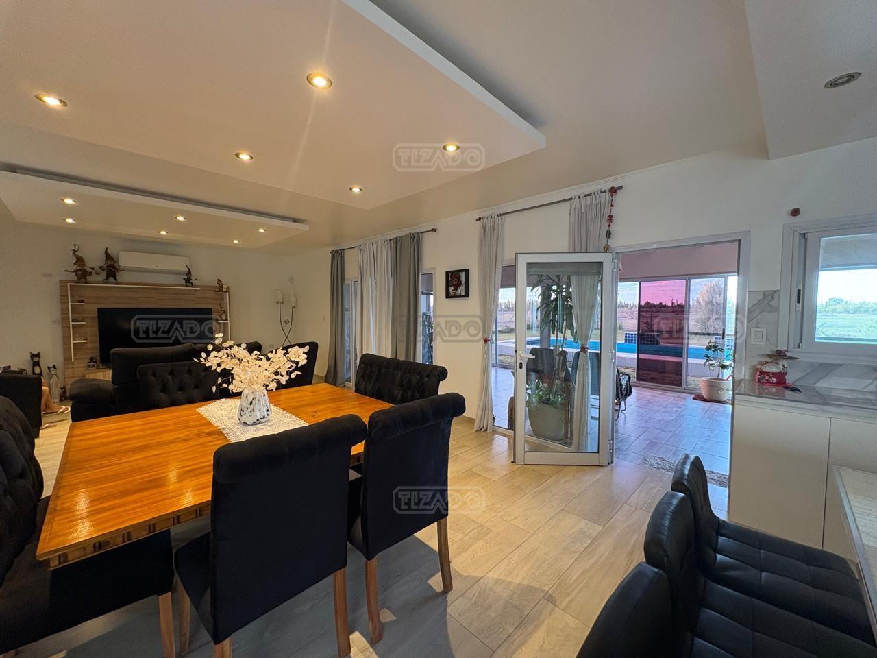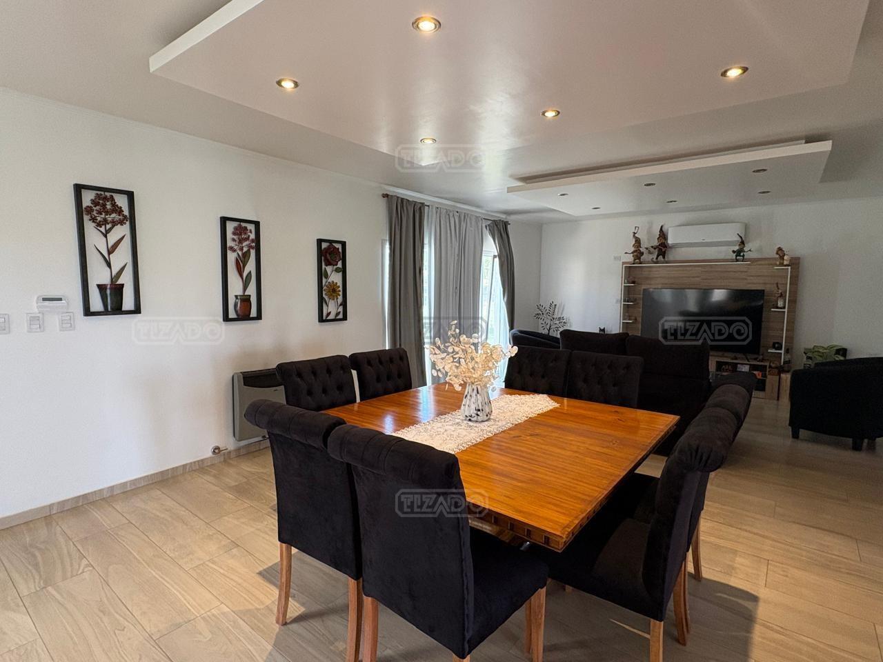 Ubicada en un barrio cerrado: "Estilo chacra" Cipolletti, esta propiedad combina tranquilidad, naturaleza y cercanía a la ciudad. El barrio cuenta con acceso controlado con guardia de seguridad las 24 horas, portón eléctrico con control remoto, cámaras de seguridad, servicios subterráneos, iluminación LED, cancha de tenis en el barrio y amplios espacios verdes. Además, se encuentra a solo 5 minutos del centro, con rápido acceso a Ruta Provincial 65 y a Avenida Circunvalación de Cipolletti. Al ingresar a la propiedad se encuentra un cómodo espacio de estacionamiento con garaje cubierto para tres vehículos y acceso lateral adicional. La casa recibe con un living–comedor amplio y luminoso, conectado con la cocina, que cuenta con espacio de despensa y sector de lavado, generando un ambiente funcional para la vida diaria. En el área privada se encuentran tres dormitorios con placares empotrados. El dormitorio principal es en suite y cuenta con vestidor. Los otros dos dormitorios comparten un baño completo con antebaño. Además, la propiedad dispone de un baño de servicio, con acceso desde la cocina o el quincho. Hacia el exterior, la propiedad invita a disfrutar del entorno con un amplio quincho con parrilla y una piscina de 10 x 4 metros. El jardín cuenta con sistema de riego por aspersores e iluminación exterior LED, ideal para aprovechar el espacio durante todo el día. Entre sus detalles de confort y seguridad se destacan la calefacción tradicional, cisterna, cámaras de seguridad y portón eléctrico con control remoto.