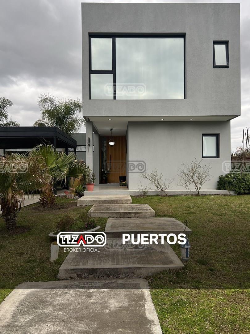 Casa en Venta en El Canton Puerto - TIZADO PUERTOS Tu Casa Soñada Frente al Agua te Espera en El Cantón Puerto! Descubre esta moderna casa de dos plantas, donde la calidad constructiva y una distribución inteligente se fusionan para ofrecerte un estilo de vida excepcional. Planta Baja: Desde la recepción de bienvenido a un gran living comedor con un acogedor hogar Tromen, el corazón del hogar perfecto para reuniones y momentos de relax. Una cocina de ensueño con una amplia isla, no solo ofrece un generoso espacio de trabajo, sino también abundante lugar de guardado, ideal para los amantes de la gastronomía. Disfruta de una doble circulación que conecta elegantemente el área social con la de servicio, brindando practicidad y fluidez. Un toilette de visitas con diseño moderno y un lavadero con entrada independiente les otorga una funcionalidad al día a día. Un cuarto dormitorio en suite con baño completo estratégicamente ubicado, ofrece hermosa vista al parque y al lago, un despertar de ensueño cada mañana. Los grandes ventanales inundan cada ambiente con luz natural, creando espacios amplios y llenos de vida, conectándote con el entorno natural. Primer Piso: Accede a través de una amplia escalera a un gran estar, un espacio versátil que da paso a la zona de descanso. La suite principal, cuenta con un vestidor y una vista privilegiada al lago, ofreciendo privacidad y serenidad. Dos dormitorios adicionales, amplios y luminosos, comparten un baño completo, ideal para familias o invitados. Exteriores para Disfrutar: Una gran galería cubierta con parrilla te invita a disfrutar de comidas al aire libre en cualquier estación. Sumérgete en una hermosa piscina con solarium, el oasis perfecto para los días soleados. El parque con una gran forestación te brinda privacidad y un contacto directo con la naturaleza. Detalles que Hacen la Diferencia: Impecable estado general, lista para mudarte y disfrutar. Calefacción por losa radiante para un confort inigualable en los días frescos. Carpintería DVH que garantiza aislamiento térmico y acústico. Equipos de aire acondicionado para mantener la temperatura ideal en todo momento. ¡No pierdas la oportunidad de vivir la vida que siempre soñaste! Agendamos tu visita para que descubras la magia de esta propiedad única. TIZADO PUERTOS