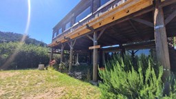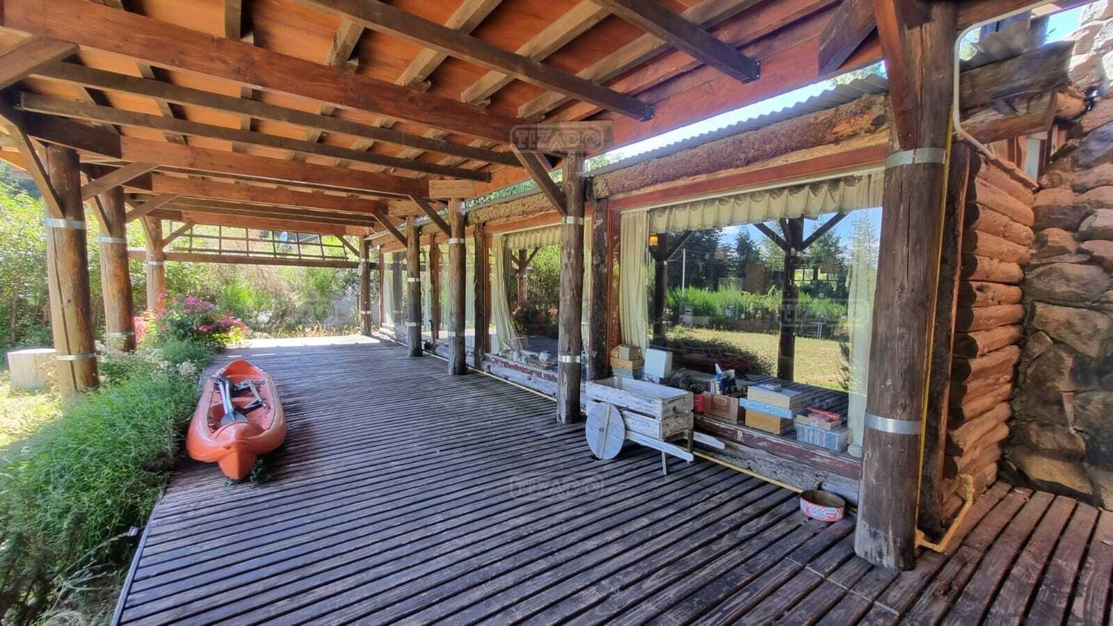 Propiedad situada sobre Av. Campanario al 1000, entre las calles Milano Blanco y Paseo Antu Malal dentro de la Península San Pedro, sobre calle pavimentada y con propiedades de buena calidad en su entorno. Se trata de una zona que privilegia la tranquilidad y la vida en un entorno natural pero a su vez con muy buena conectividad a la Av. Bustillo. Dispone de un terreno con una superficie total de 918m2 con buen frente de 23.45mts lineales sobre Av. campanario, y con orientación noroeste por lo cual recibe excelente luz natural durante todo el día. En su geografía es mayormente plano con pocos árboles de porte y totalmente cercado.Cuenta con una construcción tipo cabaña de madera de estilo campo desarrollada en dos plantas. En la Planta Baja dispone de la casa con una superficie de 93m2 aproximadamente, desarrollada toda en un nivel, con tronco entero, pisos en madera y amplios ventanales. Cuenta con hall frío de entrada, gran living con hogar a leña revestido en piedra natural en concepto integrado con el comedor y con la cocina mediante barra. Baño completo. Lavadero con salida al jardín trasero. Dos dormitorios (uno con vista al frente y el otro con vista al jardín trasero). En el jardín cuenta con invernadero y fogonero descubierto. La calefacción en la casa es por tiro balanceado a excepción del living que posee radiadores. Aberturas con carpintería de madera y vidrio simple. Amplia cochera cubierta de 50m2 en la cual se encuentra el termotanque y la bomba presurizadora y también cuenta con un taller de casi 7m2 cubiertos. A lo largo de toda la casa cuenta con un amplio deck semi cubierto de 16 x 4mts Posee 2 tanques cisterna. Con acceso mediante escalera se accede a la planta alta la cual actualmente se desarrolla como un local / salón de exposición con detalles a terminar, con una superficie total de 120m2 aproximadamente. El mismo posee gran salón con ventanales con vista parcial al lago, pisos de tipo fenólico, área destinada a cocina y baño sin terminar y salón / área de despensa y en un 2do nivel una habitación de 10m2 con muy linda vista al lago. Esta construcción puede también ser unificada con la casa generando una única vivienda de gran tamaño. Ni Tizado Propiedades (M&G Inmuebles Patagonia SRL), ni el Martillero a cargo son responsables de los indicadores urbanísticos, factibilidades de construcción, ni usos permitidos sobre el inmueble objeto del presente. Corredor y Martillero Matriculado: Sebastián Caretta - Matricula N.333-RP-20 F.412 T.Il