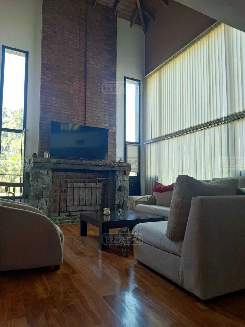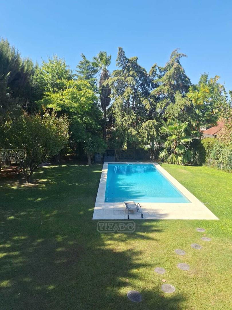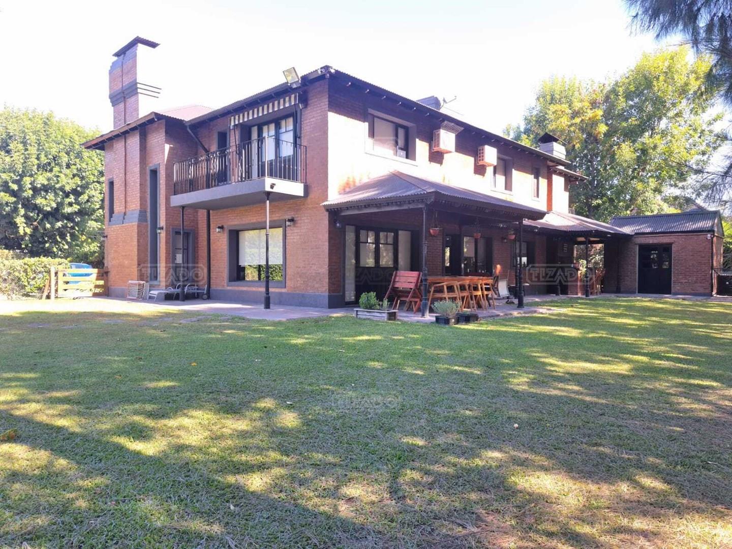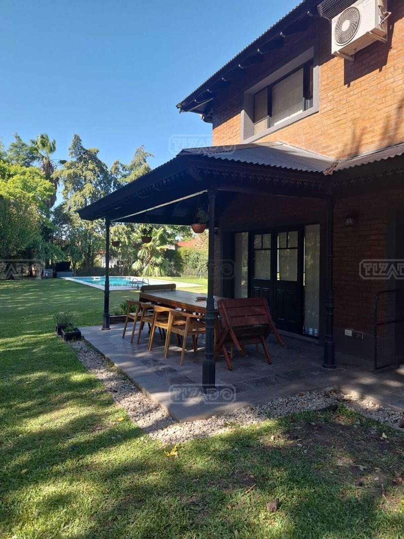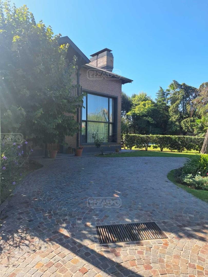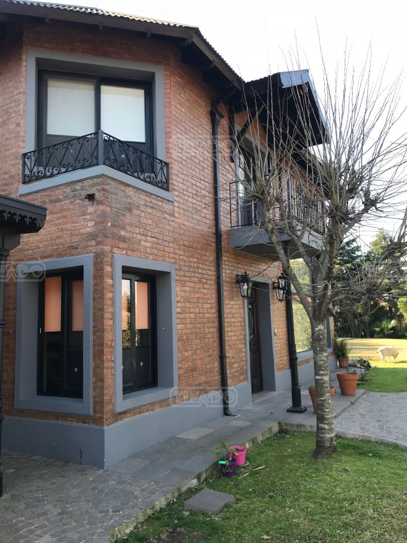 Impresionante propiedad estilo campo, con muchos detalles en madera de excelente calidad y buen gusto.- en P.B amplio living con hogar y doble altura, escritorio. Toil de recepciòn. Comedor con vista al parque, cocina comedor independiente con despensa, dependencia con baño. En P.A. gran play con balconeo al living, 3 còmodos dormitorios, uno de ellos en suite con vestidor y balcon, los otros semisuite, todos con pisos de pinotea. Galeria trasera con parrilla, lugar de guardado y canil. Cochera para dos auots. Riego por aspersiòn. Frio calor por aire. Gran parque con sol y sombra, arboles, piscina calefaccionada de 10 x 5. IMPECABLE