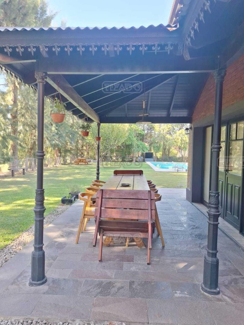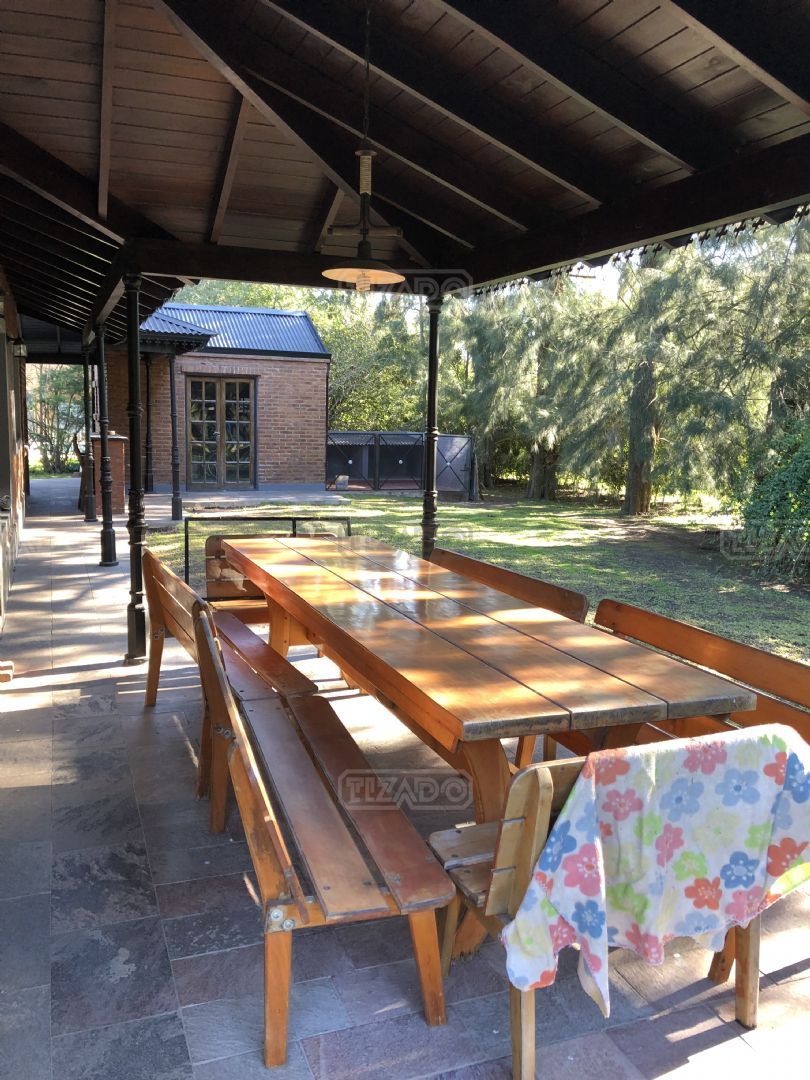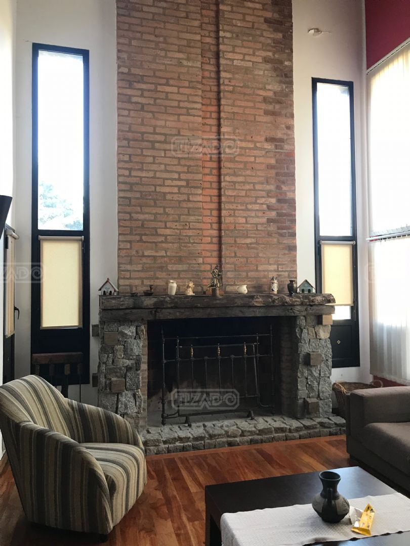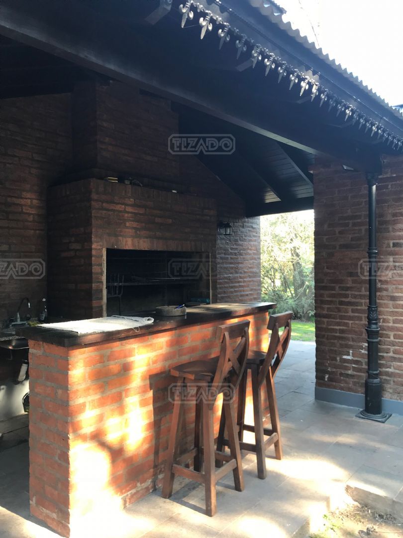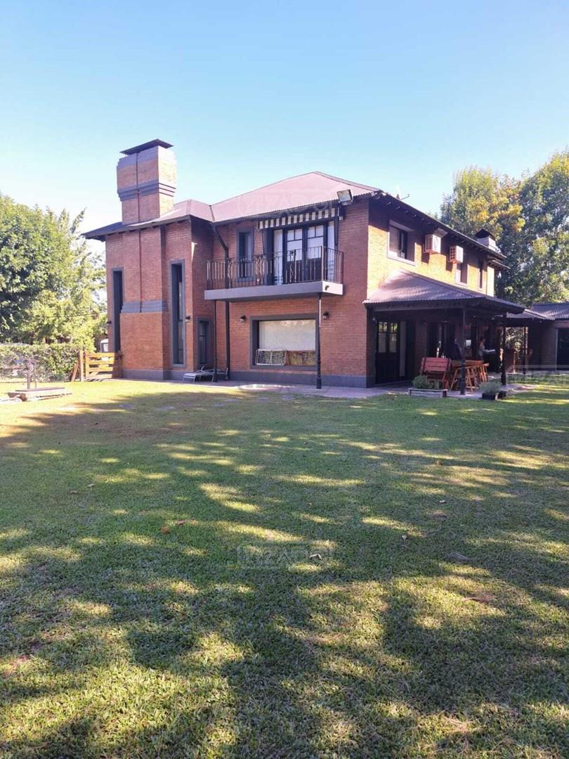 Impresionante propiedad estilo campo, con muchos detalles en madera de excelente calidad y buen gusto.- en P.B amplio living con hogar y doble altura, escritorio. Toil de recepciòn. Comedor con vista al parque, cocina comedor independiente con despensa, dependencia con baño. En P.A. gran play con balconeo al living, 3 còmodos dormitorios, uno de ellos en suite con vestidor y balcon, los otros semisuite, todos con pisos de pinotea. Galeria trasera con parrilla, lugar de guardado y canil. Cochera para dos auots. Riego por aspersiòn. Frio calor por aire. Gran parque con sol y sombra, arboles, piscina calefaccionada de 10 x 5. IMPECABLE