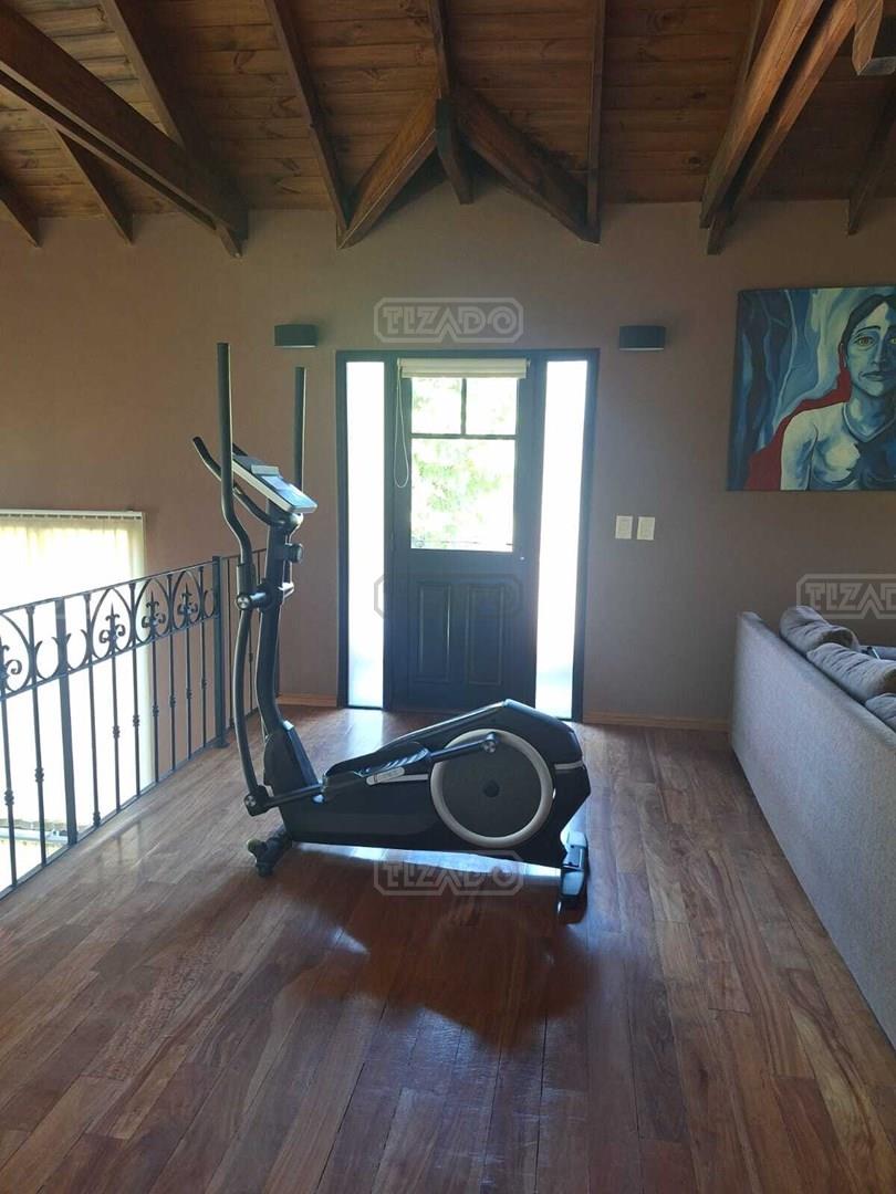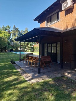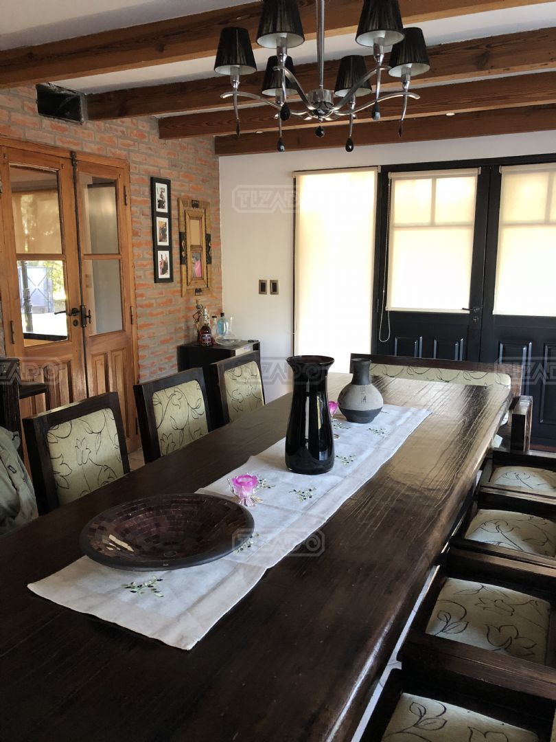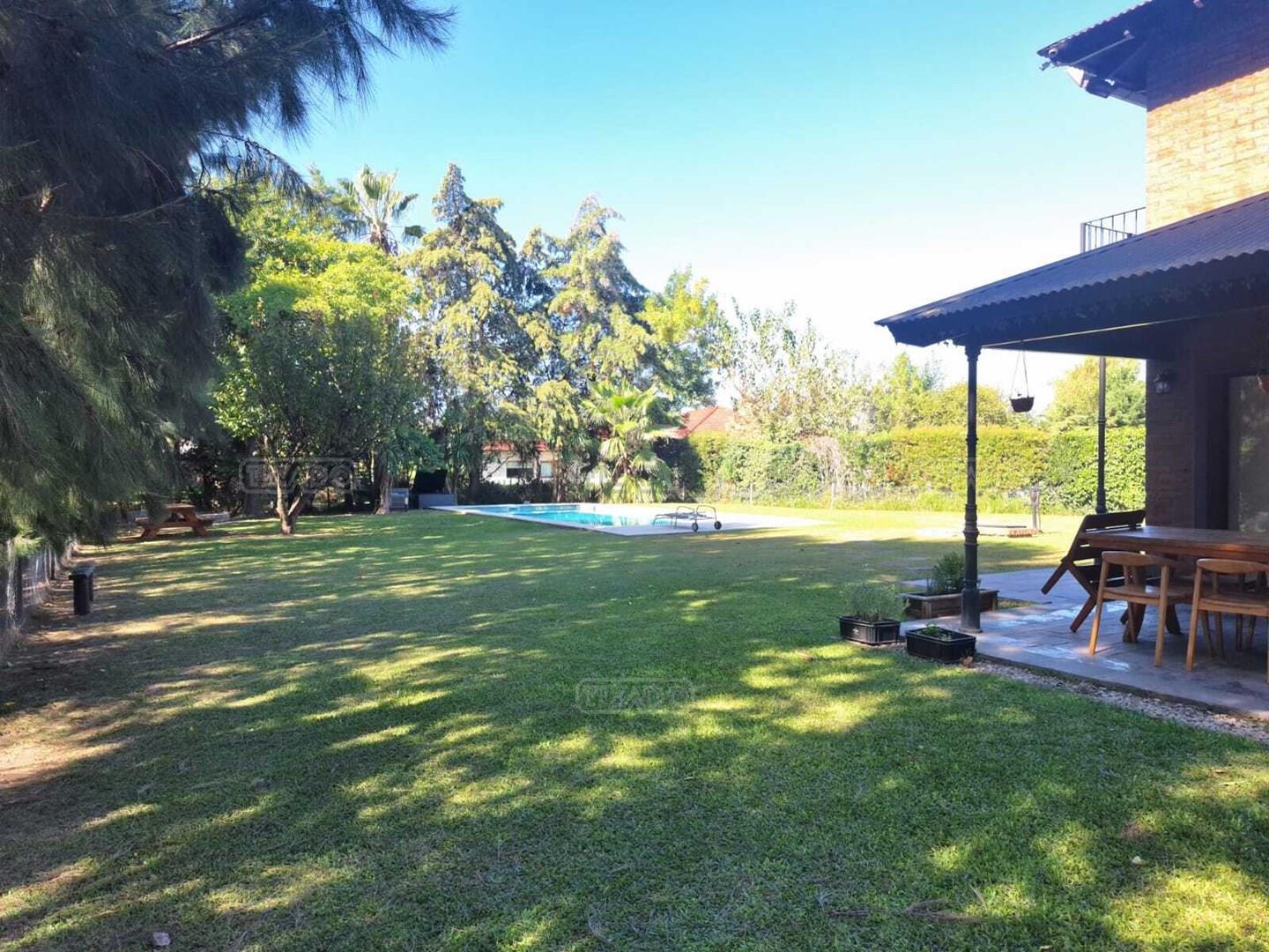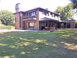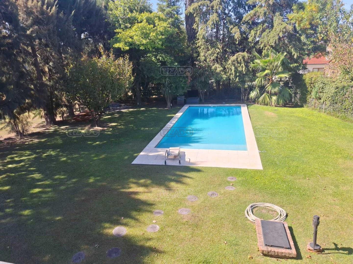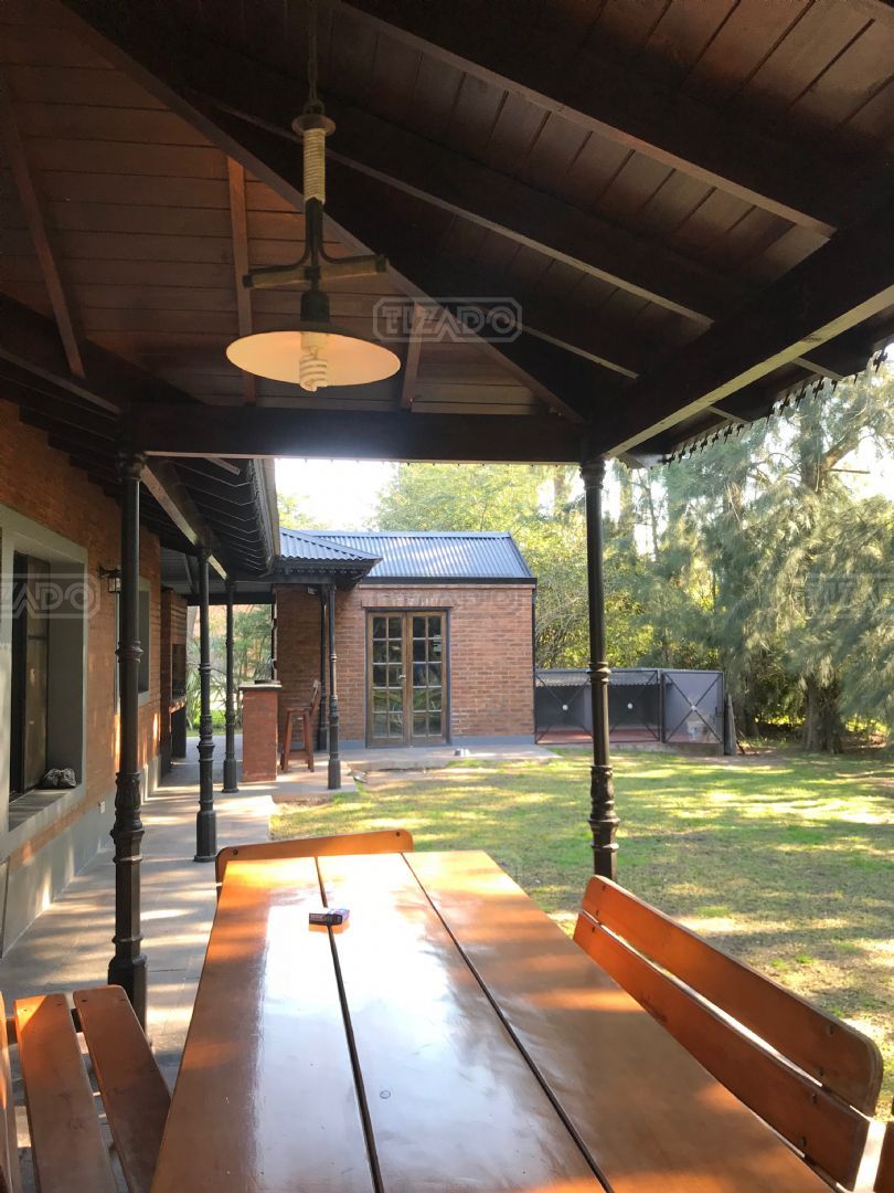 Impresionante propiedad estilo campo, con muchos detalles en madera de excelente calidad y buen gusto.- en P.B amplio living con hogar y doble altura, escritorio. Toil de recepciòn. Comedor con vista al parque, cocina comedor independiente con despensa, dependencia con baño. En P.A. gran play con balconeo al living, 3 còmodos dormitorios, uno de ellos en suite con vestidor y balcon, los otros semisuite, todos con pisos de pinotea. Galeria trasera con parrilla, lugar de guardado y canil. Cochera para dos auots. Riego por aspersiòn. Frio calor por aire. Gran parque con sol y sombra, arboles, piscina calefaccionada de 10 x 5. IMPECABLE