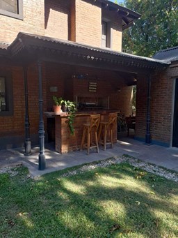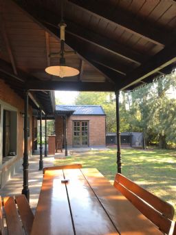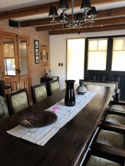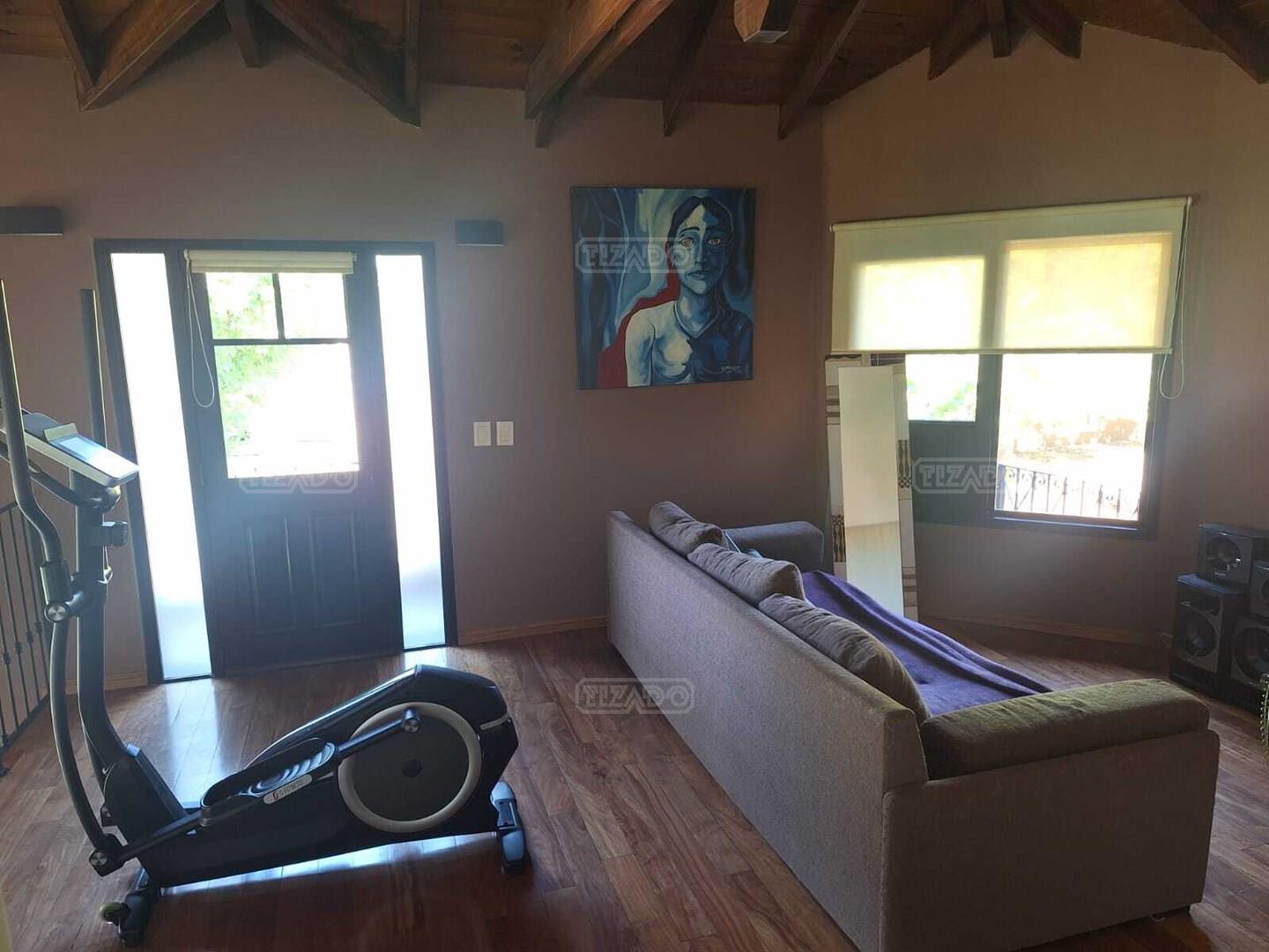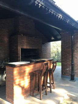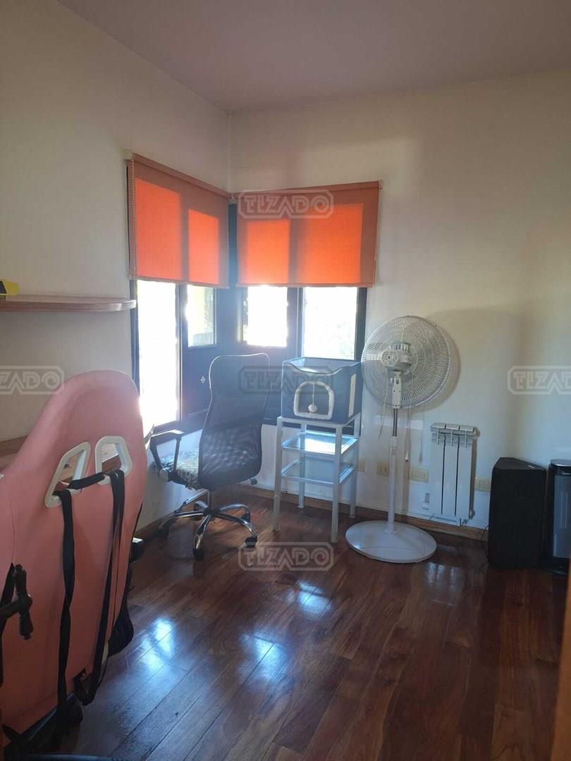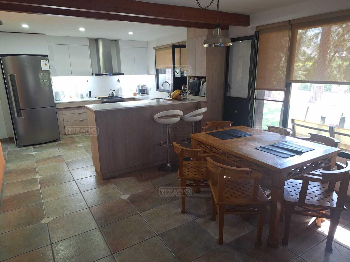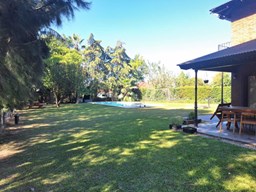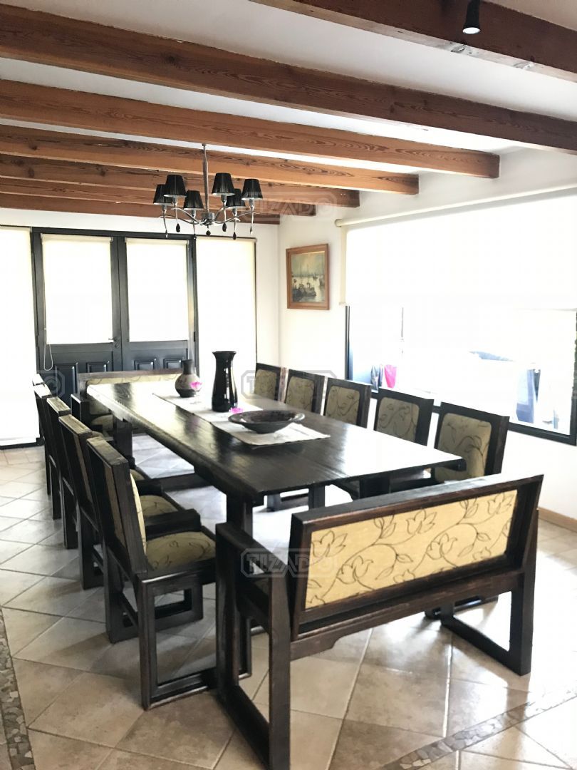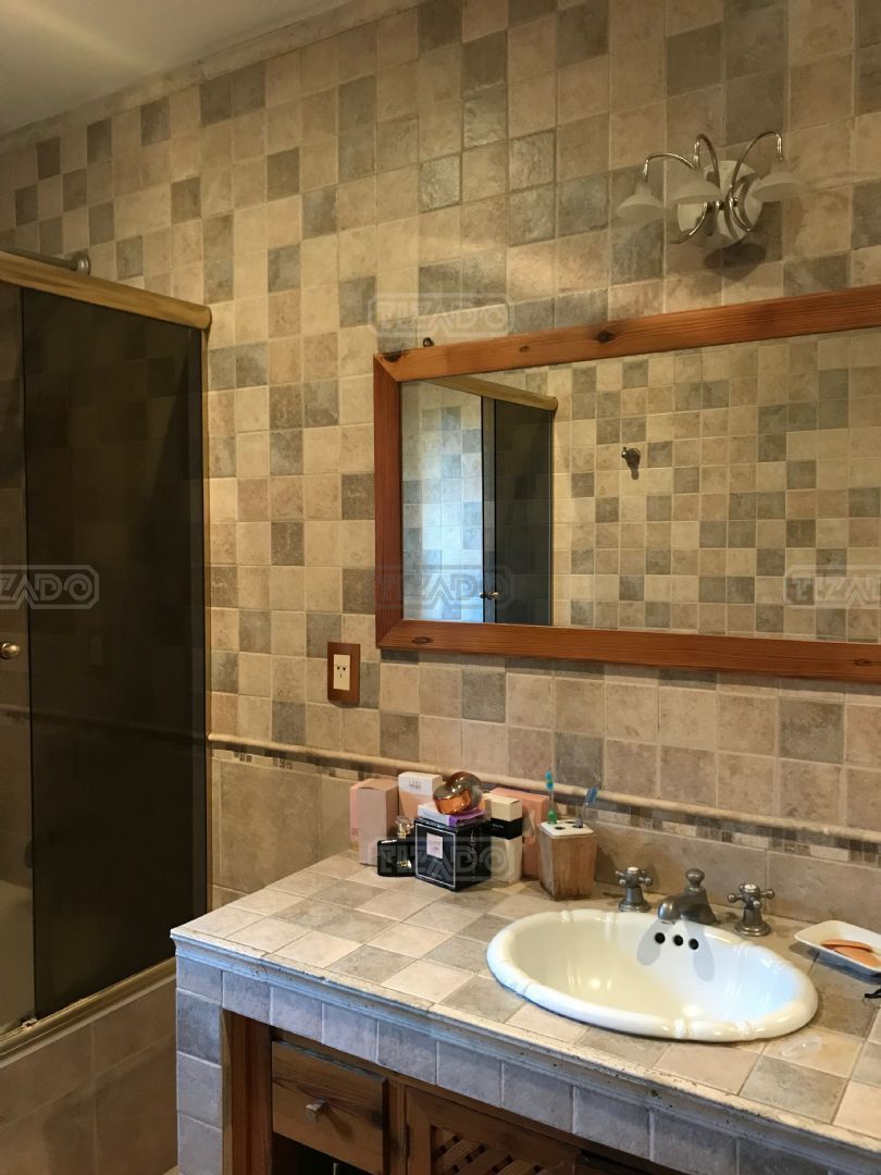 Impresionante propiedad estilo campo, con muchos detalles en madera de excelente calidad y buen gusto.- en P.B amplio living con hogar y doble altura, escritorio. Toil de recepciòn. Comedor con vista al parque, cocina comedor independiente con despensa, dependencia con baño. En P.A. gran play con balconeo al living, 3 còmodos dormitorios, uno de ellos en suite con vestidor y balcon, los otros semisuite, todos con pisos de pinotea. Galeria trasera con parrilla, lugar de guardado y canil. Cochera para dos auots. Riego por aspersiòn. Frio calor por aire. Gran parque con sol y sombra, arboles, piscina calefaccionada de 10 x 5. IMPECABLE