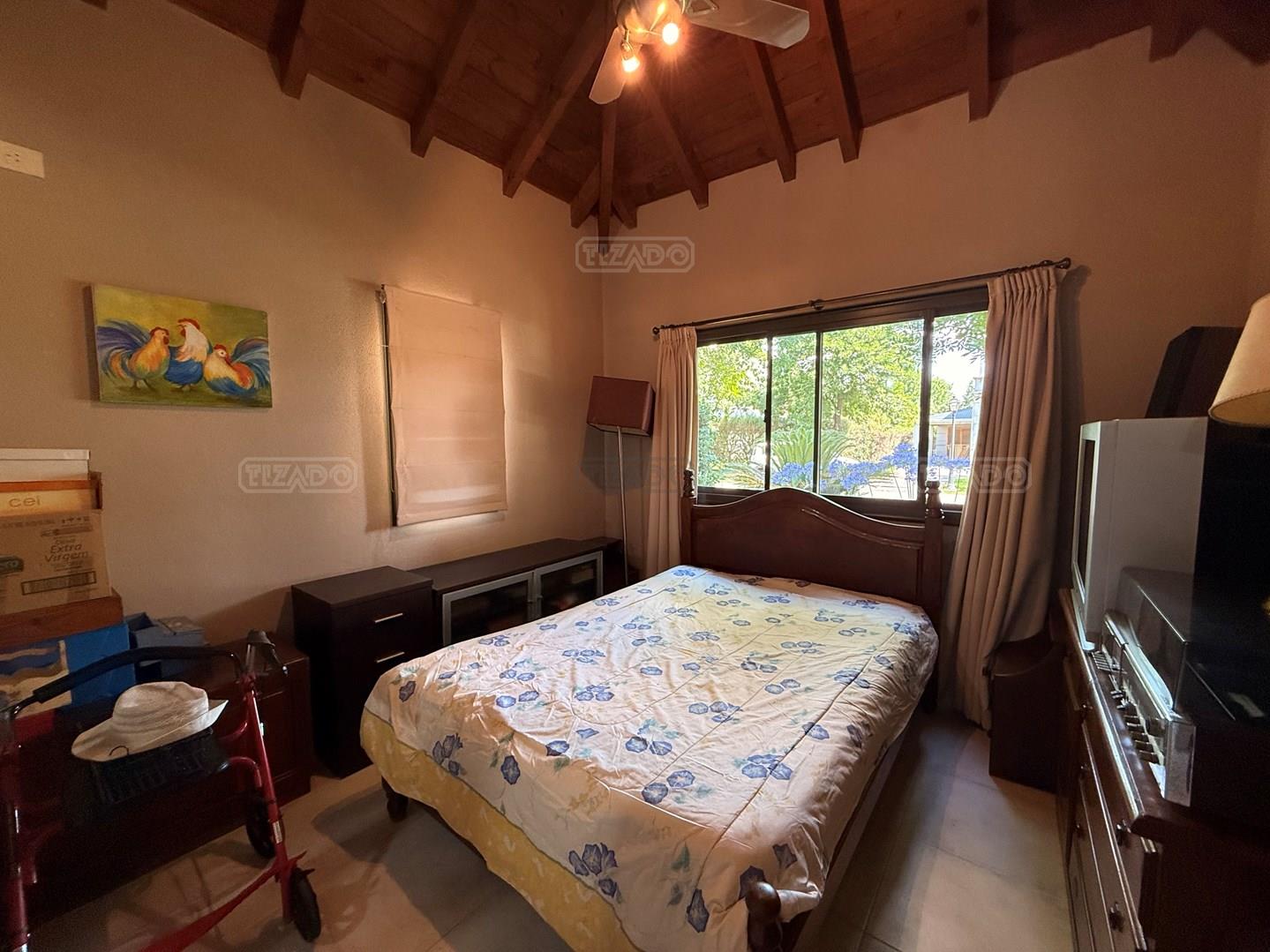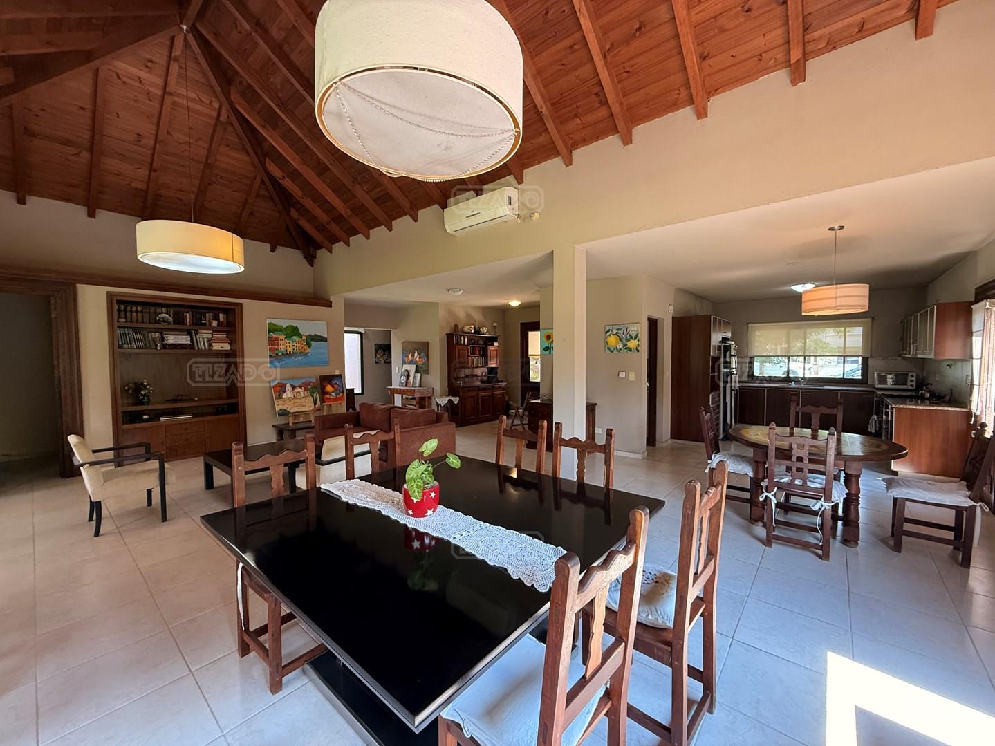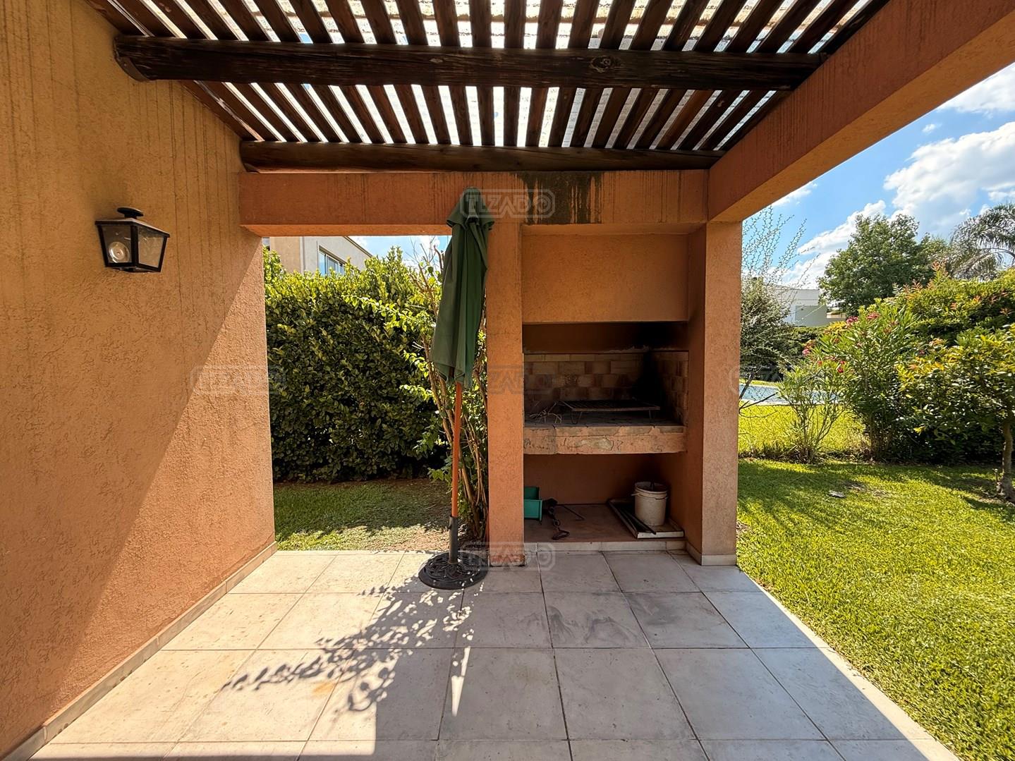 Casa en venta en Los Jazmines – Pilar del Este. OPORTUNIDAD Propiedad desarrollada en una planta sobre lote interno de 696 m² con orientación norte. Apta crédito y con opción de financiación propia. Cuenta con hall de recepción, amplio living comedor, cocina integrada y lavadero. Dispone de tres dormitorios y dos baños completos. En el exterior ofrece galería con parrilla, jardín parquizado con riego por aspersión y cochera descubierta con espacio para tres vehículos. Calefacción por losa radiante y aire acondicionado en living comedor y dormitorio en suite.