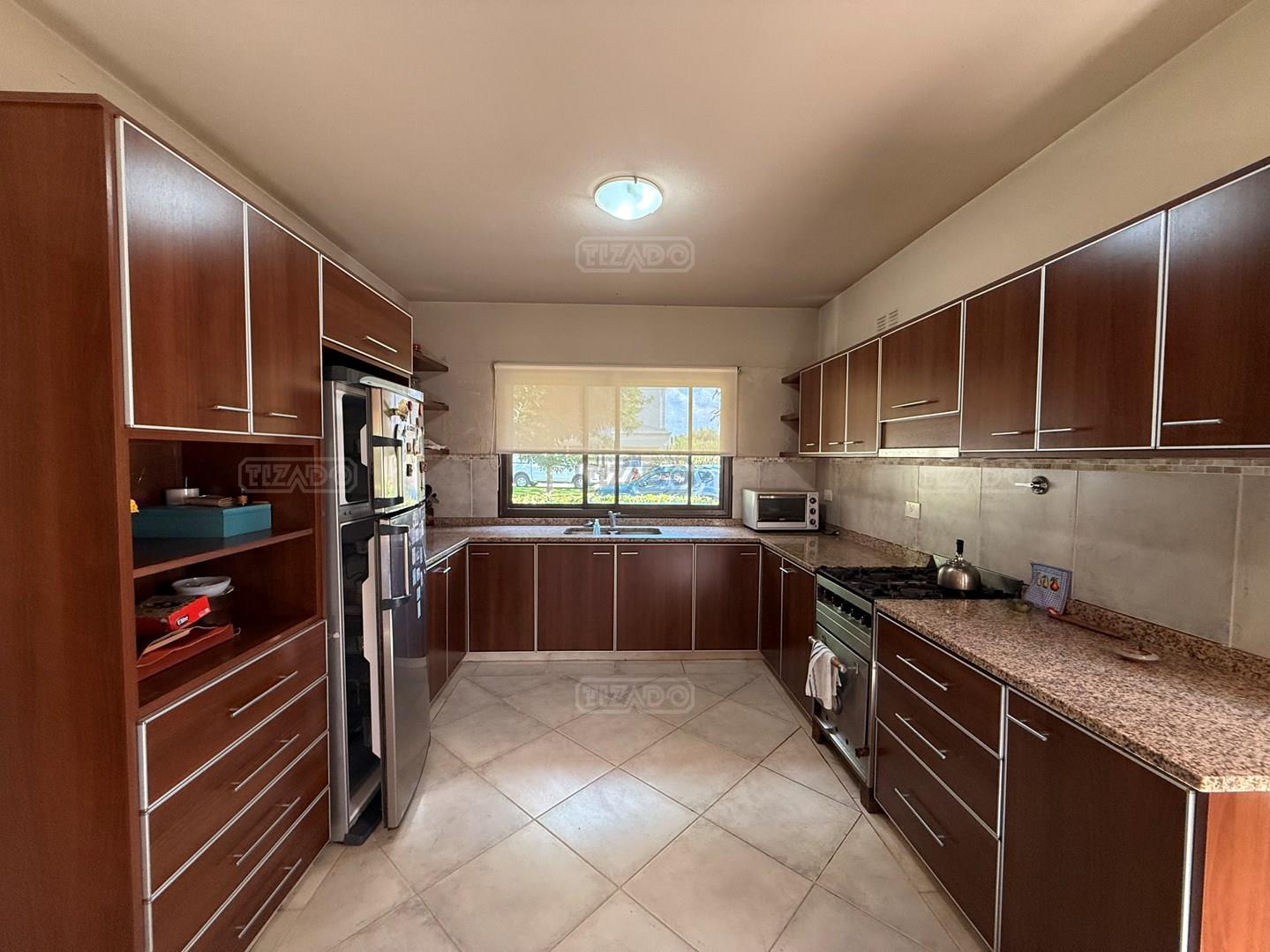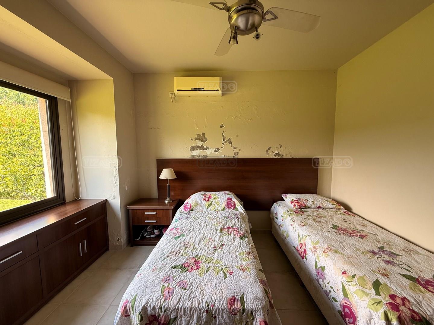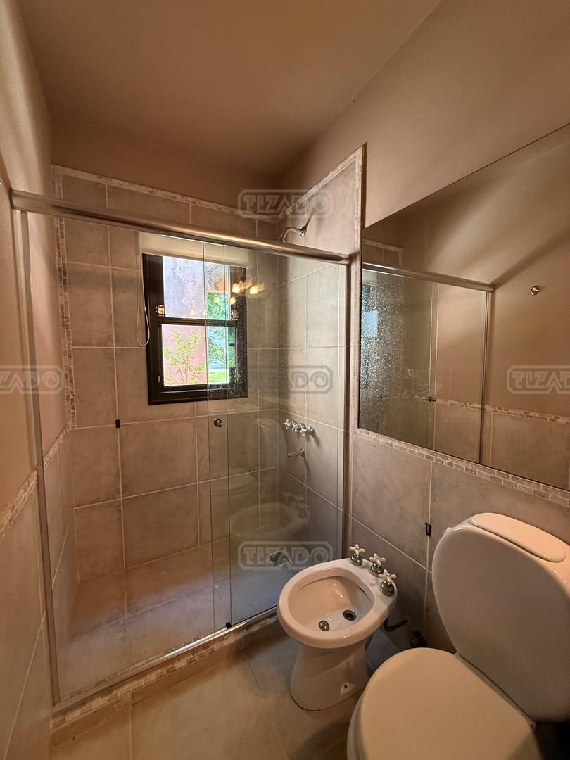 Casa en venta en Los Jazmines – Pilar del Este. OPORTUNIDAD Propiedad desarrollada en una planta sobre lote interno de 696 m² con orientación norte. Apta crédito y con opción de financiación propia. Cuenta con hall de recepción, amplio living comedor, cocina integrada y lavadero. Dispone de tres dormitorios y dos baños completos. En el exterior ofrece galería con parrilla, jardín parquizado con riego por aspersión y cochera descubierta con espacio para tres vehículos. Calefacción por losa radiante y aire acondicionado en living comedor y dormitorio en suite.