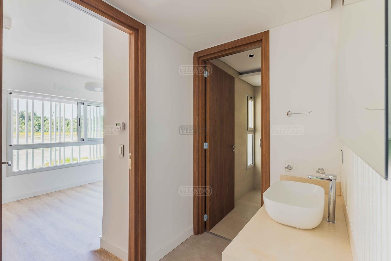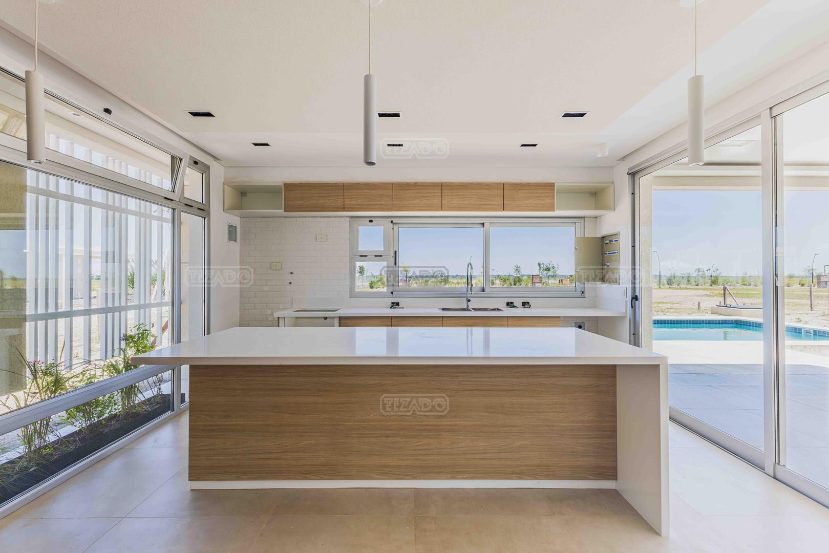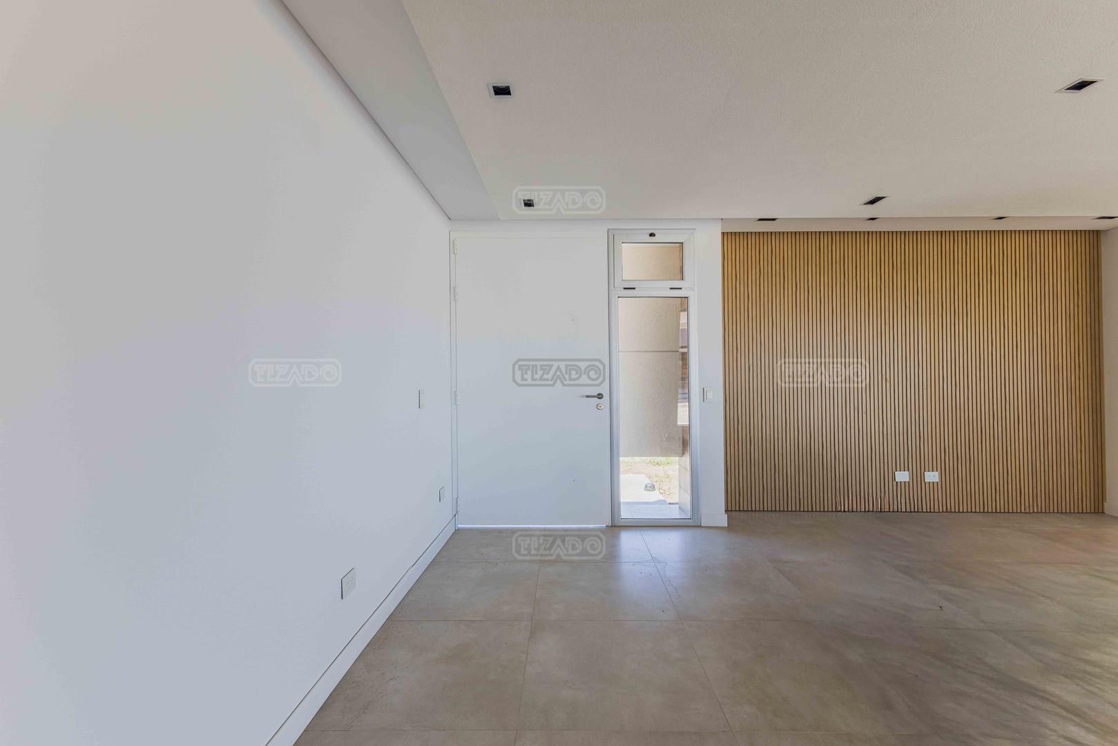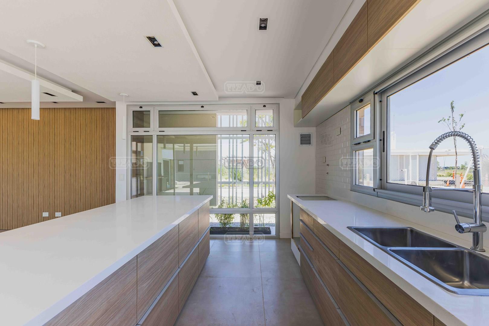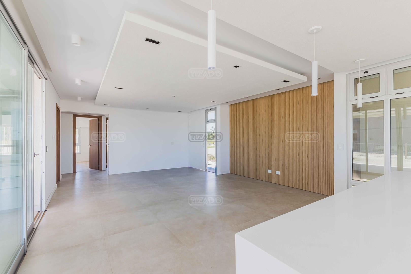 Casa moderna diseñada en una Planta, sobre lote en Esquina de 633 mts, con Fondo Orientación Oeste. La misma se encuentra ubicada a tan solo metros de la entrada principal del barrio, con vista al Futuro Bosque que tendrá el Barrio Nativas. Al ingresar, living comedor integrado, toilette de recepción, cocina Integrada con barra desayunadora y vista hacia la galería. La casa cuenta con dos habitaciones con baño compartido y master suite con vestidor y baño propio. Jardín parquizado, pileta en funcionamiento, parrilla completa con cerramiento, bacha sobre el lateral de la misma y lugar de guardado. La casa cuenta con detalles de madera en varios espacios, con revestimientos verticales y en el exterior, parasoles decorativos en caño estructural con canteros iluminados. Terminaciones: Abertura Aluar anodizado natural A30 con DVH en todos lo ambientes, Losa radiante en toda la casa, con termostatos independientes por ambiente, caldera dual a gas, Sanitarios Roca Hall, Griferia Hidromet Raptor, Mesadas de marmol, Bachas Roca Burnei, Porcelanatos 80x80 imola beige en el Living y detalles en la casa exteriores con porcelanato cerro negro simil madera lapacho, cuarzo en la cocina y parrilla, cisterna de almacenamiento de 1000 lts, con bomba elevadora, reserva de 1000 litros en terraza con presurizadora, puertas oblak. Puertos es un desarrollo único en Escobar que redefine el concepto de vivir rodeado de naturaleza y confort, con una infraestructura moderna que asegura calidad de vida y seguridad. -- Ofrece espacios verdes, un trazado inteligente con bicisendas que conectan cada punto de la ciudad, y un entorno natural que promueve un estilo de vida activo, al aire libre y en comunidad. -- 1.400 Hectáreas en medio del verde, donde encontrarás: un Lago Central de 200 hectáreas y lagos interconectados que permiten llegar navegando a distintos puntos de la ciudad. Una Reserva Natural y un proyecto paisajístico desarrollado en función de la flora autóctona. 3 Colegios activos, área comercial, oficinas, Club náutico con playa privada, club deportivo y polo gastronómico. -- Es también el PRIMER y ÚNICO Desarrollo con un MUSEO DE ARTE, ya que tiene el privilegio exclusivo de albergar una sede del prestigioso MALBA (Museo de Arte Latinoamericano de Buenos Aires), el cual ofrece exposiciones de primer nivel, salas al aire libre y una programación cultural que enriquece la vida de sus residentes, convirtiendo al arte en parte de su vida diaria. -- Puertos está pensado para disfrutar del verde, vivir con tranquilidad y seguridad sin resignar la comodidad de la ciudad, todo con acceso directo desde Panamericana. -- *Información Adicional:* Las expensas incluyen Club Puertos, Agua de red y de riego. - Se abona aparte, Impuestos Municipales y la proporción correspondiente de ARBA. - (Valores sujetos a modificaciones. Actualizados a Diciembre 2025).-- ¡Vení a conocerla, coordina una visita! Tizado, Inmobiliaria OFICIAL de Puertos.