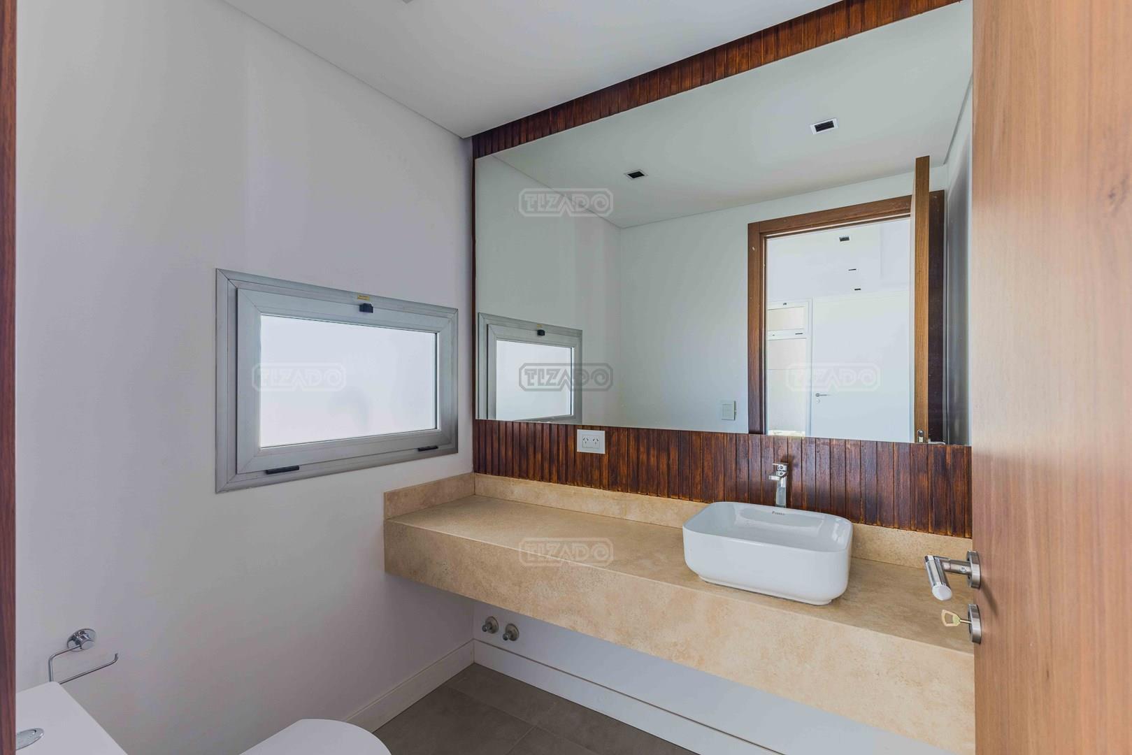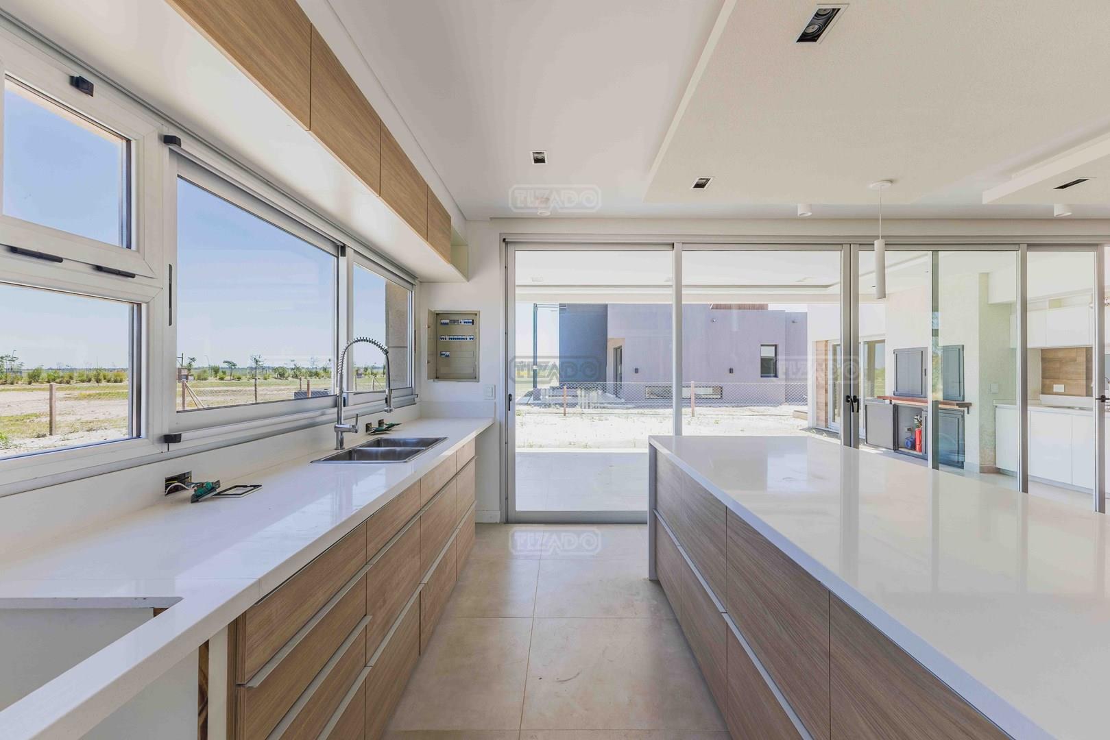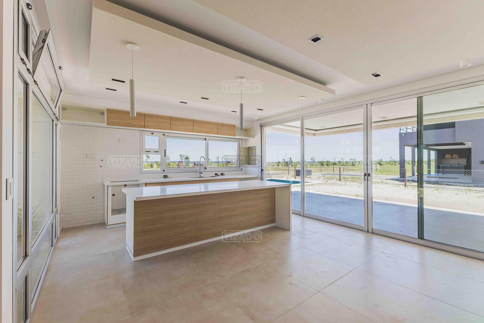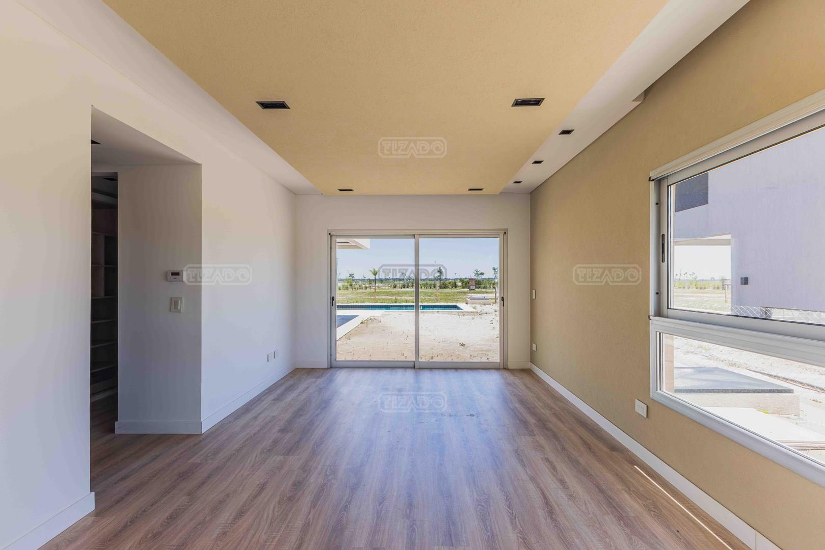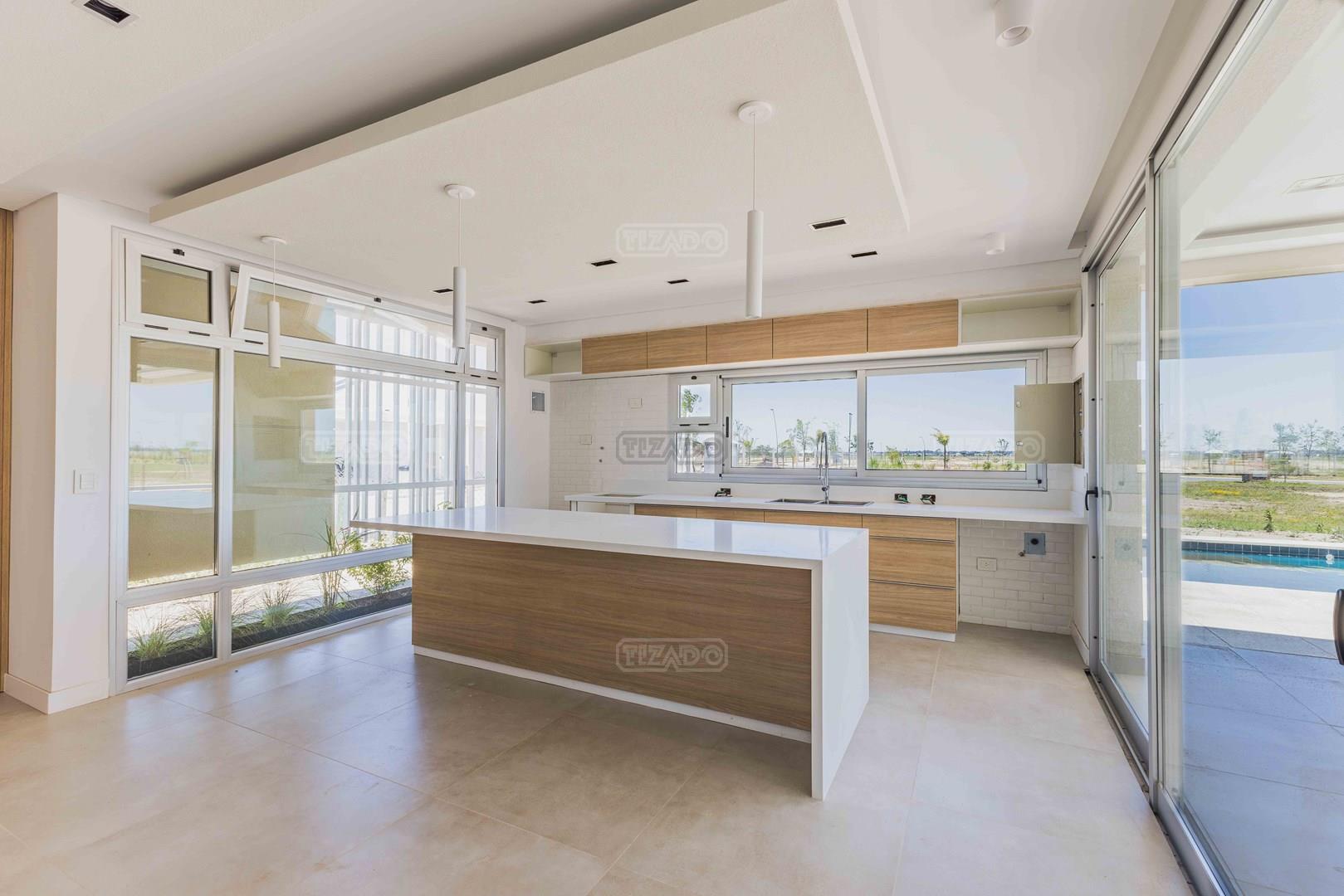 Casa moderna diseñada en una Planta, sobre lote en Esquina de 633 mts, con Fondo Orientación Oeste. La misma se encuentra ubicada a tan solo metros de la entrada principal del barrio, con vista al Futuro Bosque que tendrá el Barrio Nativas. Al ingresar, living comedor integrado, toilette de recepción, cocina Integrada con barra desayunadora y vista hacia la galería. La casa cuenta con dos habitaciones con baño compartido y master suite con vestidor y baño propio. Jardín parquizado, pileta en funcionamiento, parrilla completa con cerramiento, bacha sobre el lateral de la misma y lugar de guardado. La casa cuenta con detalles de madera en varios espacios, con revestimientos verticales y en el exterior, parasoles decorativos en caño estructural con canteros iluminados. Terminaciones: Abertura Aluar anodizado natural A30 con DVH en todos lo ambientes, Losa radiante en toda la casa, con termostatos independientes por ambiente, caldera dual a gas, Sanitarios Roca Hall, Griferia Hidromet Raptor, Mesadas de marmol, Bachas Roca Burnei, Porcelanatos 80x80 imola beige en el Living y detalles en la casa exteriores con porcelanato cerro negro simil madera lapacho, cuarzo en la cocina y parrilla, cisterna de almacenamiento de 1000 lts, con bomba elevadora, reserva de 1000 litros en terraza con presurizadora, puertas oblak. Puertos es un desarrollo único en Escobar que redefine el concepto de vivir rodeado de naturaleza y confort, con una infraestructura moderna que asegura calidad de vida y seguridad. -- Ofrece espacios verdes, un trazado inteligente con bicisendas que conectan cada punto de la ciudad, y un entorno natural que promueve un estilo de vida activo, al aire libre y en comunidad. -- 1.400 Hectáreas en medio del verde, donde encontrarás: un Lago Central de 200 hectáreas y lagos interconectados que permiten llegar navegando a distintos puntos de la ciudad. Una Reserva Natural y un proyecto paisajístico desarrollado en función de la flora autóctona. 3 Colegios activos, área comercial, oficinas, Club náutico con playa privada, club deportivo y polo gastronómico. -- Es también el PRIMER y ÚNICO Desarrollo con un MUSEO DE ARTE, ya que tiene el privilegio exclusivo de albergar una sede del prestigioso MALBA (Museo de Arte Latinoamericano de Buenos Aires), el cual ofrece exposiciones de primer nivel, salas al aire libre y una programación cultural que enriquece la vida de sus residentes, convirtiendo al arte en parte de su vida diaria. -- Puertos está pensado para disfrutar del verde, vivir con tranquilidad y seguridad sin resignar la comodidad de la ciudad, todo con acceso directo desde Panamericana. -- *Información Adicional:* Las expensas incluyen Club Puertos, Agua de red y de riego. - Se abona aparte, Impuestos Municipales y la proporción correspondiente de ARBA. - (Valores sujetos a modificaciones. Actualizados a Diciembre 2025).-- ¡Vení a conocerla, coordina una visita! Tizado, Inmobiliaria OFICIAL de Puertos.