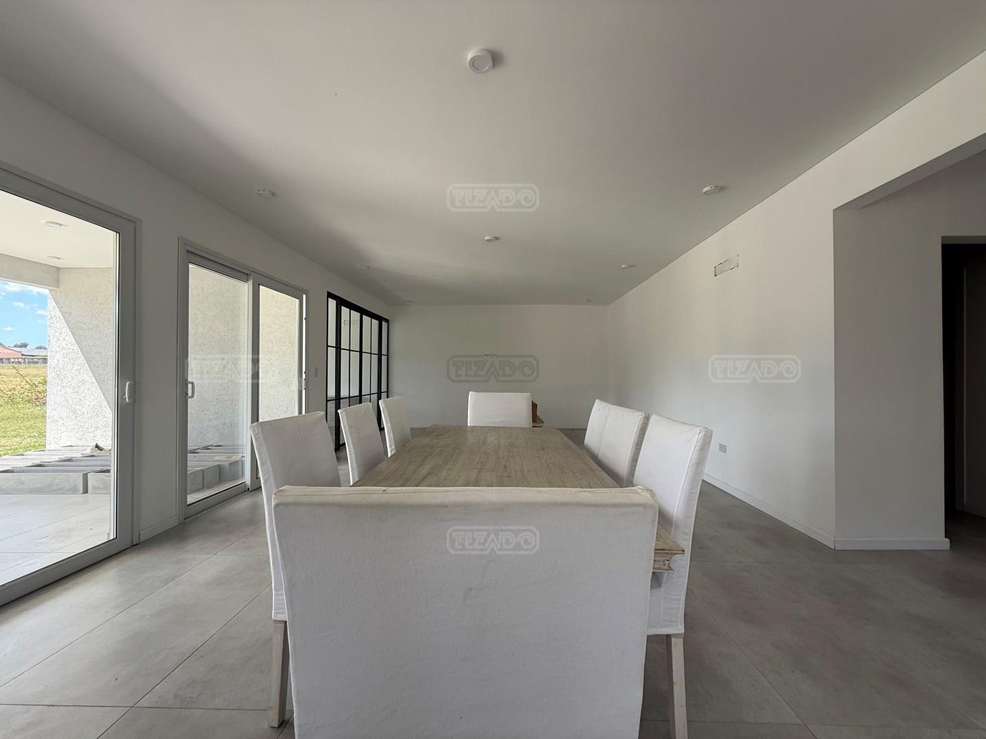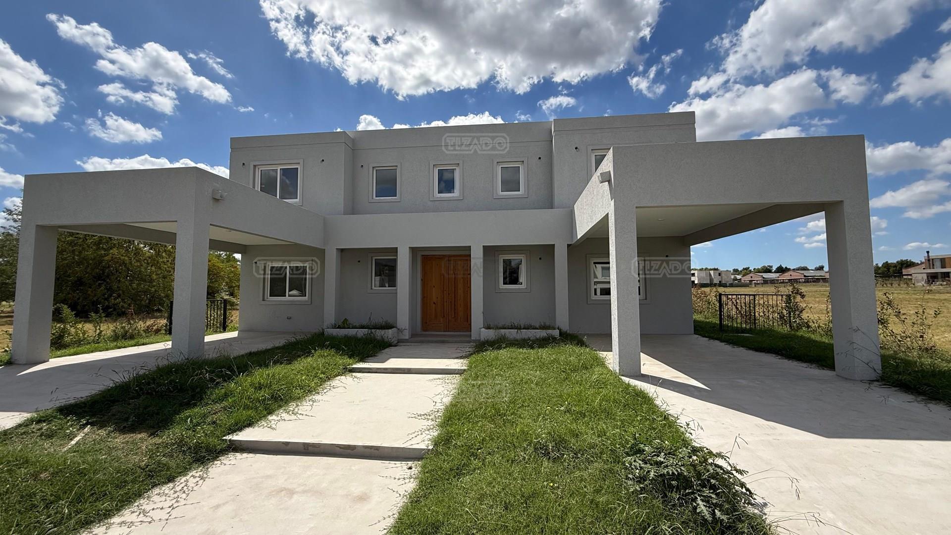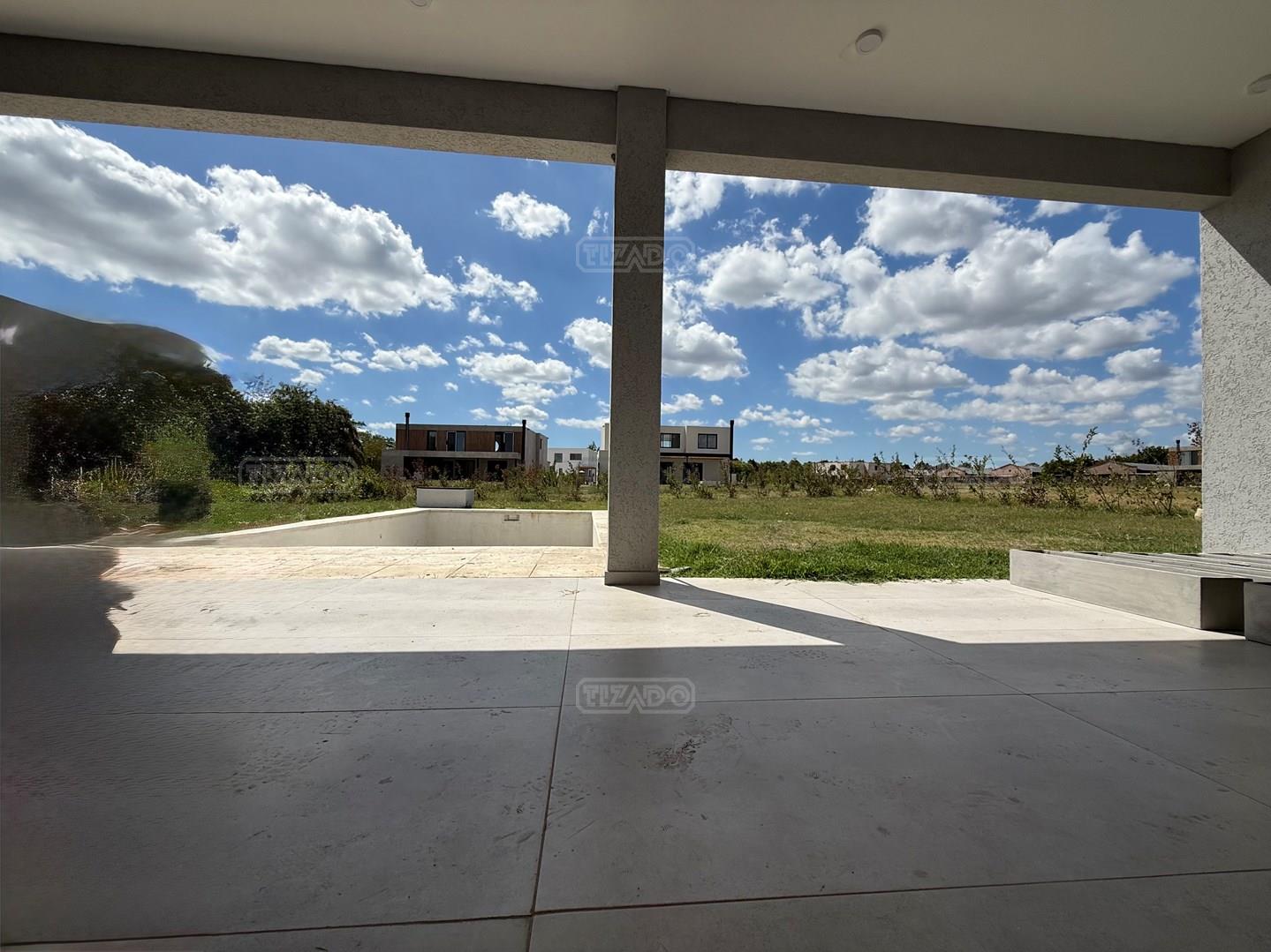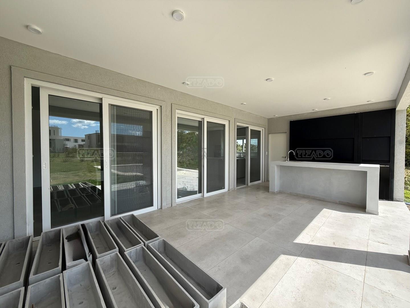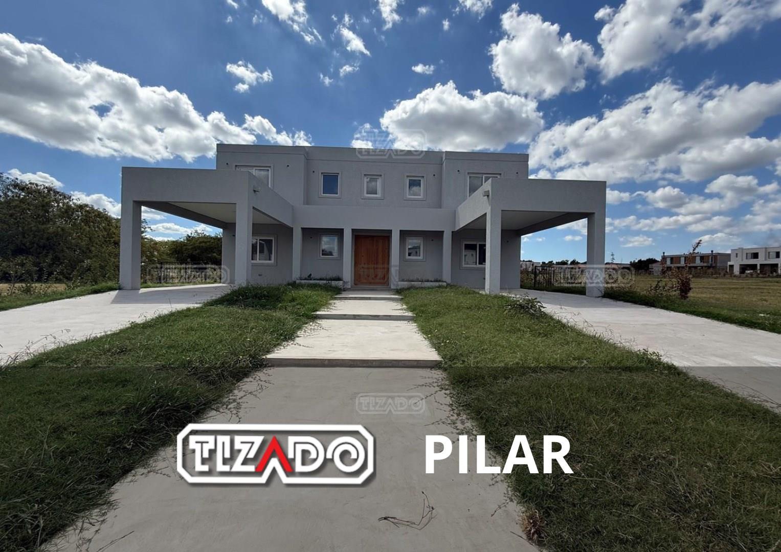CASA MODERNA EN TILBURY, en 2 plantas Con Cine / Escritorio o 4to dormitorio. Galeria con Losa Radiante. Diseño y materiales de calidad. PLANTA BAJA Recepción. Living Comedor Cocina (concepto abierto). Escritorio/Dormitorio de Huéspedes. Dependencia de servicio: Despensa, Lavadero y Dormitorio con Baño Completo. Cochera Semi Cubierto para dos camionetas. Depósito. Galería con horno, Parrilla y Baño. PLANTA ALTA: Dormitorio Principal en Suite, con amplio vestidor, baño compartimentado. Dos (2) Dormitorios en Suite, con baños completos, vestido y aires acondicionados. Sala de cine o playroom. CLIMATIZACIÓN Preinstalación de ductos para Aires Acondicionados. Calefaccion por Losa Radiante por agua (incluido la galería), caldera dual marca Baxi. SUPERFICIES * Terreno 862 m². * Construcción Total: 338,19 m². * Cubierta: 264,53 m². * Semi Cubierta: 73,66 m². ESPECIFICACIONES: Interior, todo de categoría, mesadas de silestone (tanto cocina como todos los baños), Interiores de placares de mampostería. Muebles de cocina/isla, placares con tratamiento laqueado de poliuretano color blanco mate. Griferías: FV, categoría premium. Sanitarios: Ferrum, categoría premium. Piso hormigonado alisado (tratamiento con helicóptero y pulidora en seco). Cielorraso es de yeso armado (no durlock). Pileta de hormigón (10 x 4) PILARÁ COUNTRY - DEPORTE, VIDA FAMILIAR Y CONFORT EN UN SOLO LUGAR GOLF - LA PRIMERA CANCHA JACK NICKLAUS SIGNATURE DE SUDAMÉRICA. TENIS - UNA EXPERIENCIA PROFESIONAL ACADEMIA LO MEJOR DEL POLO - VIDA ECUESTRE - CANCHAS DE POLO Y ÁREA HÍPICA El masterplan contempla una senda hípica de 6 km para que chicos y grandes cabalguen en un entorno agradable y muy cerca de sus casas. Contamos con 7 caballerizas, propiedad de los socios, de 32 boxes cada una, una pista de vareo y un picadero de arena de cava. JACK NICKLAUS: DISEÑO CANCHA DE GOLF