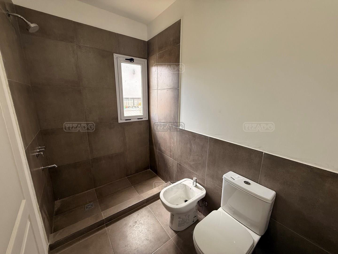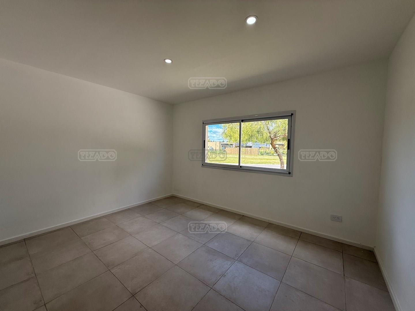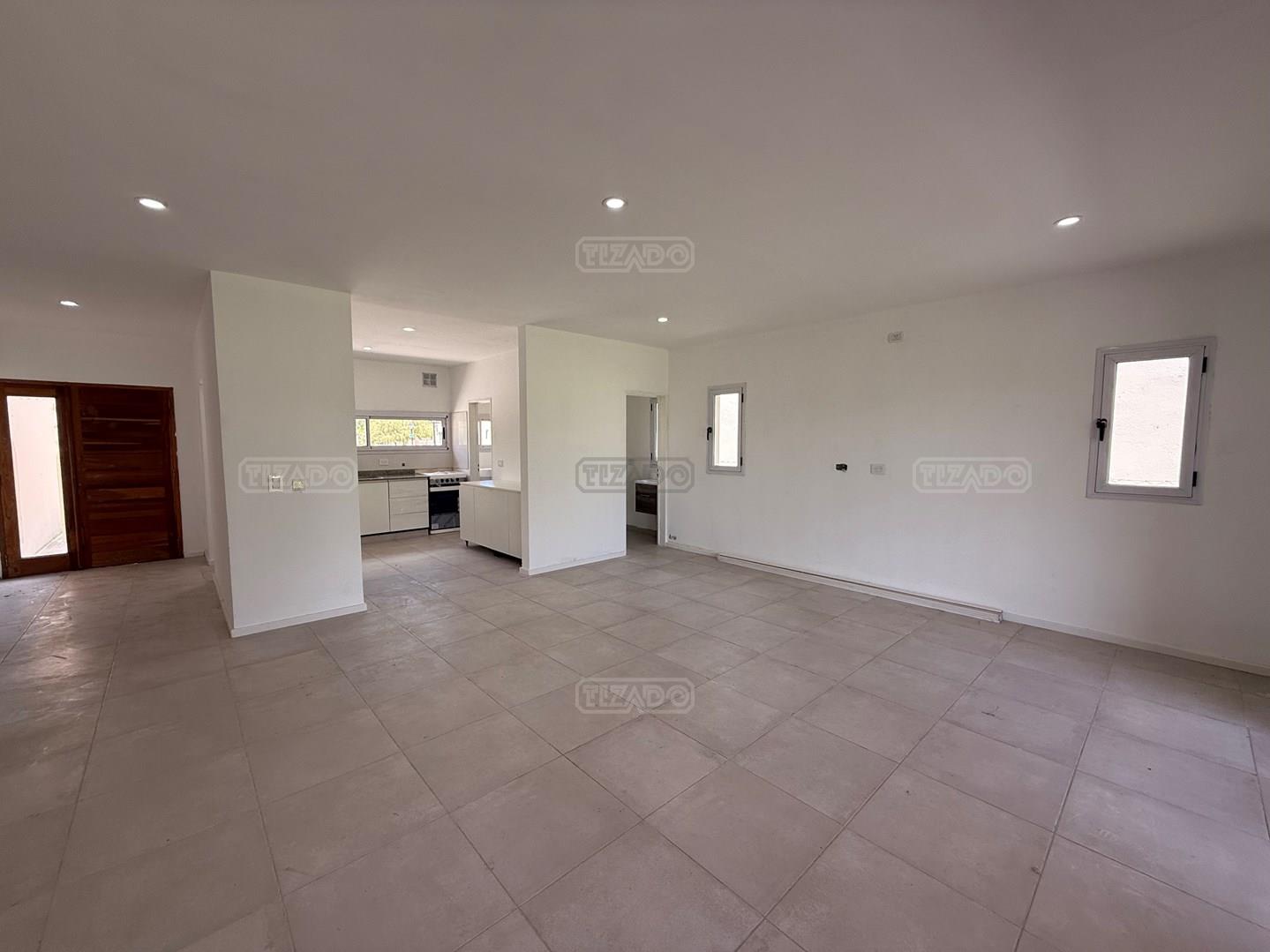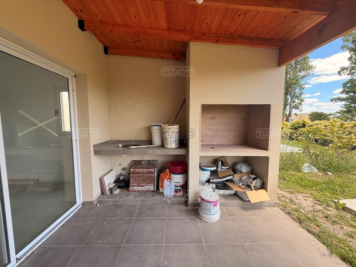 Casa en venta en Santa Emilia, Pilar del Este. Construida en una planta sobre lote interno. Amplio living comedor, cocina con gran espacio de guardado y lavadero independiente. Dormitorio principal en suite con vestidor, dos dormitorios secundarios y baño completo. Exterior con galería y parrilla. Calefacción por losa radiante eléctrica y aberturas con DVH. Barrio cerrado con seguridad, SUM y canchas deportivas, ideal para vivir en familia.