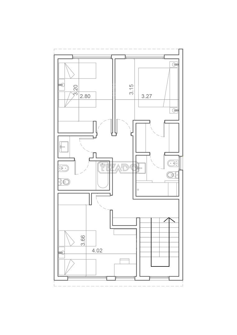 - Dormitorio: 3,20 x 2,80 c/ placard