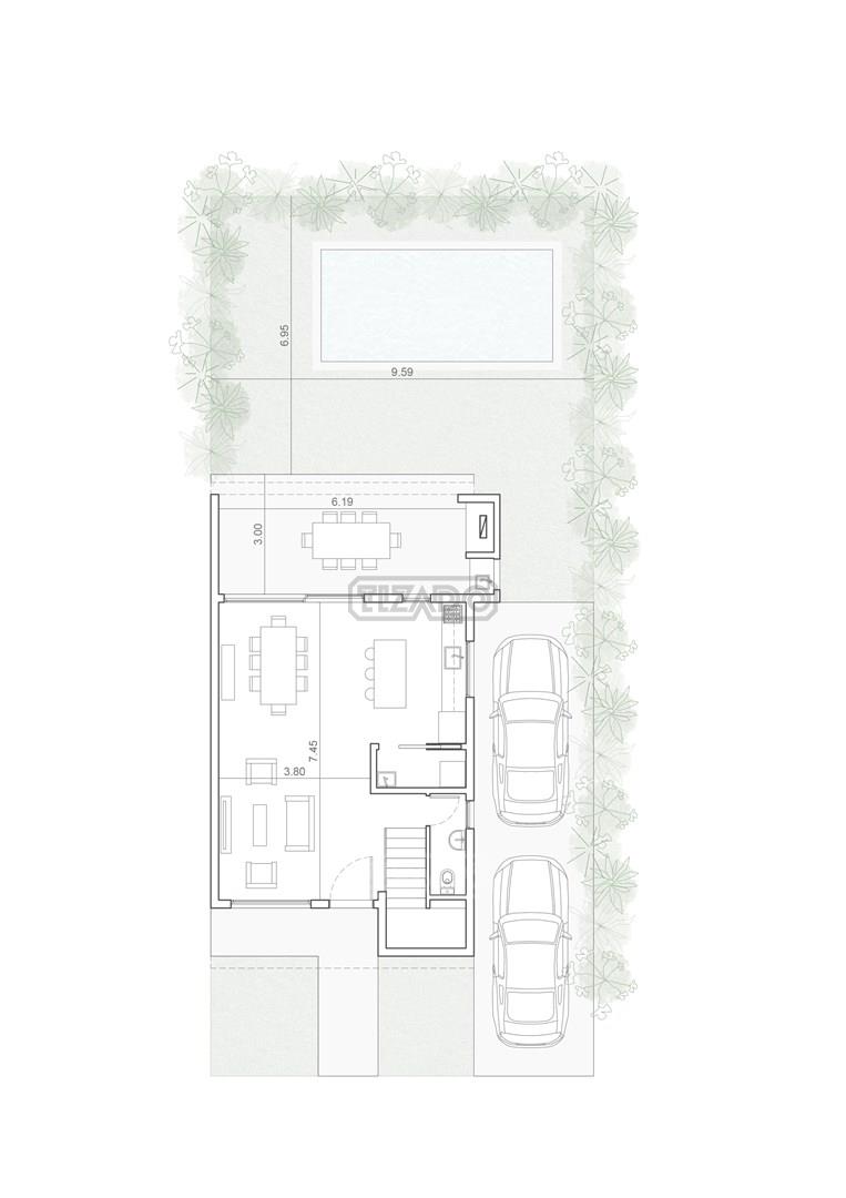 - Jardín: 9,59 X 6,95