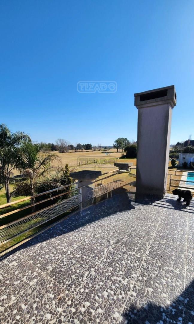 Propiedad en inmejorable ubicacion, macizo I, fondo al golf y cul de sac!!! Desarrollada en dos plantas. En planta baja, estar/living y comedor. cocina con barra desayunadora. Toil, lavadero independiente, y Comodo dormitorio. En planta alta3 dormitorios, uno de ellos en suite con baño, y baño completo para los otros dos dormitorios. Terraza con excelente vistas al golf!! Galeria con parrilla, Cuartito de guardado y baño exterior. Cochera para dos autos. Pileta de 8 x 4. Calefaccion por TB y AA. El Masterplan se muestra como un proyecto ambicioso y de gran escala. El principal objetivo es preservar sus amplios espacios verdes y el encanto natural que lo rodea para garantizar la oferta de terrenos espaciosos que conforman áreas residenciales distribuidas en 14 barrios. La infraestructura de servicios proyectada es completa y subterránea y el sistema de seguridad es permanente e integral, con los últimos adelantos disponibles que aportan la máxima eficacia con costos racionales. El entorno de este campo brinda paisajes enriquecidos por una forestación rigurosamente cuidada (Masterplan de Thays). Más de 10 mil árboles de diferentes especies forman parte de la extensa vegetación que contribuye al ecosistema de la zona *Las medidas, metrajes y antigüedad consignados en esta ficha son aproximados*