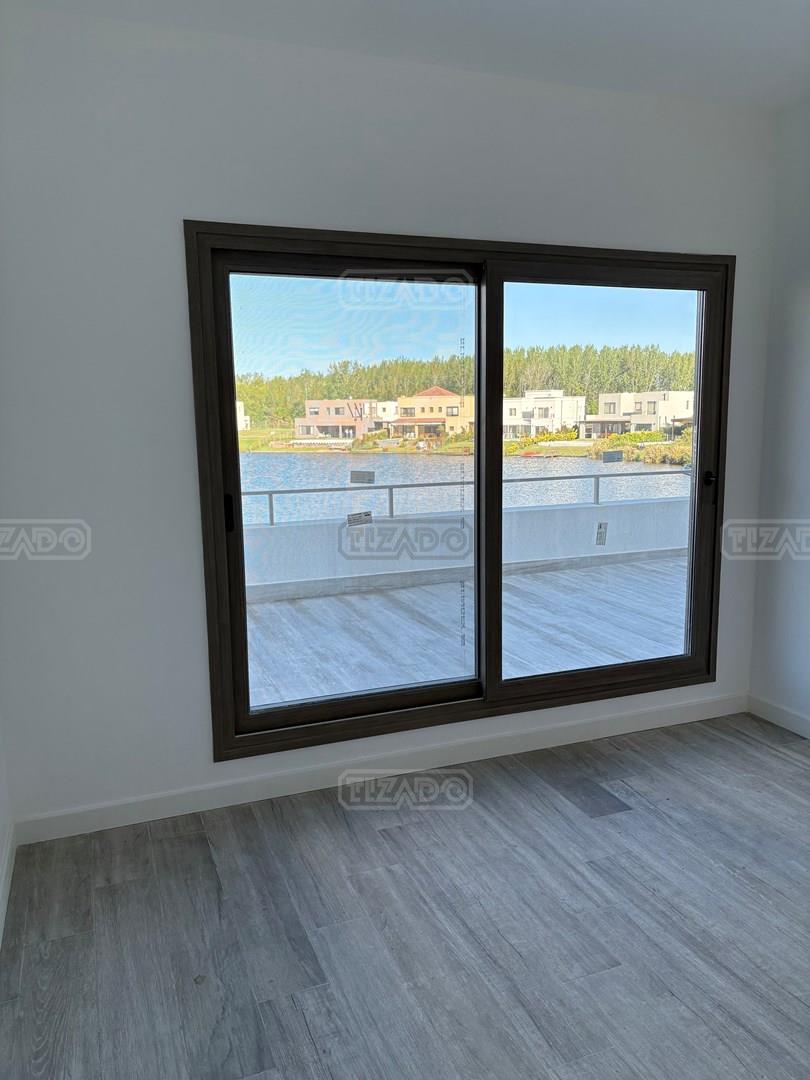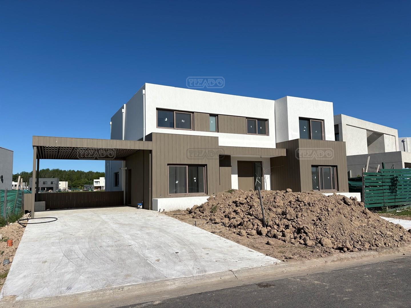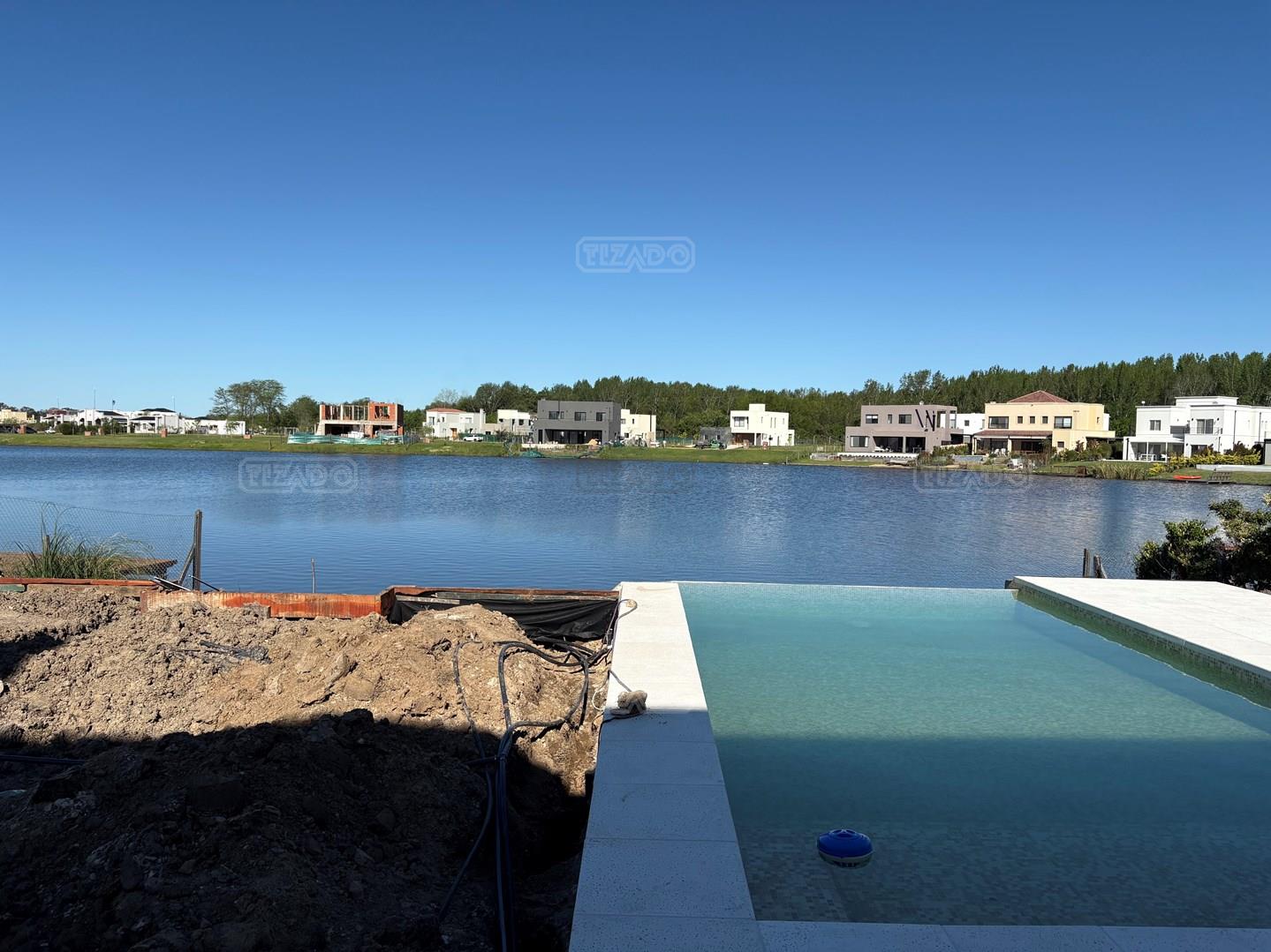Moderna casa de lineas rectas a la laguna de Santa Ana. PB recepción, gran living con hogar, comedor y cocina integrada, toilette. Lavadero. Escritorio o dormitorio de huéspedes con baño completo (o dependencia de servicio) con entrada independiente. PA 4 dormitorios, principal en suite, otros 3 dormitorios comparten un baño. Exterior, gran galeria con parrilla con frente de chapa tipo guillotina, parque y piscina de borde infinito Aberturas de PVC simil madera con DVH y mosquiteros. Calefacción por losa radiante, preinstalacion de AA en todos los ambientes, Incluye frentes e interiores de placard pisos porcelanato de 60x120 en PB y pisos de porcelanato simil madera de 19x115 en PA Mesadas de silestone White Stone Quartz en cocina y lavadero, Blanco Norte en baño suite y chicos. Mesada Negro Brasil Leather en parrilla. Mampara en duchas baño suite de planta alta. Vanitorys en todos los baños excepto en el toilette. Muebles de cocina bajo mesadas con alacenas e isla en blanco laqueados. Horno eléctrico Whirpool, Anafe a gas marca Whirpool. Campana en cocina marca TST. Jardín nivelado. Estacado a laguna con quebrachos. Tanque cisterna de 3.500 lts de capacidad. Bomba presurizadora marca Espa. Caldera dual Baxi. Pileta de 3.5x7 con desborde infinito en el ancho, solado y luces, revestida con venecitas. Equipo de filtrado marca Vulcano. Accesos peatonales y vehiculares en hormigón alisado. Cochera cubierta para 2 autos, estacionamiento sin techar para 4 autos.