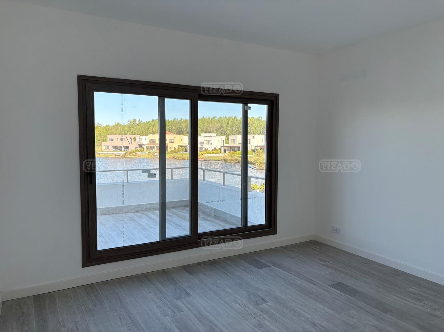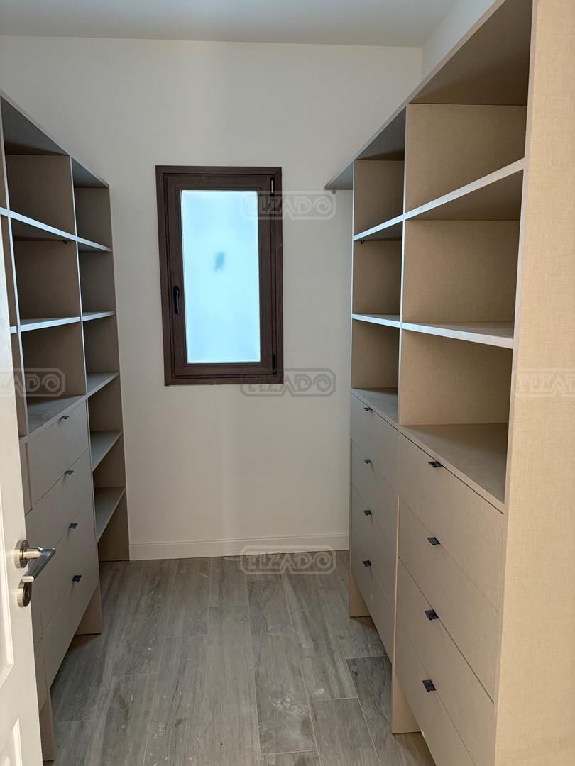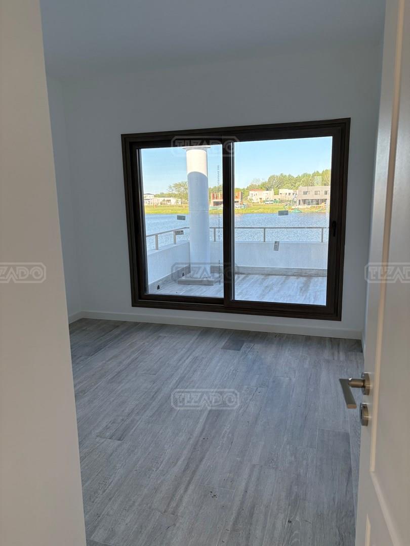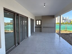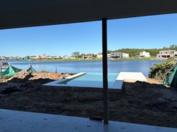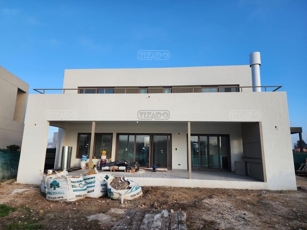 Moderna casa de lineas rectas a la laguna de Santa Ana. PB recepción, gran living con hogar, comedor y cocina integrada, toilette. Lavadero. Escritorio o dormitorio de huéspedes con baño completo (o dependencia de servicio) con entrada independiente. PA 4 dormitorios, principal en suite, otros 3 dormitorios comparten un baño. Exterior, gran galeria con parrilla con frente de chapa tipo guillotina, parque y piscina de borde infinito Aberturas de PVC simil madera con DVH y mosquiteros. Calefacción por losa radiante, preinstalacion de AA en todos los ambientes, Incluye frentes e interiores de placard pisos porcelanato de 60x120 en PB y pisos de porcelanato simil madera de 19x115 en PA Mesadas de silestone White Stone Quartz en cocina y lavadero, Blanco Norte en baño suite y chicos. Mesada Negro Brasil Leather en parrilla. Mampara en duchas baño suite de planta alta. Vanitorys en todos los baños excepto en el toilette. Muebles de cocina bajo mesadas con alacenas e isla en blanco laqueados. Horno eléctrico Whirpool, Anafe a gas marca Whirpool. Campana en cocina marca TST. Jardín nivelado. Estacado a laguna con quebrachos. Tanque cisterna de 3.500 lts de capacidad. Bomba presurizadora marca Espa. Caldera dual Baxi. Pileta de 3.5x7 con desborde infinito en el ancho, solado y luces, revestida con venecitas. Equipo de filtrado marca Vulcano. Accesos peatonales y vehiculares en hormigón alisado. Cochera cubierta para 2 autos, estacionamiento sin techar para 4 autos.