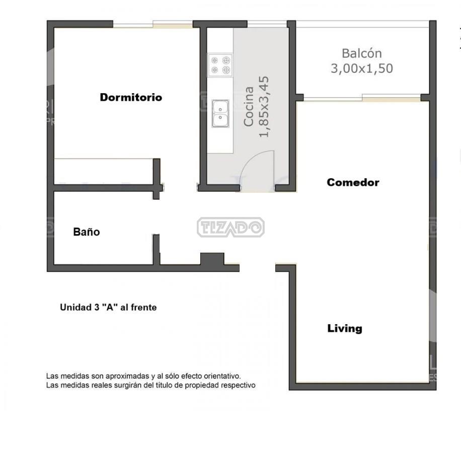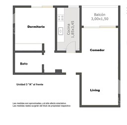 - Cocina: 3,45 X 1,85