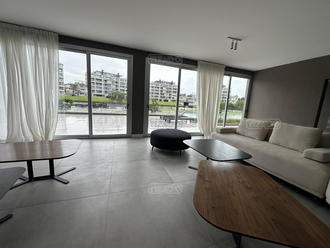 YOO 5 by Acqua Nordelta: Departamento DOS ambientes con cochera y baulera. VISTA AL LAGO en un primer piso. FECHA DE ENTREGA estimada dic 2025. CONSULTAR permuta por CASA en NORDELTA. Departamento 2 ambientes con amplio balcón y vista al lago central de Nordelta. Ambientes: toilette de recepción, Cocina integrada con barra y conexión para lavarropas, living comedor y Dormitorio en suite con vestidor. Desde el living y desde el dormitorio tienen salida al salida al balcón (con parrilla) con vista al lago central de Nordelta. Superficie cubierta: 52,88 Superficie semicubierta: 11.30 Superficie total: 83.39. Terminaciones: Pisos de porcelanato. Baños: equipados grifería y loza de primera calidad. Espejos y accesorios instalados. Cocina: con Anafe y horno instalado. Mesadas de mármol. Carpinterías de aluminio anodizado con perfiles Premium y doble vidrio DVH. Calefacción por piso radiante Sistema de agua caliente con caldera central a gas y termostato con regulación individual por ambiente. Frentes de placard integral con interiores incluidos. Parrillas en todas las unidades, incluyen herrajes y puertas guillotinas realizadas completamente en acero inoxidable. Balcon con barandas de vidrio laminado. Artefacto de iluminación instalados. Edificio equipado con: 2 ascensores por núcleo, un total de 4 ascensores automáticos de última generación, cabina revestida en acero inoxidable. Instalaciones y grupo electrógeno para abastecer servicios comunes. Amenities propias del edificio Bar - Sum. Salones interiores. Piscina para niños. Solárium humedo. Jacuzzi incorporado a la piscina. Muelle con espacios de relax. Amenities sobre el lago: Rincón de fuego. Piscina para nadar 5m x 35 m. Camastros sobre piscina.