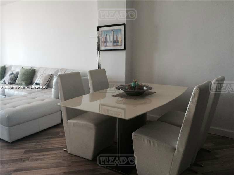 • Unidad de dos dormitorios completamente renovada y bellamente amueblada con pisos de madera. • Ubicado frente a la playa y cerca de los centros comerciales Aventura y Bal Harbor. • Balcón con vista al mar con puertas corredizas de vidrio. • Cocina moderna con isla de vidrio, gabinetes blancos y electrodomésticos de acero inoxidable. • Sala de estar de concepto abierto con mesa de comedor y lámpara de araña.