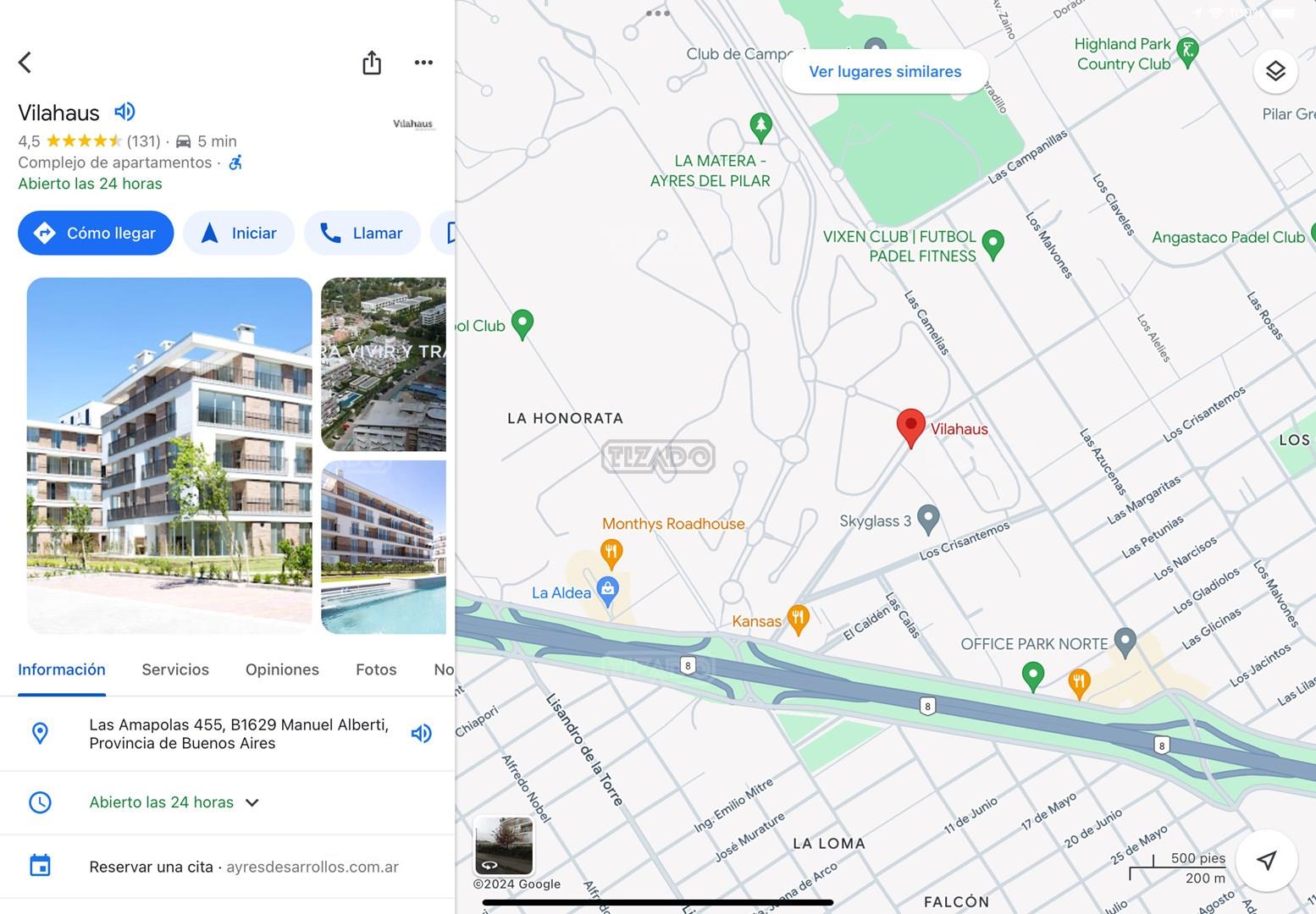Increíble Departamento 3 ambientes con Jardin. Súper Luminoso. Orientación NORTE. Con 1 Cochera Fija. Condominio con Garitas de INGRESOS Y EGRESOS. Servicio de seguridad 24hs. Excelente ubicación, a metros de panamericana km 43,5 con los mejores accesos. Hall de Recepcion, Amplio Living comedor integrado con grandes ventanales en “L”. Super Luminoso con orientación NE N y NO. Acceso a Jardin con Galeria y parrilla. Sector para Lavarropas. Cocina con Isla concepto abierto. 2 Baños completos. Corredor de acceso a Dormitorios. Dormitorio Principal con Vestidor etc SUITE. Dormitorio Secundario con Placard. Ambos dormitorios con ventanales hacia el Jardin. Equipos de aire frío/calor en ambientes. Vilahaus Complejo de departamentos de 2 y 3 Ambientes . Con Garita de Seguidad con doble carril para ingresos y Egresos. Vigilancia 24hs. Ubicación privilegiada con entorno unico -AYRES VILA y AYRES DE PILAR. Se encuentra dentro de Ayres Vila, centro Urbano ubicado en el Km. 43 de Panamericana Ramal Pilar. Espacio de 17 hectáreas que ofrece viviendas , oficinas y comercios. 13.565 m² distribuidos en 5 módulos de 30 unidades cada uno. -Control de acceso vehicular y peatonal, vigilancia en el acceso. -Amenities de calidad: Pileta, gimnasio, vestuarios, S.U.M equipado, dos parrillas. -Ascensor con cabina de acero inoxidable. -Cada unidad cuenta con una cochera descubierta.