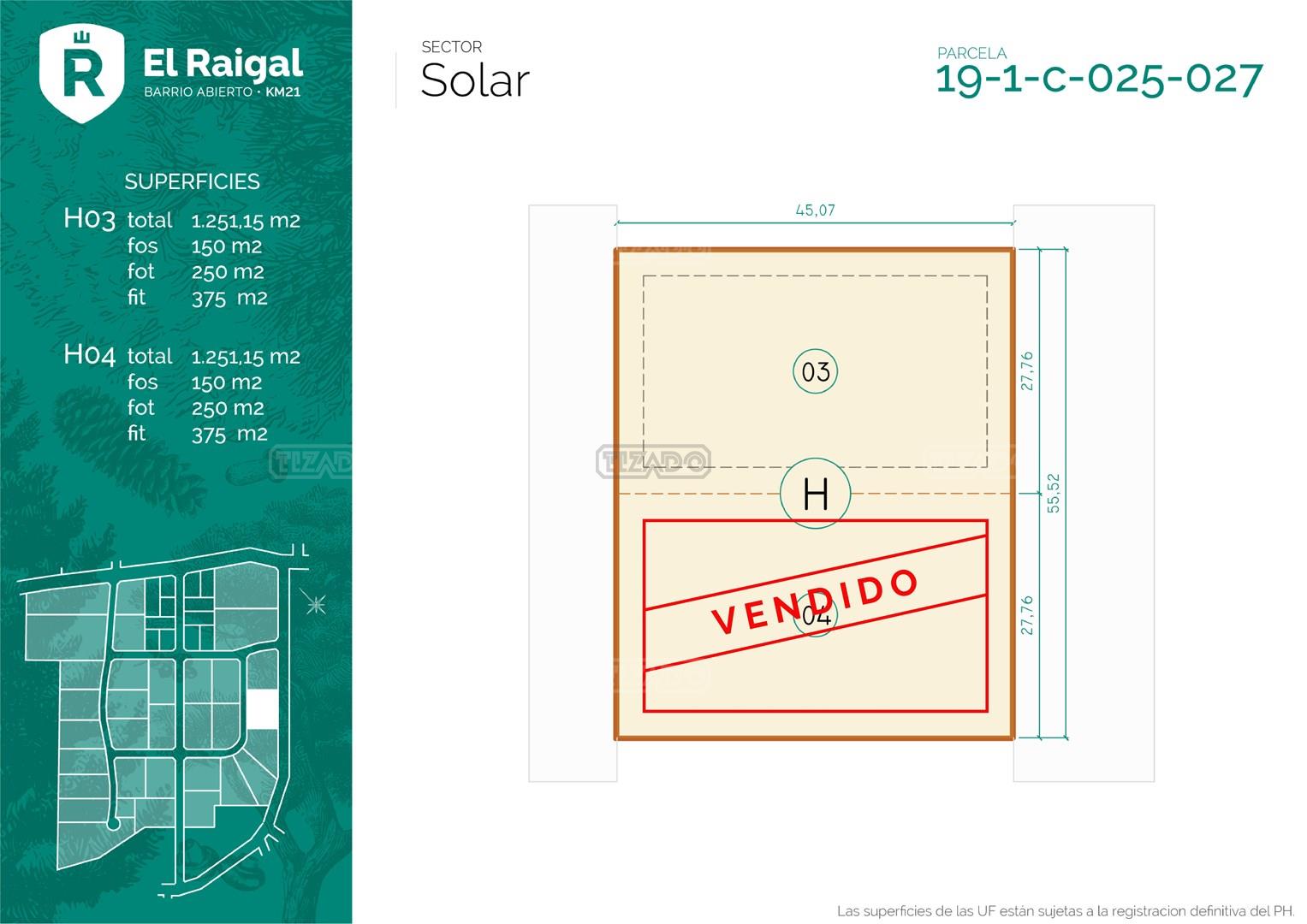 El Raigal - Un Oasis en Bariloche Descubre El Raigal, un exclusivo barrio residencial diseñado para quienes buscan vivir en amplios lotes, con todos los servicios de una ciudad y sin expensas. Ubicado en el hermoso Circuito Chico, este lugar único es un verdadero oasis en Bariloche. El Raigal combina un diseño urbanístico moderno con estrategias de eficiencia energética. Disfruta de un entorno natural excepcional, con áreas de reserva forestal que albergan especies autóctonas, además de luminarias LED que promueven la sostenibilidad. El barrio contará con un sistema de seguridad cerrado, equipado con cámaras en las tres entradas para tu tranquilidad. Conéctate al mundo a través de nuestra red de fibra óptica soterrada, todo dentro de uno de los Parques Nacionales más bellos del país. El Raigal te ofrece: Agua potable Electricidad Gas natural Recolección de residuos sólidos Salón de usos múltiples (SUM) y plaza con juegos saludables Cancha de fútbol Amplios espacios verdes Bicisendas y senderos Paradas de transporte y estacionamiento ¡Financiación disponible! Modalidad de pago: 30% de anticipo, 50% en 24 cuotas fijas y 20% al momento de la posesión. Ni Tizado Propiedades (M&G Inmuebles Patagonia SRL), ni el Martillero a cargo son responsables de los indicadores urbanísticos, factibilidades de construcción, ni usos permitidos sobre el inmueble objeto del presente. Corredor y Martillero Matriculado: Sebastián Caretta - Matricula N.333-RP-20 F.412 T.Il