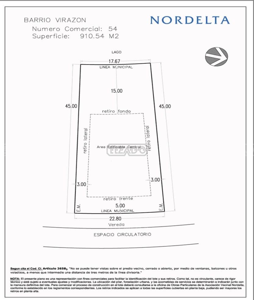 Hermoso lote en Virazón, barrio al lago central. Consultar por financiación.