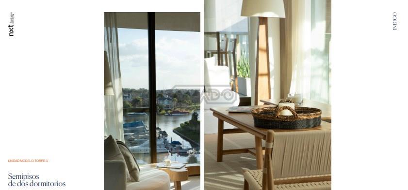 Planta Baja – Niveles de Acceso – Patios circulares. Acceso vehicular por calle exclusiva hasta el lobby de acceso residencial. Acceso vehicular a cocheras cubiertas Halls de acceso con carpinterías de aluminio, pisos graníticos pulidos y revestimientos de primera calidad. Escalera de vinculación a amenities de Subsuelo. Estacionamientos de cortesía. jardín de acceso y parque Planta baja parquizado. Amarras privadas y mirador hacia el rio. Edificio implantado en el barrio Islas del Canal Área Ribereña. Subsuelos. Cocheras. Acceso y egreso vehicular por rampa. Estacionamiento para bicicletas. Acceso directo a los núcleos de circulación vertical. Bauleras de las unidades. Pileta climatizada cubierta. Gimnasio con aparatos de última generación. Sanitarios, Vestuarios y Duchas. Salón de Usos Múltiples. salón de relax, masajes, yoga o spa. Características del Edificio. Fachada combinada de vidrio y filos de hormigón. Carpinterías de aluminio con doble vidriado acústica y térmica. Pileta y solárium exterior. Senderos peatonales rodeando los edificios. Palieres semi privados servidos por ascensores de última tecnología. Departamentos en planta baja. Terrazas / Jardines privados con parrilla, piletas y vista al rio. Unidades con vistas al agua. Recepción y master amplias, terrazas al rio, terrazas con parrillas. Pent Houses y unidades tipo en los últimos niveles del edificio con amplias terrazas semicubiertas y pileta. ½ km de senda aeróbica en parque planta baja. Pileta descubierta en parque, con lugar de sombra y en relación con el agua Revestimiento de sanitarios. Los baños principales serán revestidos en porcelanato y detalles de piedra natural o similar. Los baños secundarios serán revestidos en porcelanato. Revestimiento de pisos y zócalos. Todos los pisos de baños llevaran porcelanato. El piso de palier irá en porcelanato. Revestimiento interior de las unidades y exterior en balcones y terrazas ira en porcelanato. Los zócalos serán de madera. Mesadas. En cocinas se colocarán mesadas de Quarzo tipo silestone o similar con bacha de acero inoxidable. En los Baños de dormitorios principales y secundarios serán mesadas de Quarzo tipo silestone o similar con muebles de apoyo. Artefactos, griferías y accesorios de baños. Artefactos sanitarios y griferías de bajo consumo y buena calidad. Equipamiento de cocinas. Los muebles de cocina de diseño contemporáneo. Materiales y herrajes de primera calidad. El equipamiento de cocinas estará constituido por los siguientes elementos: Un horno eléctrico, anafe eléctrico y campana de extracción de aire con filtros de aire con carbono activo. Se dejarán previstas las conexiones eléctricas, de agua corriente y desagüe, para la instalación de Lavavajillas bajo mesada. Se dejarán previstas las conexiones eléctricas, de agua corriente y desagüe, para la instalación de Lavarropas en mueble. Carpinterías. Puerta de acceso principal de madera maciza de doble contacto. Puertas placa de madera en interior de unidades de 2.30 m de altura. Instalaciones por Servicios Centrales. Calefacción por piso radiante con caldera central con control individual por unidad. Agua Caliente por caldera central. Aire Acondicionado. Las unidades se entregan con sistema de aire acondicionado individual multisplit baja silueta y conductos frio/calor con control de temperatura por ambiente. Closets. Se entregarán frentes e interiores de placares.