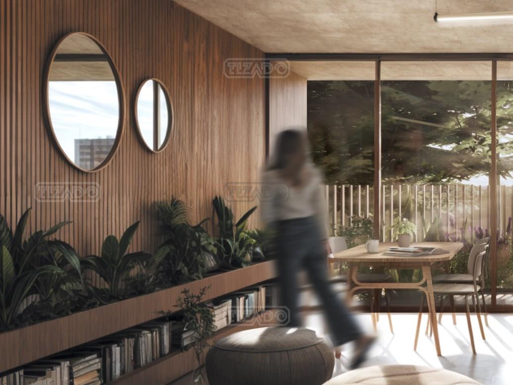 DEPARTAMENTO MONOAMBIENTE CON JARDIN Y COCHERA FIJA. living cocina + espacio para dormitorio todo integrado + baño completo. LA ENRAMADA - Condominio Premium de Departamentos Residenciales de 1 y 2 Ambientes. Aptos uso profesional. Los Departamentos cuentan con cocheras fijas en PB y 9 cocheras de cortesía. AMENITIES: Posee un Parque Central con excelentes vistas a una Gran Piscina y espacios de diseño único con áreas compartidas de Solarium - Vestuarios - Espacio Cowork - SUM - Gym con equipamiento premium - Laundry.. ENTRADA: Por Garita con Doble Acceso, portón de cocheras automático, acceso vehicular con espacio de espera para dos automóviles, con iluminación de ingresos, cámaras de seguridad en límites del terreno. DISEÑO Y ESTILO: Espacios amplios, luminosos y confortables, proyectando vistas horizontales despejadas con extensión y paz visual. A fin de brindar Diseño y Funcionalidad se combina dos materiales como el hormigón y el revestimiento de madera es parte importante del concepto de la arquitectura LEN. Hormigón es un material de larga durabilidad y el WPC combina las cualidades estéticas de la madera natural con una resistencia excepcional, material sustentable y ecológico que no requiere mantenimiento. Muros exteriores con ladrillos Brimax, que ofrecen resistencia, confort acústico y térmico. Livianos y sustentables obteniendo resultados de mayor calidad. TERMINACIONES: Cielorrasos de hormigón visto, carpintería integral de PVC/ALUMINIO con puente térmico símil madera con DVH, pisos de porcelanato, zócalos de EPS, interiores de placard y vestidores, pisos radiantes eléctricos, preinstalación de ductos para aires acondicionados, cañerías para instalación de TV y telefonía, parrillas TROMEN/NUKE en unidades de departamentos, iluminación de tecnologia LED en áreas comunes. COCINAS: Mesadas de granito o similar, Bachas JOHNSON de acero inoxidable o similar , muebles bajo mesada & alacenas de melamina 18 mm , artefactos de cocina eléctricos con vitrocerámico, sistema de extracción , conexión prevista para lavarropas, termotanque eléctrico. BAÑOS: Artefactos sanitarios ROCA o similar. griferías monocomando FV o similar, Mamparas de ducha de vidrio de tipo frontal, extractores de aire. CONSULTAR UF DISPONIBLES Y FINANCIACION!