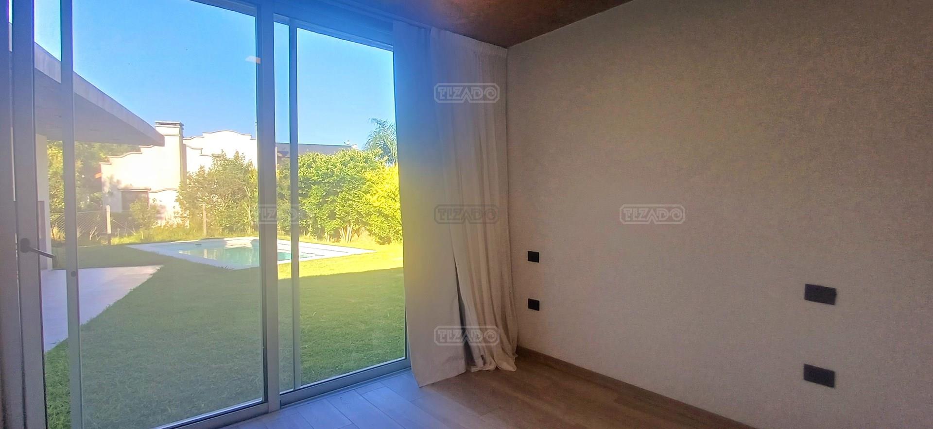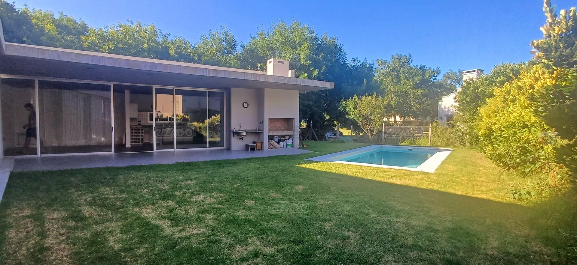 Ubicada en el barrio Caballerizas de Haras Santa María, esta propiedad se destaca por su lote en esquina, en ochava, lo que le otorga mayor amplitud visual, excelente luminosidad y mayor privacidad. Al ingresar a la casa, hacia la izquierda encontramos un espacio ideal para escritorio o home office, perfecto para quienes trabajan desde casa. Hacia la derecha, un pasillo amplio y luminoso nos conduce al área íntima, donde se distribuyen tres dormitorios. La suite principal, ubicada hacia el fondo, cuenta con baño en suite y vestidor. Las otras dos habitaciones, de dimensiones similares, comparten un baño completo. Todas las habitaciones tienen vista al jardín y a la piscina, lo que aporta una conexión permanente con el exterior. El área social se compone de un amplio living comedor, con grandes ventanales y salida directa a la galería, integrando de manera fluida los espacios interiores y exteriores. La cocina es completa y funcional, acompañada por un lavadero independiente con salida al exterior. Además, la propiedad dispone de una dependencia con baño de servicio completo, que puede utilizarse como habitación adicional, espacio de guardado o cuarto de huéspedes. En el exterior, se disfruta de una galería con parrilla, ideal para reuniones, frente a una piscina y un gran jardín con excelente orientación Este, lo que garantiza sol por la mañana y ambientes frescos por la tarde. La casa cuenta con servicios de electricidad y gas.