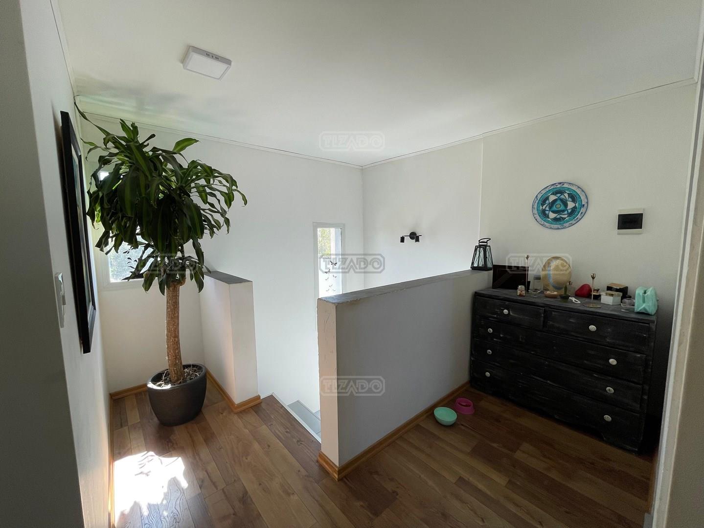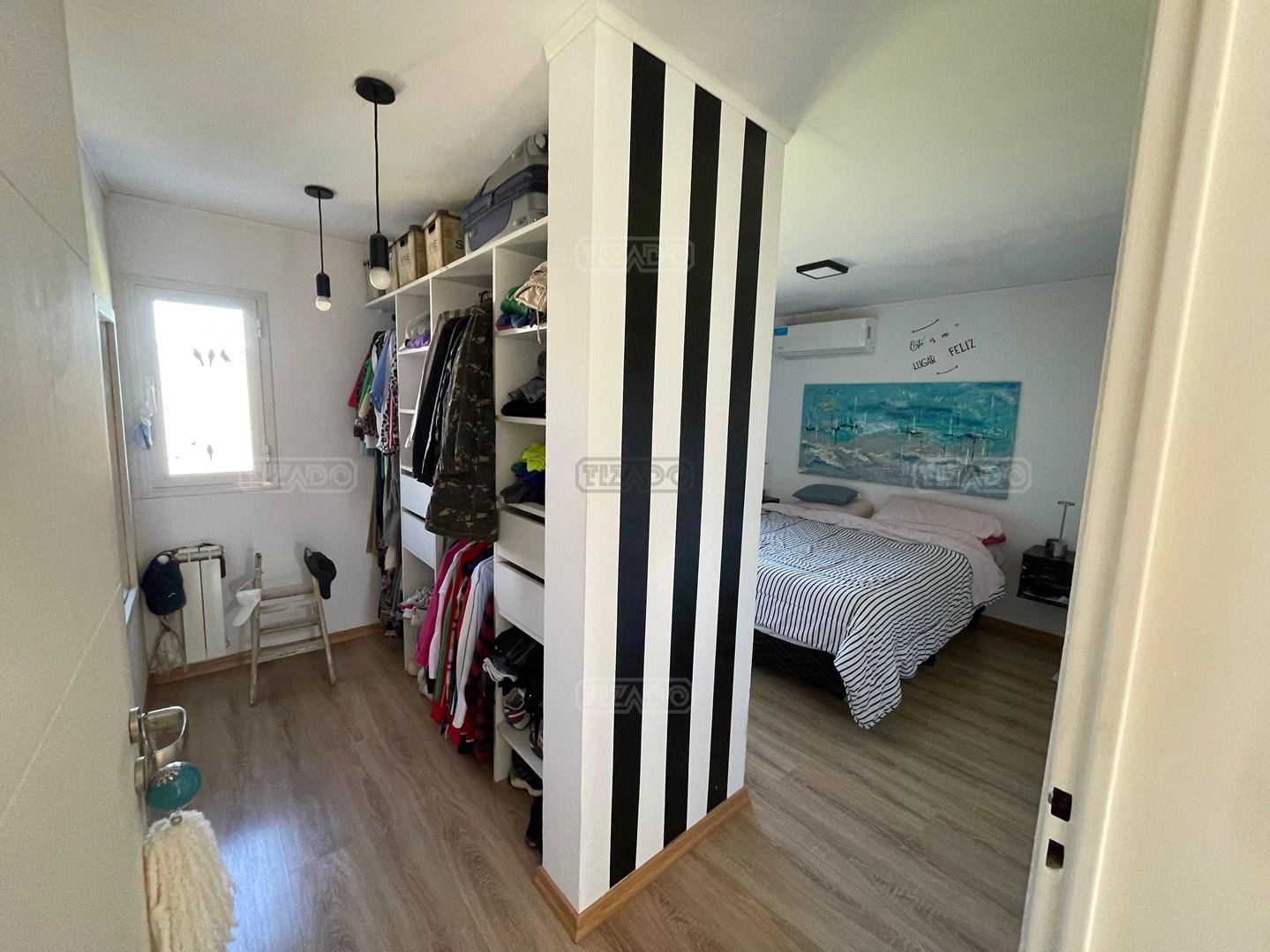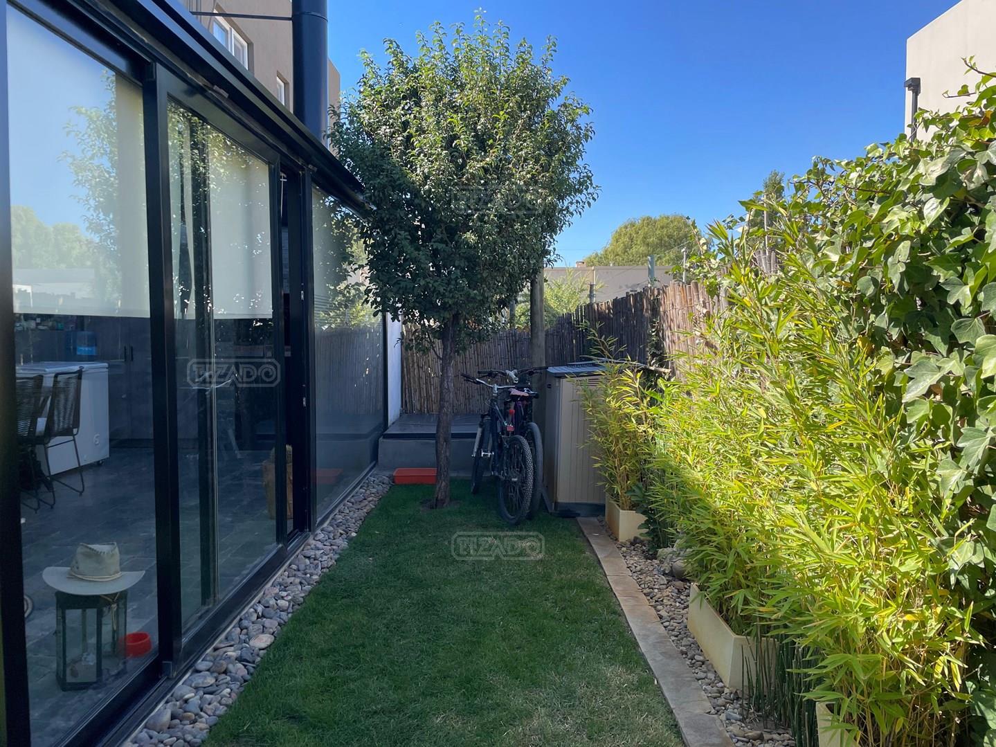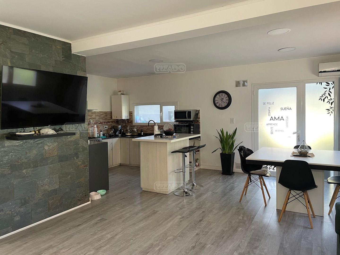 Moderna casa en barrio privado. Ubicada en un entorno tranquilo y seguro, esta propiedad combina diseño, comodidad y funcionalidad en cada uno de sus espacios. Al ingresar, nos recibe un amplio y luminoso living comedor de estilo moderno, perfectamente integrado con la cocina, la cual cuenta con una práctica isla ideal para desayunos o reuniones informales. En esta planta también encontramos un toilette y un espacio de guardado estratégicamente ubicado debajo de la escalera. En la planta alta se desarrollan dos cómodos dormitorios. El principal cuenta con vestidor, ambos son amplios y comparten un baño completo independiente. Además, el pasillo ofrece un espacio adicional tipo escritorio, ideal para home office o estudio. La propiedad se completa con un quincho cerrado y vidriado con parrilla, perfecto para disfrutar durante todo el año. Desde allí se accede al patio, que cuenta con una pequeña pileta y sector verde, generando un ambiente ideal para el relax y momentos al aire libre.