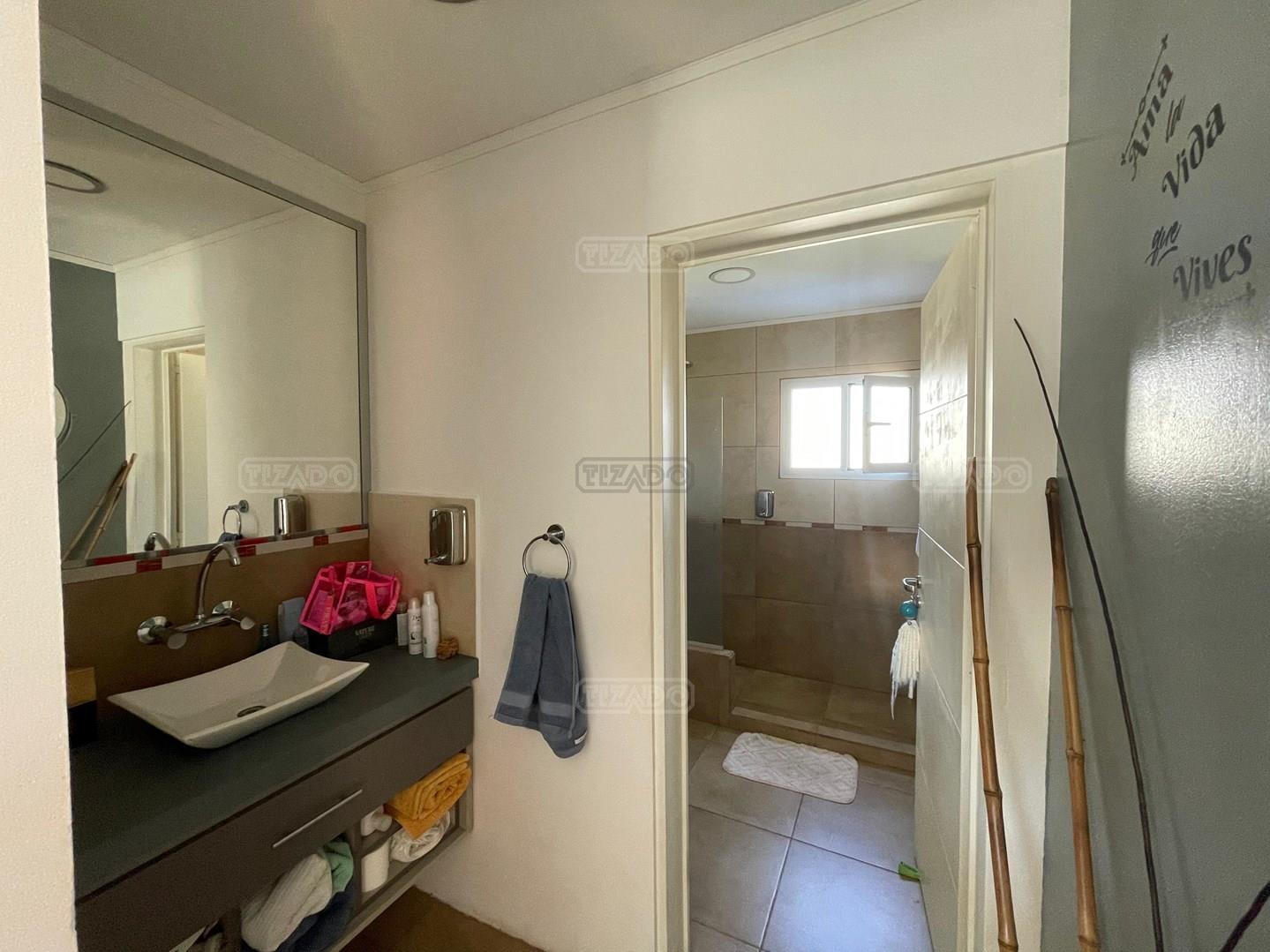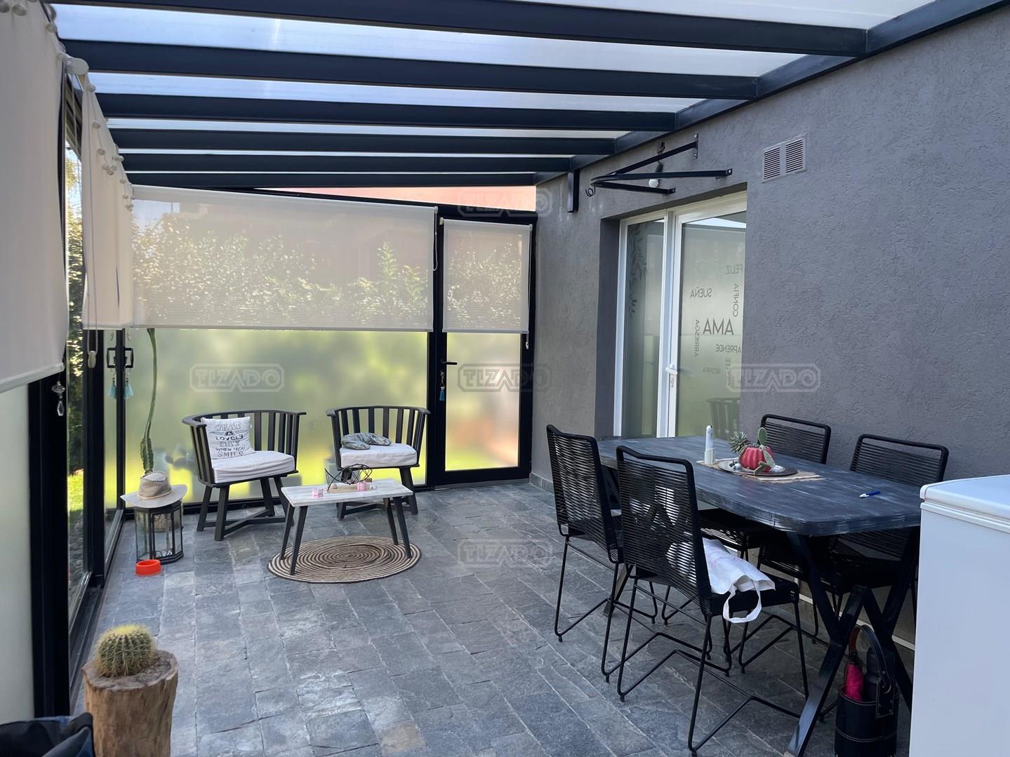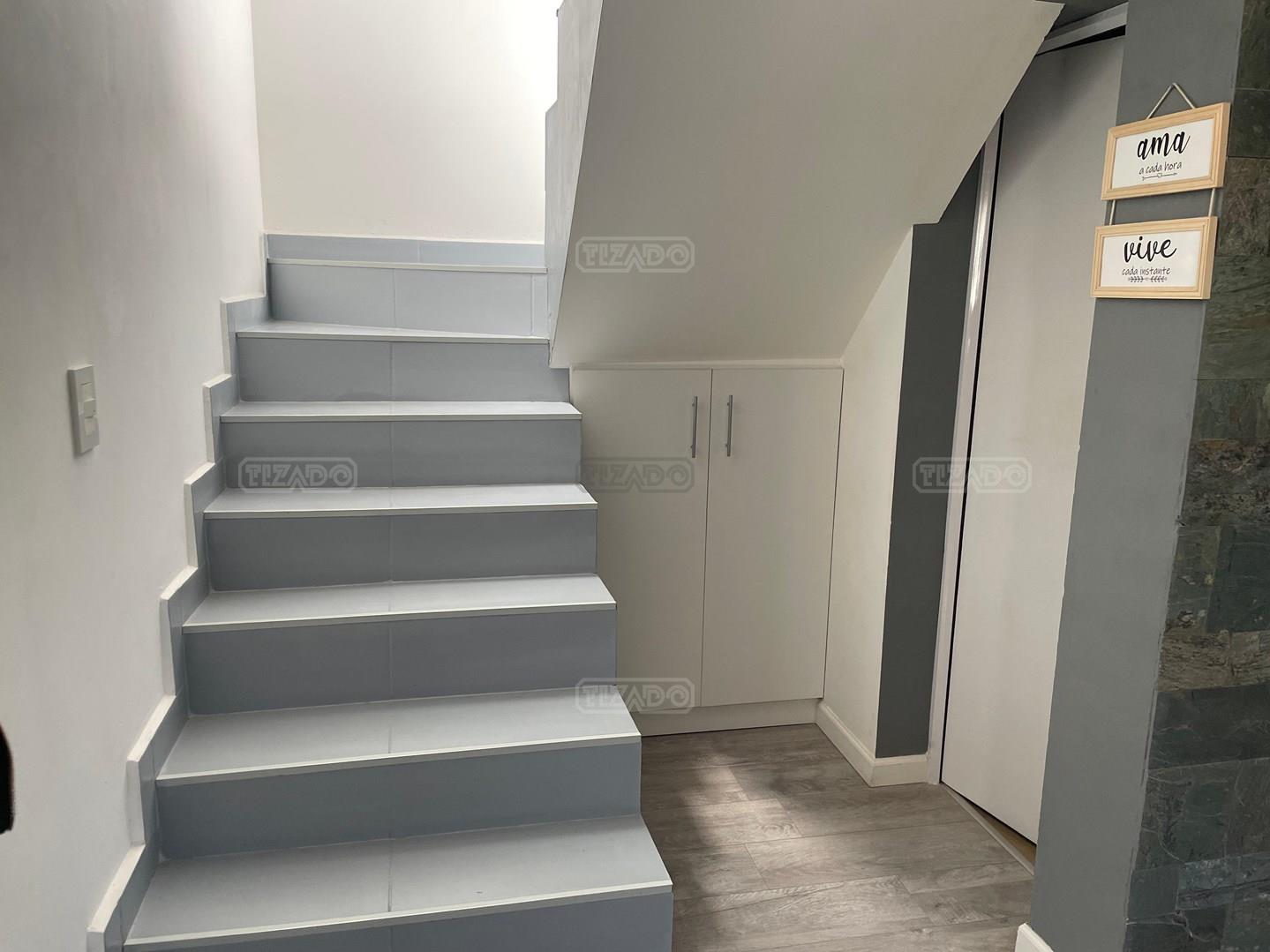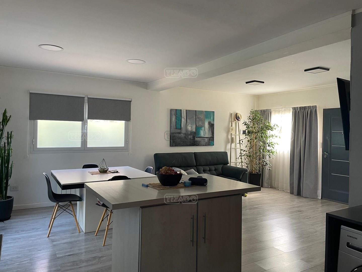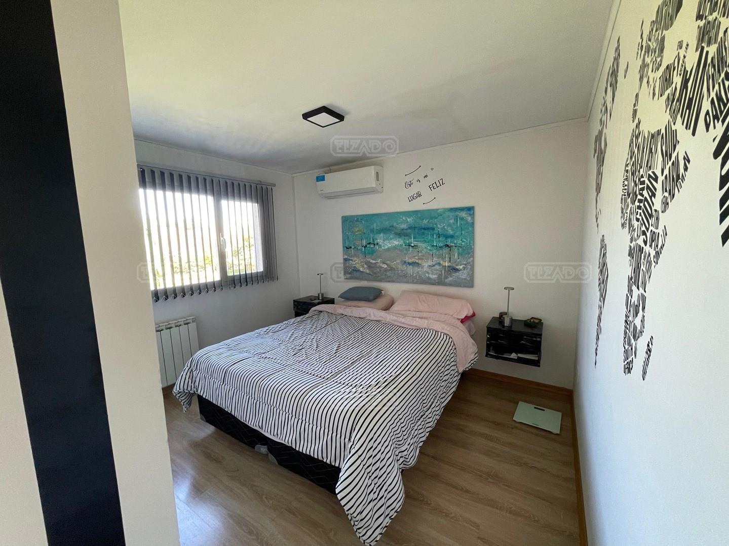 Moderna casa en barrio privado. Ubicada en un entorno tranquilo y seguro, esta propiedad combina diseño, comodidad y funcionalidad en cada uno de sus espacios. Al ingresar, nos recibe un amplio y luminoso living comedor de estilo moderno, perfectamente integrado con la cocina, la cual cuenta con una práctica isla ideal para desayunos o reuniones informales. En esta planta también encontramos un toilette y un espacio de guardado estratégicamente ubicado debajo de la escalera. En la planta alta se desarrollan dos cómodos dormitorios. El principal cuenta con vestidor, ambos son amplios y comparten un baño completo independiente. Además, el pasillo ofrece un espacio adicional tipo escritorio, ideal para home office o estudio. La propiedad se completa con un quincho cerrado y vidriado con parrilla, perfecto para disfrutar durante todo el año. Desde allí se accede al patio, que cuenta con una pequeña pileta y sector verde, generando un ambiente ideal para el relax y momentos al aire libre.