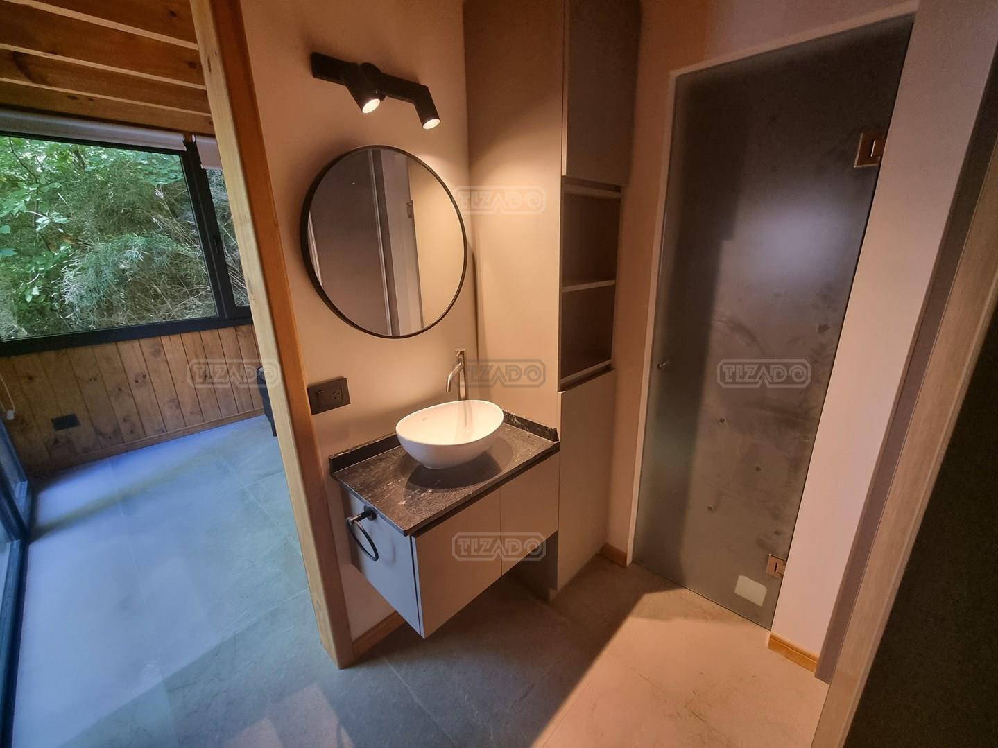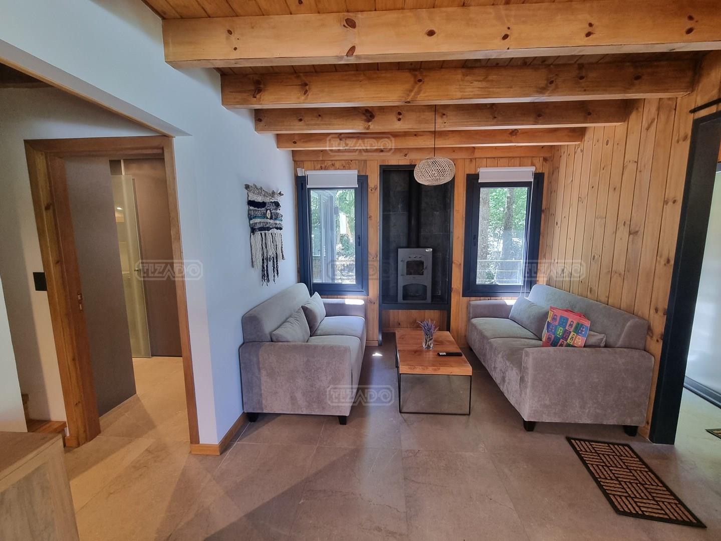 Casa a estrenar en Altos del Sol, a pocos metros del centro de la ciudad! La misma se encuentra en la parte superior del lote. Son 120m2 en dos plantas, con una excelente distribución. En planta baja accedemos desde el deck de hierro a la entrada principal donde nos recibe un práctico hall frío. Luego un amplio living comedor con salamadra, conecta a la cocina con barra desayunadora y mucha luz, gracias a un techo vidriado que permite la entrada del sol durante gran parte del día. También en planta baja tenemos un toilette para uso común, y una cómoda habitación en suite con vestidor! En la planta alta hay dos dormitorios que comparten un tercer baño completo. Excelente calidad de carpintería de madera en Lenga! Consultanos para agendar una visita!
