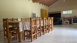 Quinta en barrio semicerrado, con seguridad. "Barrio Parque San Jorge" ; Ruta 6 km 185. Excepcional quinta sobre 3.800 mts, super arbolada, totalmente cercada con alambre tejido. La vivienda consta de un gran ambiente que hace las veces de quincho, cocina comedor, + dos dormitorios y un baño completo. Galeria al frente, y gran piscina de 10 x 3.5.