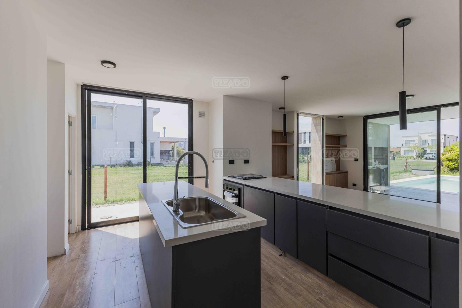 Casa Araucarias– Steel Frame- Diseño, calidad y confort. En obra último tramo, a 3 semanas de ENTREGA, llave en Mano. Actualizada al 04 de Ocubre. Cada día más linda! LOTE CON ORIENTACION NORESTE!! PISCINA Y GALERIA Casa ubicada en Araucarias, con detalles pensados para brindar funcionalidad y calidez en cada espacio. Cuenta con griferías Hydromet Jet Black de embutir* y sanitarios Ferrum Batí, que aseguran calidad y diseño. El sistema de calefacción está resuelto con caldera Baxi, eficiente y confiable. Los pisos de porcelanato símil madera (1,20x20) ofrecen una estética cálida y resistente. La cocina combina practicidad y estilo con mesada de Silestone blanco y muebles en melamina gris grafito. La zona de pileta está equipada con equipo de filtrado Lacus, para un mantenimiento sencillo y agua siempre limpia. Cercana a la Galería y Parrilla ideal para reuniones!