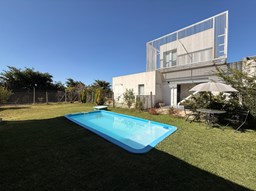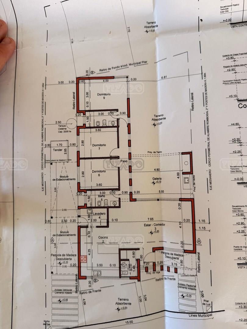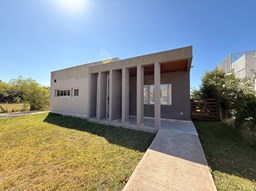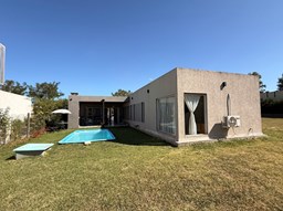Casa en venta en San Ramón – Pilar del Este Propiedad desarrollada en una planta, construida con sistema Steel Frame, sobre lote perimetral con orientación noroeste. Distribución funcional y ambientes bien definidos. Cuenta con ingreso principal, baño de recepción, living comedor integrado, cocina y lavadero con entrada independiente. Sector privado compuesto por dos dormitorios secundarios que comparten un baño completo y dormitorio principal en suite. En el exterior dispone de galería con parrilla y pileta de fibra. La casa está equipada con calefacción por estufas de tiro balanceado. Ubicada en barrio cerrado con seguridad y buen acceso dentro del complejo Pilar del Este. Barrio San Ramón (Entregado) Se encuentra dividido en 600 lotes de 500 m2 de superficie promedio. Cuenta con redes de gas, edificios de acceso, calles asfaltadas con cordón cuneta, agua, cloaca, gas y electricidad subterránea, alumbrado público y forestación. Así, el diferencial y la oportunidad que se presenta en San Ramón es la combinación entre un emprendimiento de calidad y valores económicos.