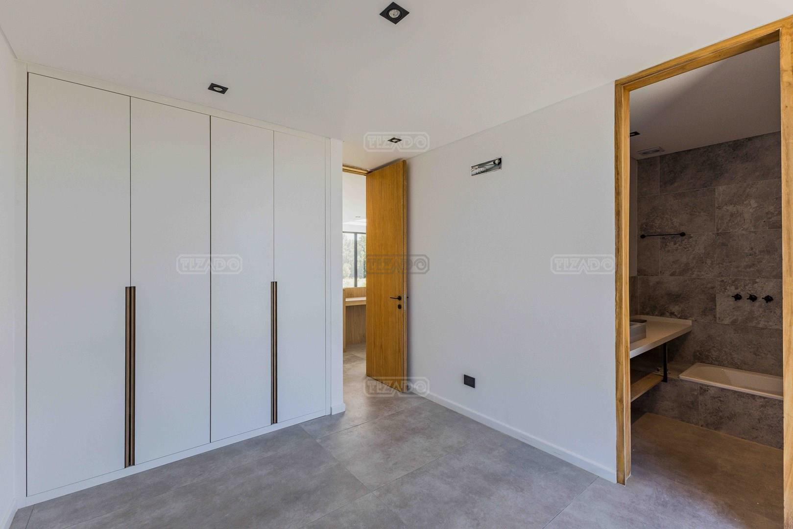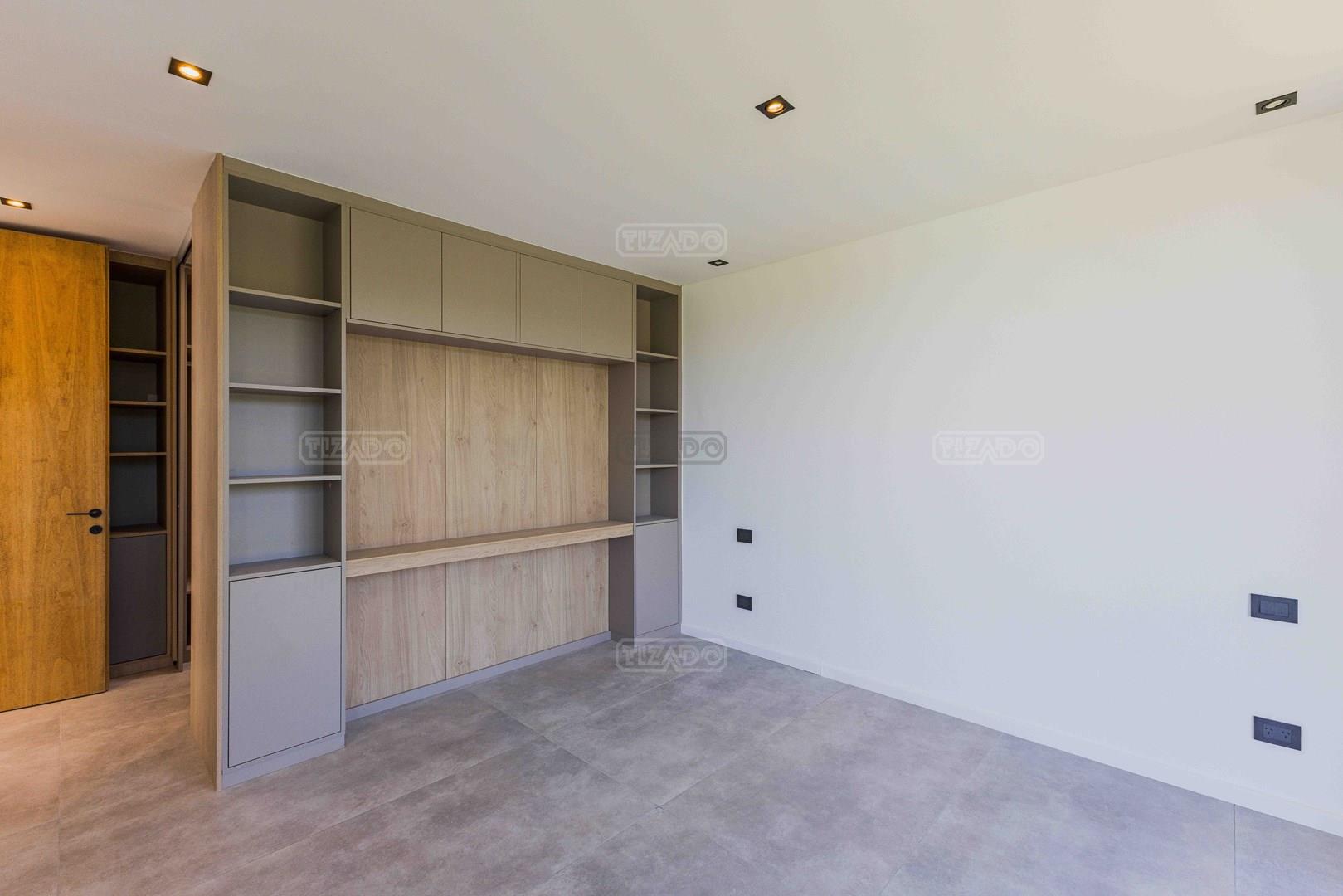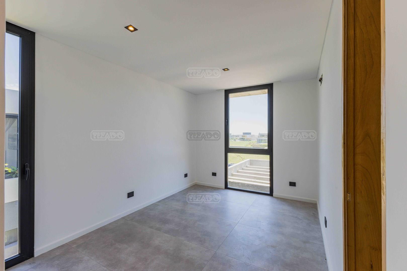 PLANTA BAJA: Living doble altura con aberturas en 2da losa, Dependencia de servicio con baño, escritorio con acceso exterior e interior PLANTA ALTA: 1 Master Suite, 3 Junior Suite, CARACTERISTICAS: Aberturas A40 negras galvanizadas, Sanitarios Roca, Griferías Peirano, Muebles de Mobiline, Puertas en madera altura 2,60 con cerraduras imantadas, Puerta principal en madera con cerradura electrónica wifi y face ID. EXTERIOR: Pileta con jacuzzi, Baño de pileta, parrilla. Se entregan con riego, parquización y paisajismo. La casa se termina para fines de Octubre 2025.