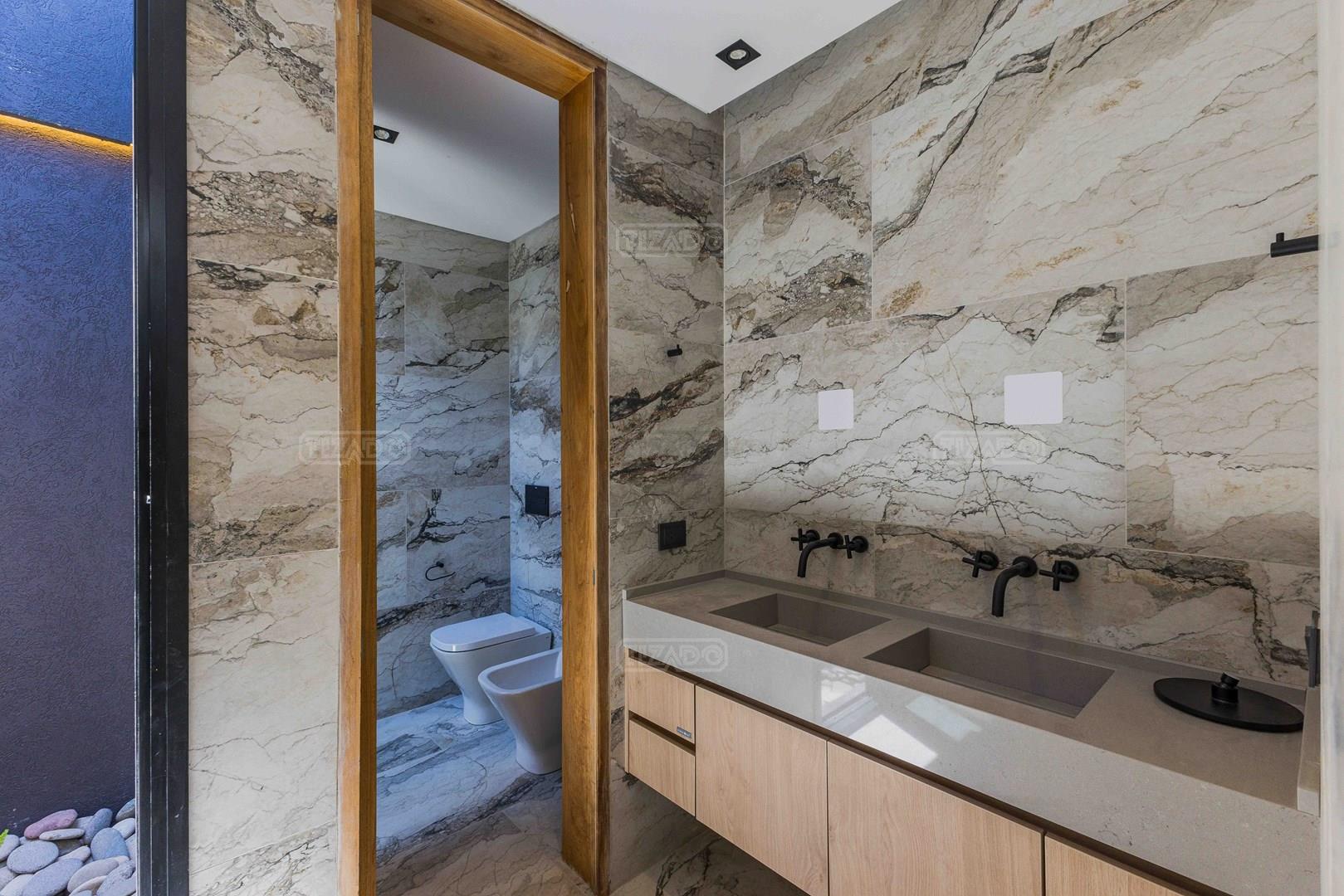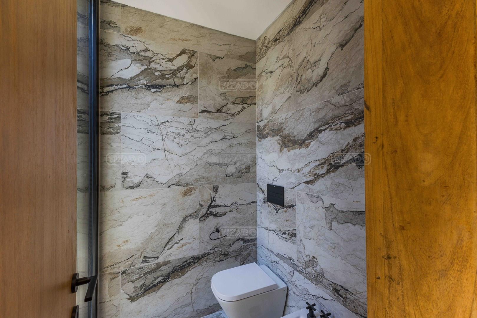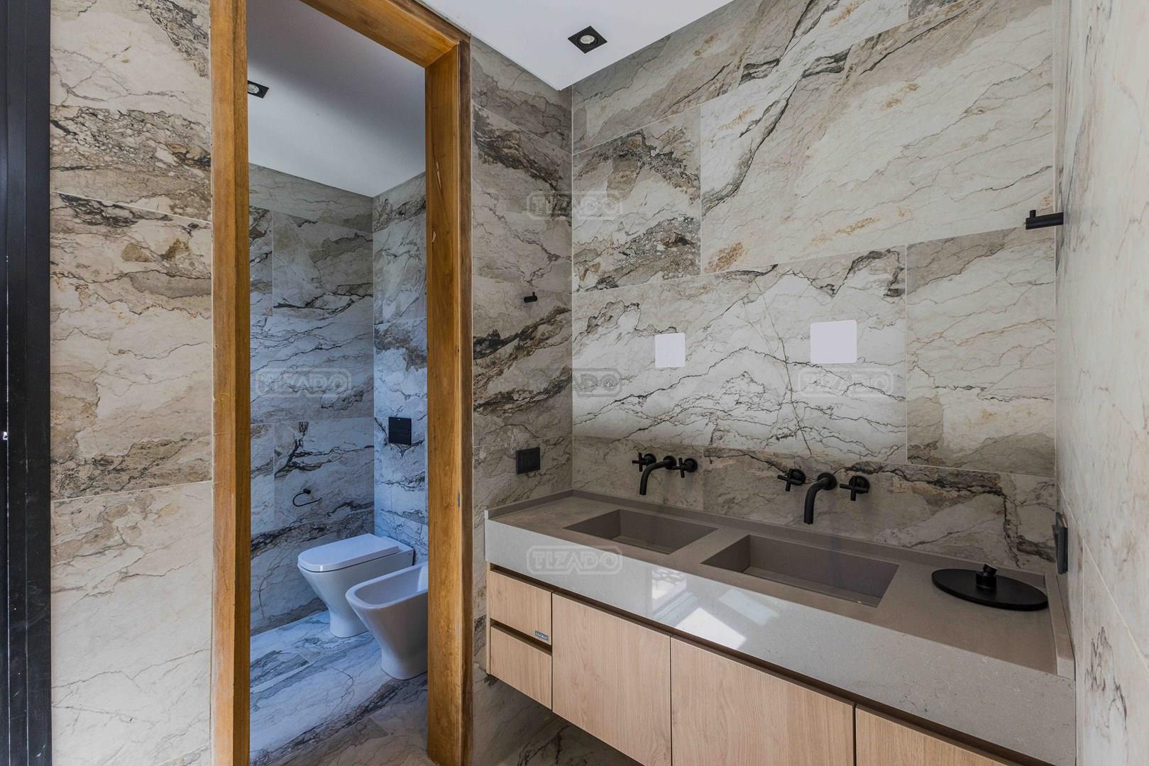 PLANTA BAJA: Living doble altura con aberturas en 2da losa, Dependencia de servicio con baño, escritorio con acceso exterior e interior PLANTA ALTA: 1 Master Suite, 3 Junior Suite, CARACTERISTICAS: Aberturas A40 negras galvanizadas, Sanitarios Roca, Griferías Peirano, Muebles de Mobiline, Puertas en madera altura 2,60 con cerraduras imantadas, Puerta principal en madera con cerradura electrónica wifi y face ID. EXTERIOR: Pileta con jacuzzi, Baño de pileta, parrilla. Se entregan con riego, parquización y paisajismo. La casa se termina para fines de Octubre 2025.