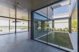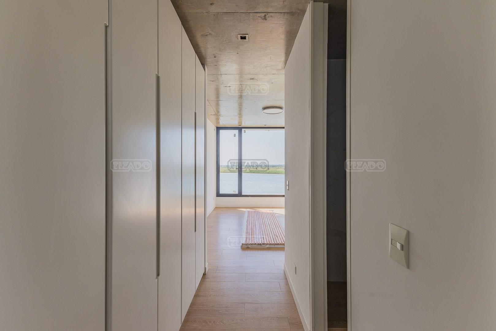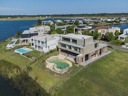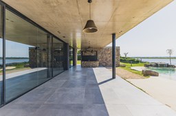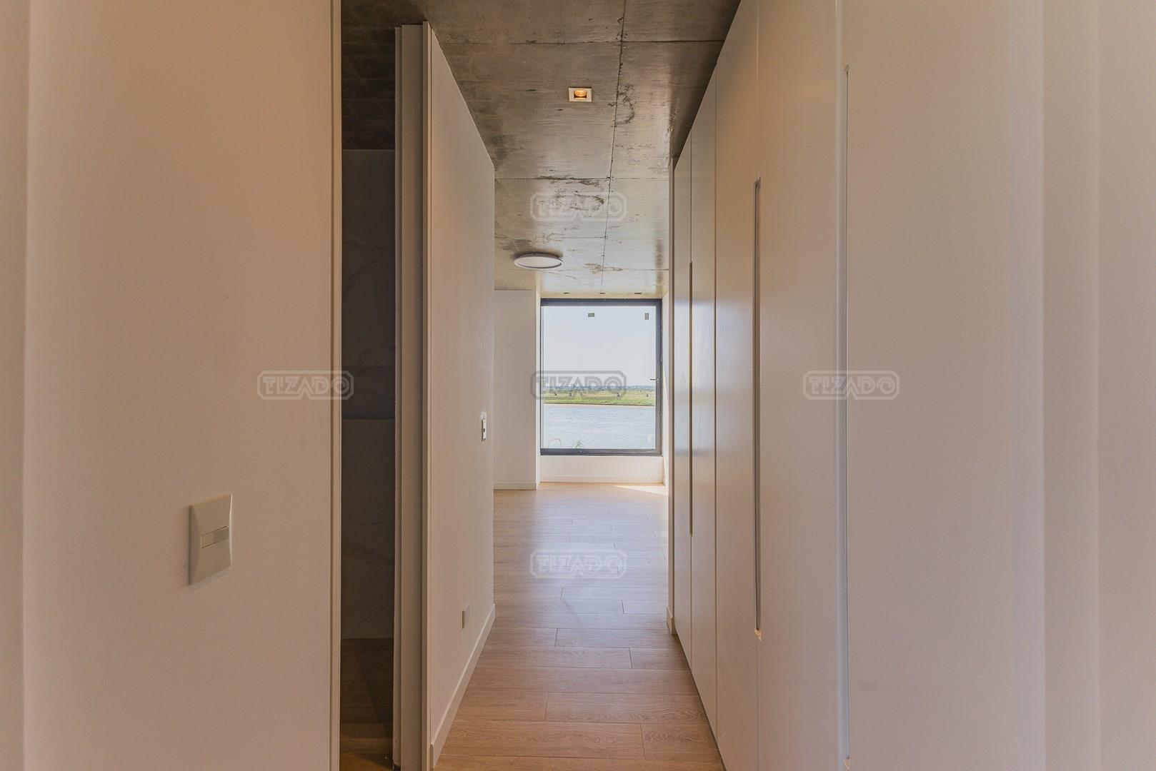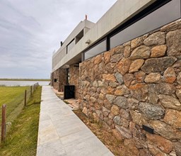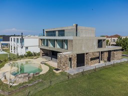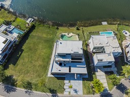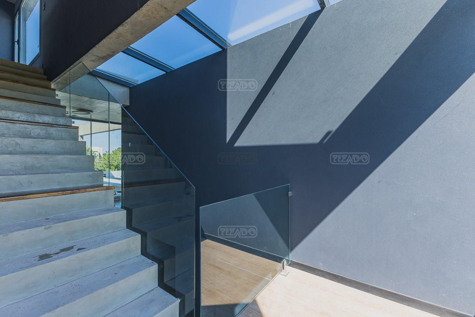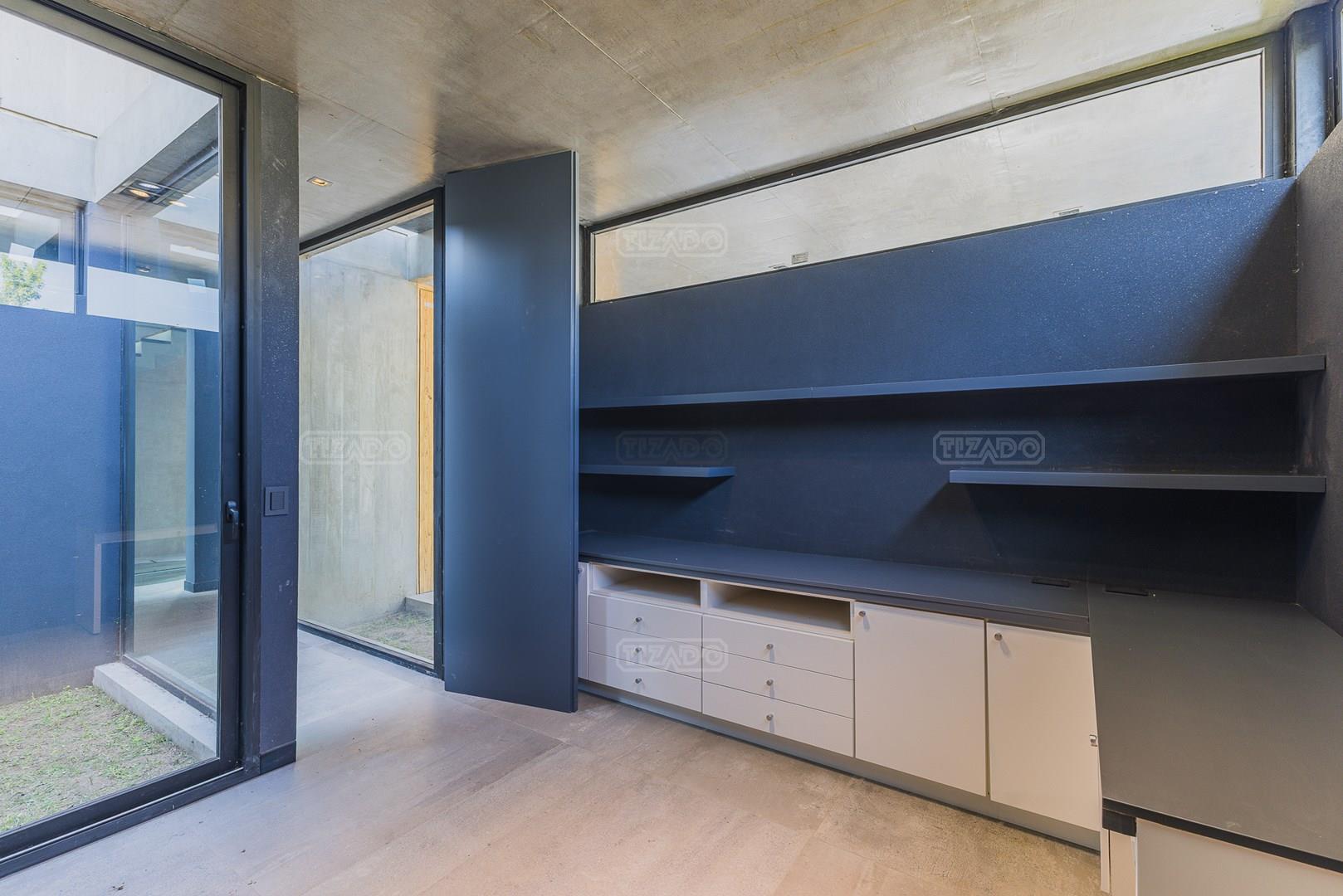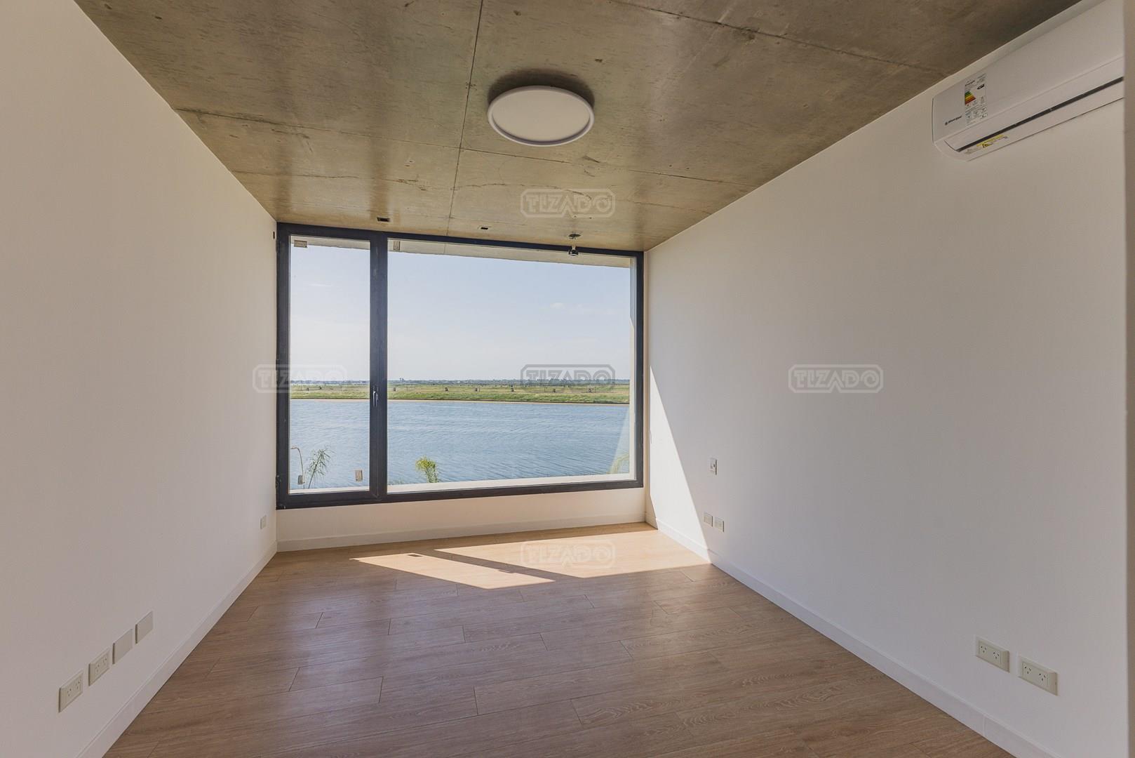 Casa en el barrio Muelles – Puertos del Lago Vivienda desarrollada con estructura de hormigón armado en pisos y techos, con revestimiento exterior en piedra. Acceso principal mediante Maciza puerta de madera. En planta baja, al ingreso, se encuentra un living comedor de amplias dimensiones, con buena luminosidad natural y vista al lago central. En este sector se integra una bodega subterránea vidriada e iluminada, ubicada en el piso. El área de servicio se dispone de forma independiente y cuenta con dependencia con baño, espacio de guardado de máquinas, despensa y circulación directa hacia la cocina. La cocina es amplia y funcional, equipada con anafe a gas y horno eléctrico, con mesadas en piedra negra. Se encuentra separada del living comedor mediante cerramientos de vidrio, que permiten su integración total. Desde este ambiente se accede al exterior. La propiedad cuenta con una galería de 11,61 x 4,50 metros con Losa radiente, parrilla, fogonero, mesada y espacio de guardado. Frente a la galería se desarrolla una piscina de diseño orgánico, Piscina Natural, con medidas irregulares, playa húmeda y solárium, con revestimiento símil arena. El acceso a la planta alta se realiza por escalera de hormigón con escalones revestidos en madera y baranda de vidrio doble. En este nivel se ubican cuatro dormitorios, dispuestos en una misma ala, todos con vista al lago central. Cada dormitorio cuenta con baño en suite y se destacan por sus dimensiones y distribución. La suite principal dispone de bañera tipo tina, ducha independiente y un gran y bien iluminado vestidor. En esta planta se encuentra además un hall central con espacio de escritorio y el lavadero. La segunda planta se accede mediante una escalera con lmterminaciones en madera y luz led, desde el living. En este nivel se desarrolla un playroom y sala de cine, luminoso, con bacha, sector de coffee y recreación. Desde este ambiente se accede a un gimnasio, que cuenta con ducha y sauna. La vivienda dispone de puertas de interiores con estructura metálica y laqueadas, calefacción por losa radiante sectorizada, equipos de aire acondicionado instalados, iluminación LED en escaleras de acceso y equipo presurizador de agua marca ROWA. Sistema de bomba FLOW y baños con válvulas. 2 Calderas. Bomba de Calor Inverter, eléctrica para la Piscina. Mantenimiento de la propiedad durante 1 AÑO.