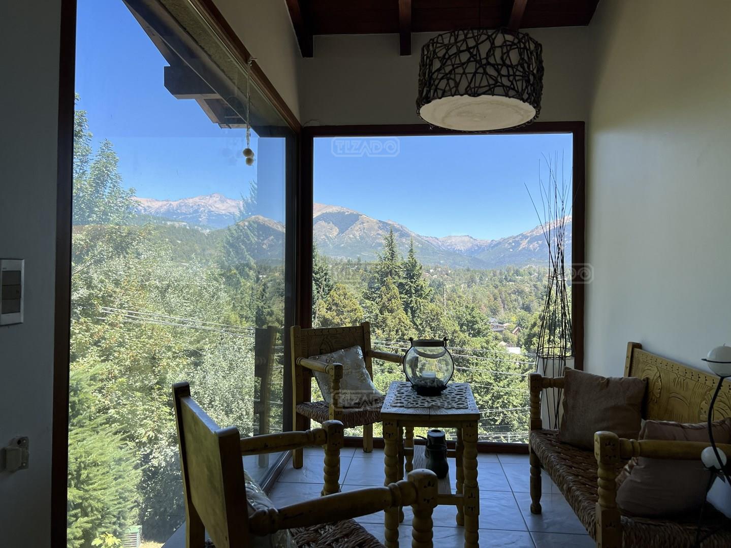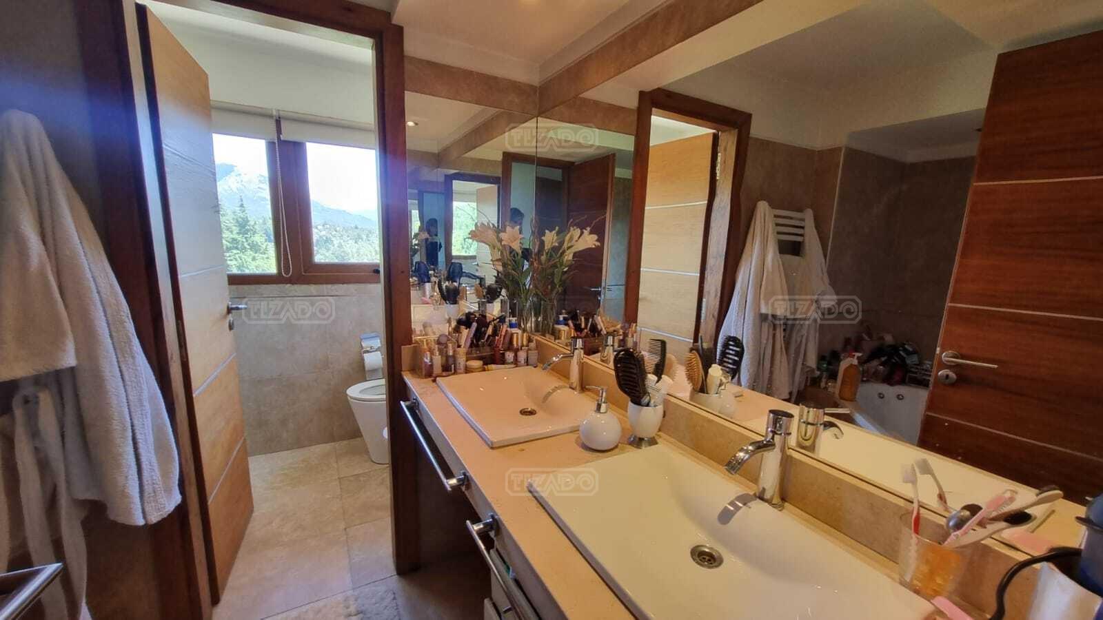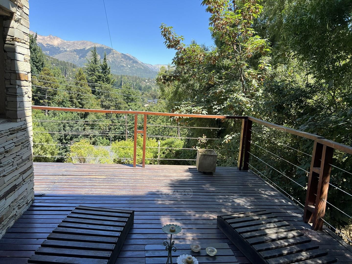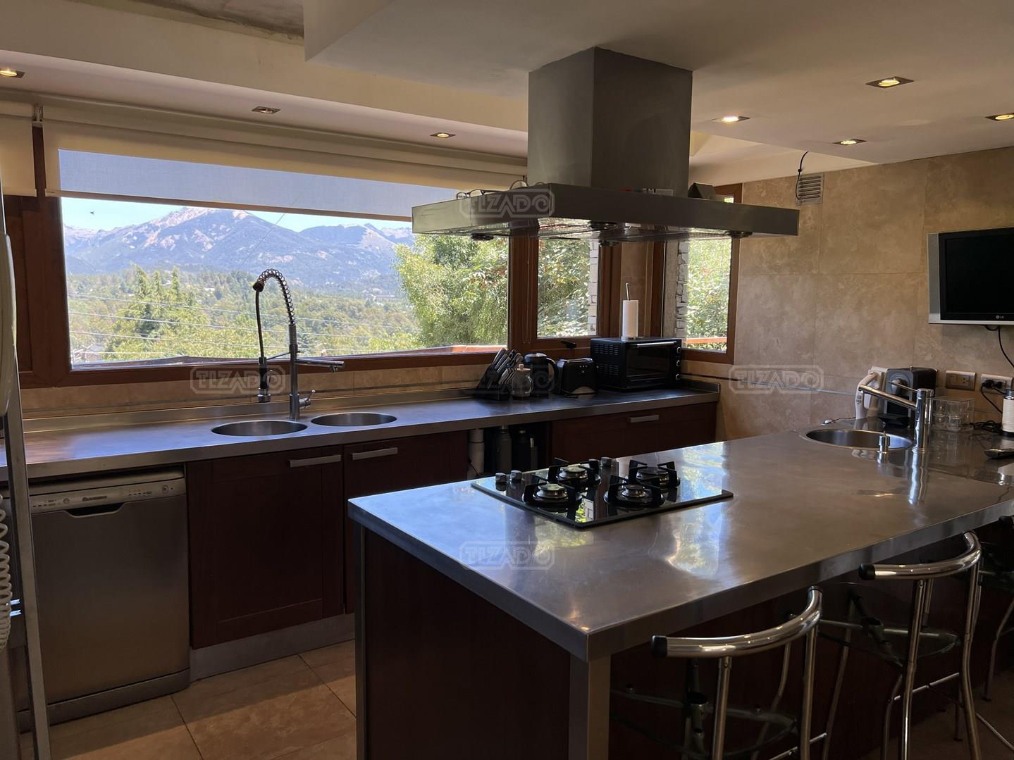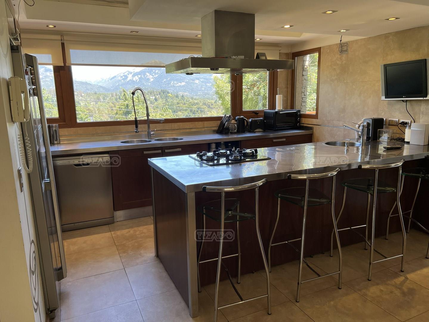 Impecable propiedad situada sobre calle Palo Santo al 400, entre las Avenida Bustillo y Pioneros a la altura del km 7, con excelente interconectividad tanto al centro de la ciudad como a importantes puntos turísticos (Playa Bonita, cruce al Cerro Catedral, Cerro Otto) y también con comercios de cercanía.Se trata de un barrio de muy buen nivel residencial. Cuenta con un lote de 890.56m2 con amplio frente y pendiente ascendente hacia su fondo, trabajado en aterrazamientos que nivela toda su circulación. Orientación Oeste con excelentes vistas panorámicas al Cerro Catedral La propiedad cuenta con acceso vehicular con baldosones y portón de hierro automatizado, playón de maniobras y de circulación que da acceso a cochera doble con portón automatizado. Mediante escalera se accede a la planta principal de la propiedad la cual dispone de hall recibidor, amplio living con hogar a leña revestido en piedra natural y pisos en madera, conectado con el área de comedor con pisos porcelanato, ambos espacios totalmente vidriados con vistas y salida al jardín trasero el cual dispone área de deck, jacuzzi, parrilla revestida en piedra natural y con tiraje en hierro y escalera que otorga acceso al jardín más elevado del terreno. Baño de tipo toilette con detalles en revestimiento de piedra. Cocina con doble circulación la cual posee excelente equipamiento, artefactos marca Johnson de excelente calidad, isla y detalles en piedra en sus paredes. Se trata de un espacio con muy buena luz natural y excelentes vistas. Y por último en esta planta posee un hermoso espacio de esparcimiento, que se trata de un quincho completamente equipado con parrilla, horno y bacha que posee circulación hacia la cocina, hacia la terraza trasera y con salida a un generoso balcón hacia el frente de la casa. En subsuelo dispone de amplia cochera para 2 vehículos de porte con portones automatizados, área de lavandería, área de servicios / máquinas y una amplia baulera como espacio de guardado. Mediante escaleras con revestimiento en madera se accede a la planta alta la cual cuenta con amplio y cómodo palier de distribución, área de escritorio o mirador totalmente vidriado con magníficas vistas, área de playroom o dormitorio con entrepiso (actualmente destinado a gimnasio), 2 Dormitorios y Baño completo con bañera, compartimentado. Y la master suite de grandes dimensiones, doble altura de techos con excelente luz natural y hermosas vistas, con baño completo con jacuzzi y ducha, compartimentado y con doble bacha y un amplio vestidor. La fachada cuenta con diversas materialidades como ser piedra natural en tonos claros, siding y revear, que dan un aspecto de modernidad acompañado también por su arquitectura de diseño que combina modernidad con el estilo patagónico. La calefacción es por losa radiante (incluso en el área de cocheras). El agua caliente es por termotanque (posee dos: uno abastece a la casa y el otro al jacuzzi) Todas las abertura son de PVC simil madera con DVH (doble vidrio hermético). Además de la baulera que posee en el subsuelo cuenta en la planta alta con un altillo de importante tamaño como espacio de almacenamiento / guardado. Todo el jardín cuenta con riego por aspersión. ¡Impecable estado! Ni Tizado Propiedades (M&G Inmuebles Patagonia SRL), ni el Martillero a cargo son responsables de los indicadores urbanísticos, factibilidades de construcción, ni usos permitidos sobre el inmueble objeto del presente. Corredor y Martillero Matriculado: Sebastián Caretta - Matricula N.333-RP-20 F.412 T.Il
