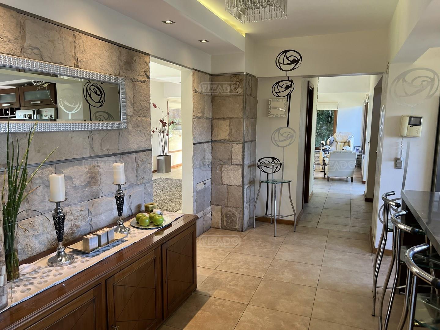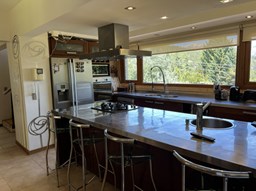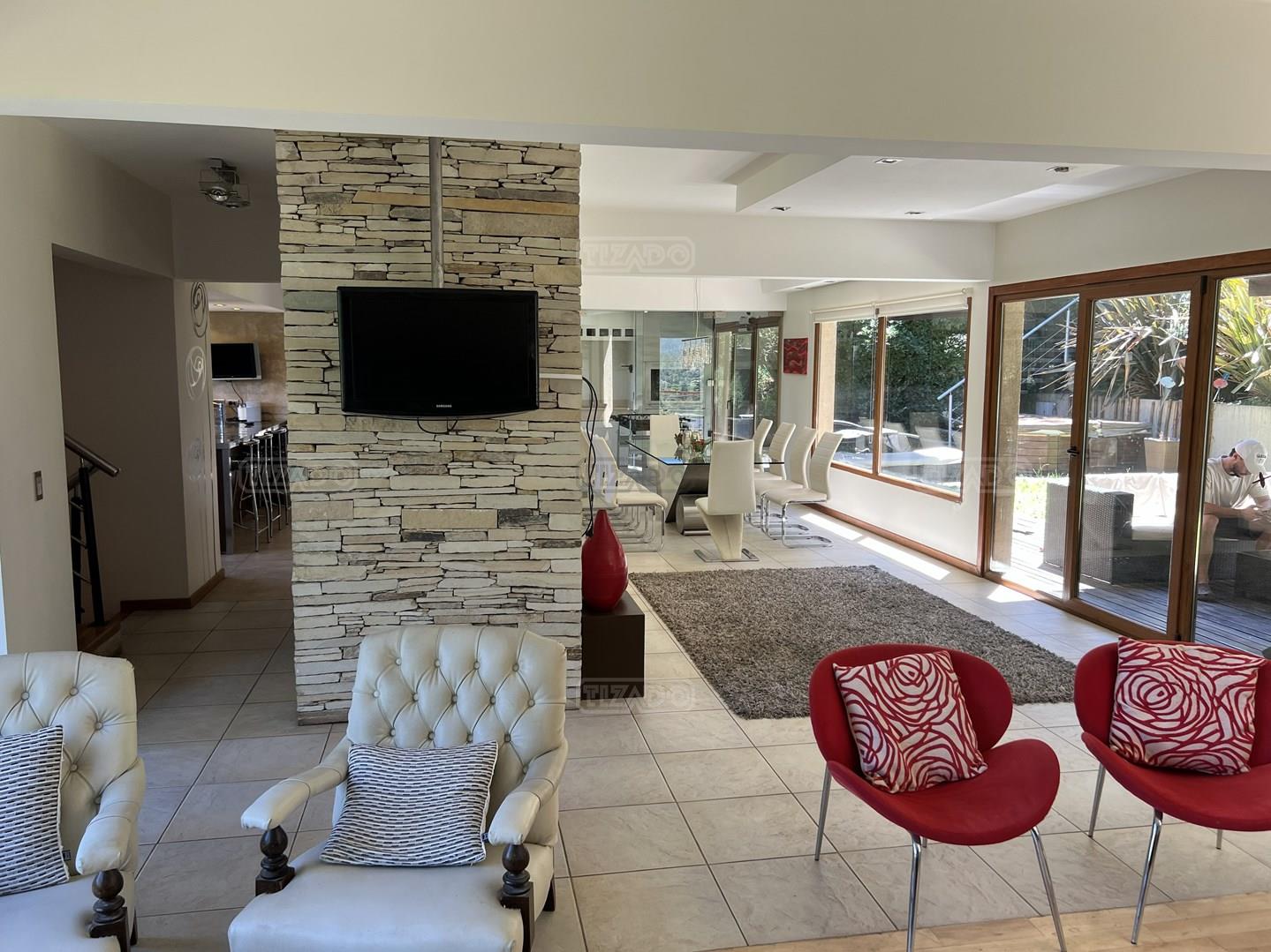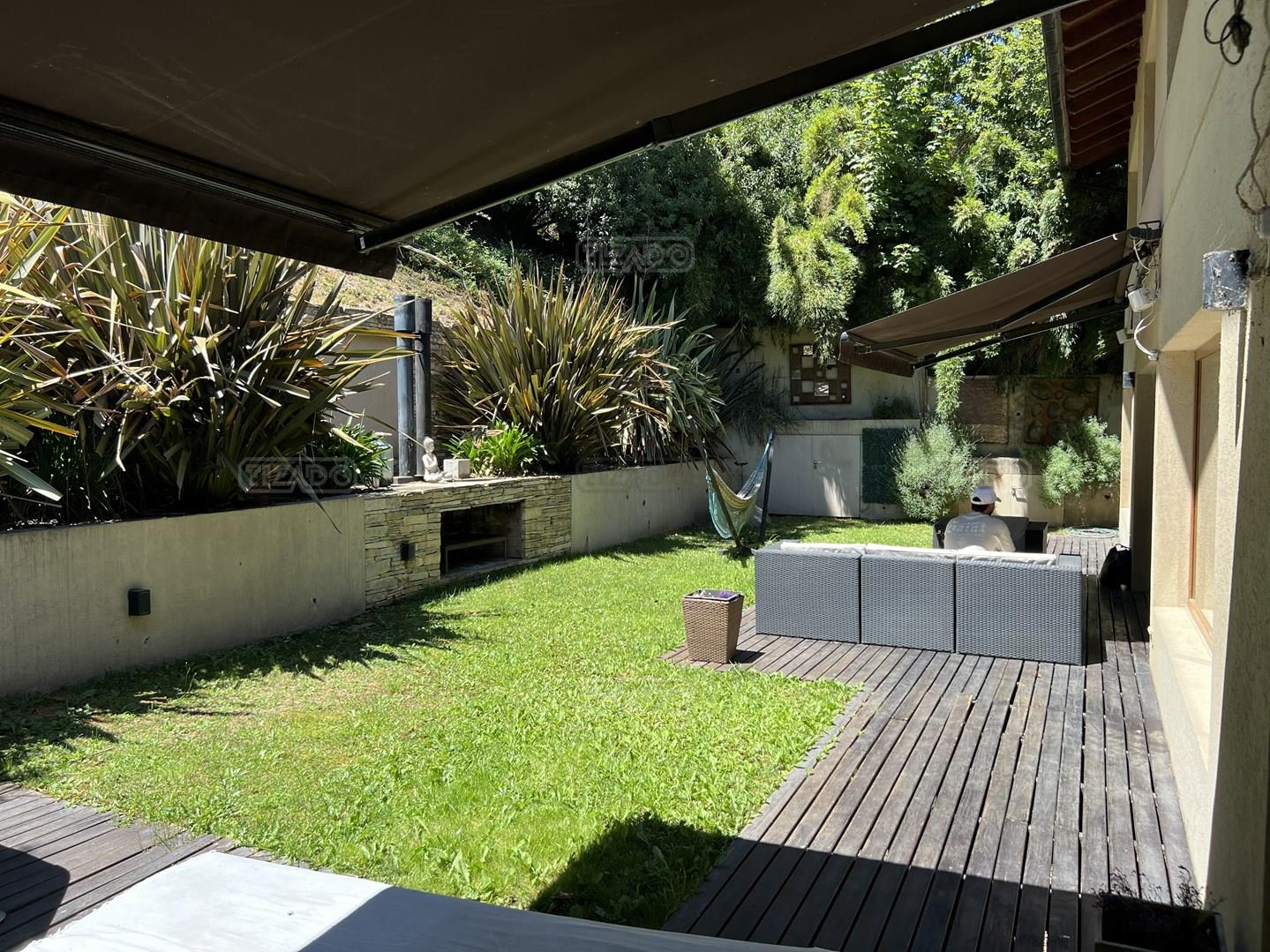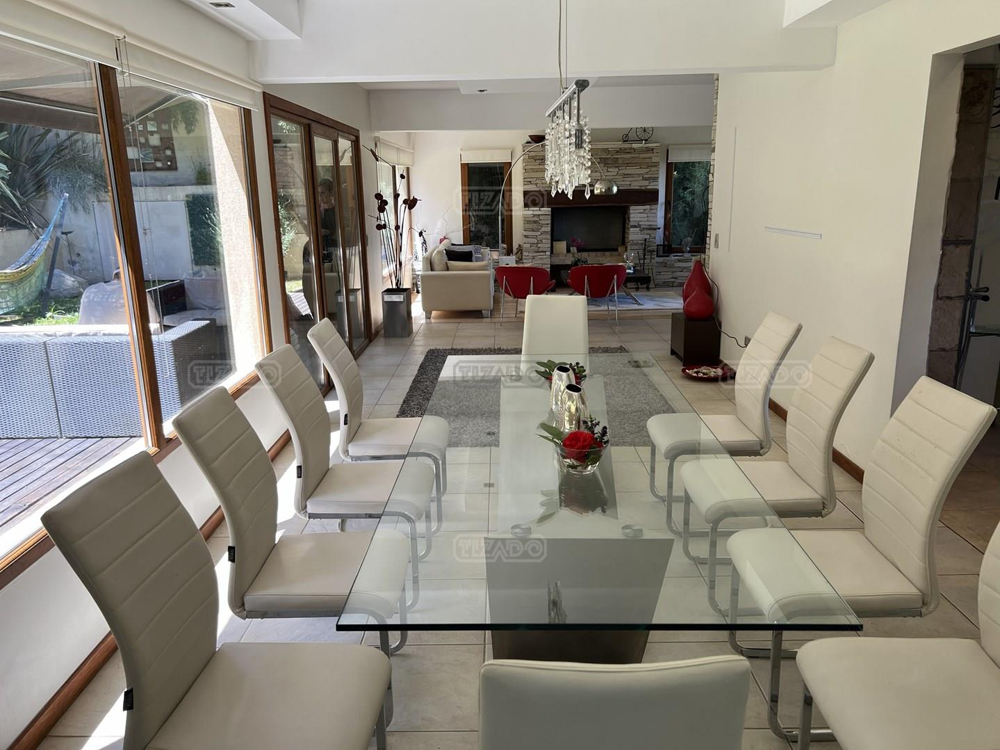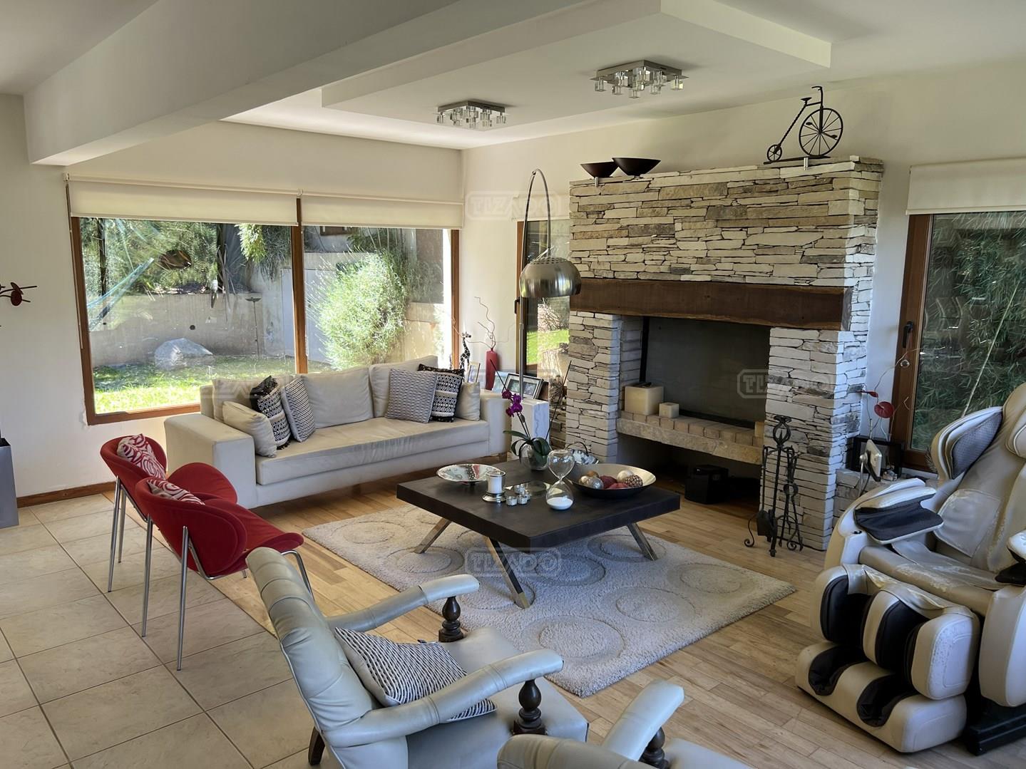 Impecable propiedad situada sobre calle Palo Santo al 400, entre las Avenida Bustillo y Pioneros a la altura del km 7, con excelente interconectividad tanto al centro de la ciudad como a importantes puntos turísticos (Playa Bonita, cruce al Cerro Catedral, Cerro Otto) y también con comercios de cercanía.Se trata de un barrio de muy buen nivel residencial. Cuenta con un lote de 890.56m2 con amplio frente y pendiente ascendente hacia su fondo, trabajado en aterrazamientos que nivela toda su circulación. Orientación Oeste con excelentes vistas panorámicas al Cerro Catedral La propiedad cuenta con acceso vehicular con baldosones y portón de hierro automatizado, playón de maniobras y de circulación que da acceso a cochera doble con portón automatizado. Mediante escalera se accede a la planta principal de la propiedad la cual dispone de hall recibidor, amplio living con hogar a leña revestido en piedra natural y pisos en madera, conectado con el área de comedor con pisos porcelanato, ambos espacios totalmente vidriados con vistas y salida al jardín trasero el cual dispone área de deck, jacuzzi, parrilla revestida en piedra natural y con tiraje en hierro y escalera que otorga acceso al jardín más elevado del terreno. Baño de tipo toilette con detalles en revestimiento de piedra. Cocina con doble circulación la cual posee excelente equipamiento, artefactos marca Johnson de excelente calidad, isla y detalles en piedra en sus paredes. Se trata de un espacio con muy buena luz natural y excelentes vistas. Y por último en esta planta posee un hermoso espacio de esparcimiento, que se trata de un quincho completamente equipado con parrilla, horno y bacha que posee circulación hacia la cocina, hacia la terraza trasera y con salida a un generoso balcón hacia el frente de la casa. En subsuelo dispone de amplia cochera para 2 vehículos de porte con portones automatizados, área de lavandería, área de servicios / máquinas y una amplia baulera como espacio de guardado. Mediante escaleras con revestimiento en madera se accede a la planta alta la cual cuenta con amplio y cómodo palier de distribución, área de escritorio o mirador totalmente vidriado con magníficas vistas, área de playroom o dormitorio con entrepiso (actualmente destinado a gimnasio), 2 Dormitorios y Baño completo con bañera, compartimentado. Y la master suite de grandes dimensiones, doble altura de techos con excelente luz natural y hermosas vistas, con baño completo con jacuzzi y ducha, compartimentado y con doble bacha y un amplio vestidor. La fachada cuenta con diversas materialidades como ser piedra natural en tonos claros, siding y revear, que dan un aspecto de modernidad acompañado también por su arquitectura de diseño que combina modernidad con el estilo patagónico. La calefacción es por losa radiante (incluso en el área de cocheras). El agua caliente es por termotanque (posee dos: uno abastece a la casa y el otro al jacuzzi) Todas las abertura son de PVC simil madera con DVH (doble vidrio hermético). Además de la baulera que posee en el subsuelo cuenta en la planta alta con un altillo de importante tamaño como espacio de almacenamiento / guardado. Todo el jardín cuenta con riego por aspersión. ¡Impecable estado! Ni Tizado Propiedades (M&G Inmuebles Patagonia SRL), ni el Martillero a cargo son responsables de los indicadores urbanísticos, factibilidades de construcción, ni usos permitidos sobre el inmueble objeto del presente. Corredor y Martillero Matriculado: Sebastián Caretta - Matricula N.333-RP-20 F.412 T.Il