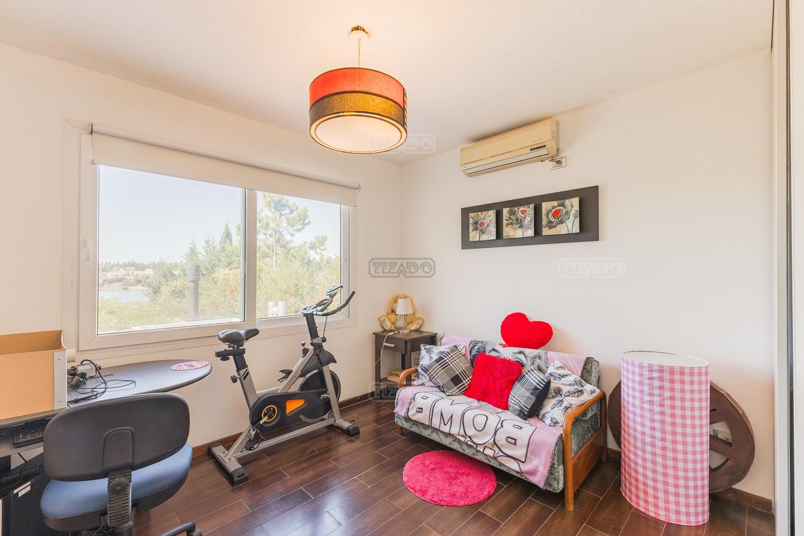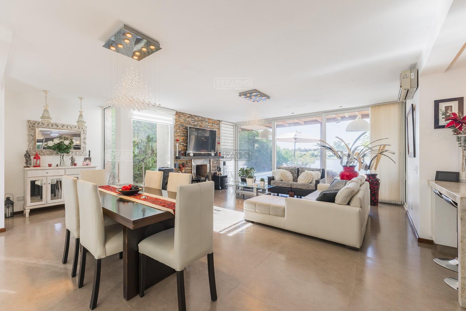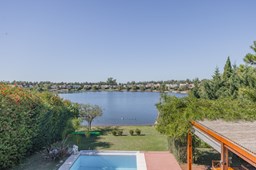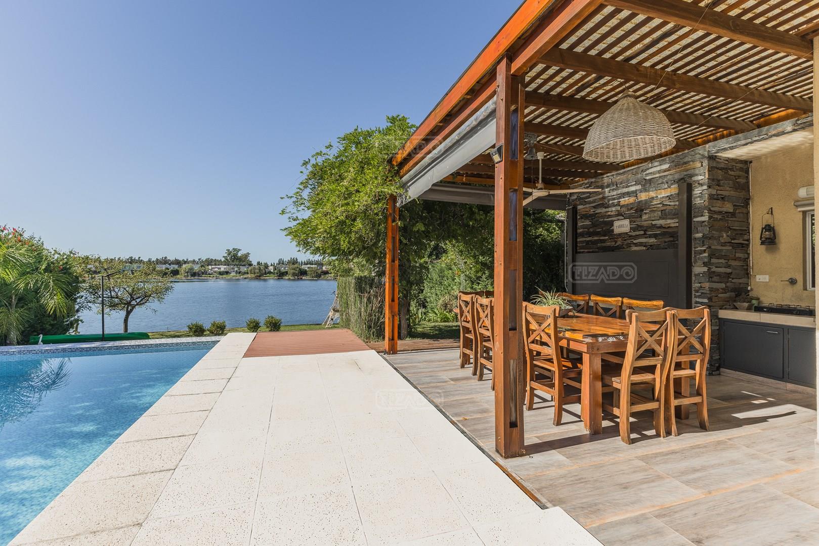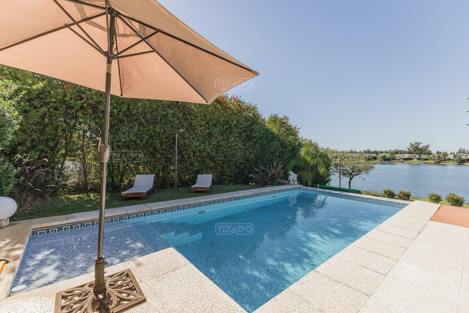 Muy linda casa desarrollada en dos plantas sobre lote al lago de 855 m², con orientación noreste, lo que garantiza excelente luminosidad durante todo el día y sol en el jardín. La propiedad cuenta con 260 m² construidos y una distribución cómoda y funcional. En planta baja, amplio sector social con living y comedor con vistas al jardín y al lago, cocina con muy buen espacio de guardado y un dormitorio en planta baja con baño completo, ideal como cuarto de huéspedes, escritorio o playroom. En planta alta se encuentran dos dormitorios que comparten un baño completo, además de una suite principal con baño privado. El exterior ofrece jardín con salida directa al lago, generando un entorno abierto y muy agradable para disfrutar de la vista y la naturaleza. Ubicada en el barrio San Agustín, dentro del complejo Villanueva, una zona muy valorada por su entorno natural, lagunas y cercanía a servicios y accesos.