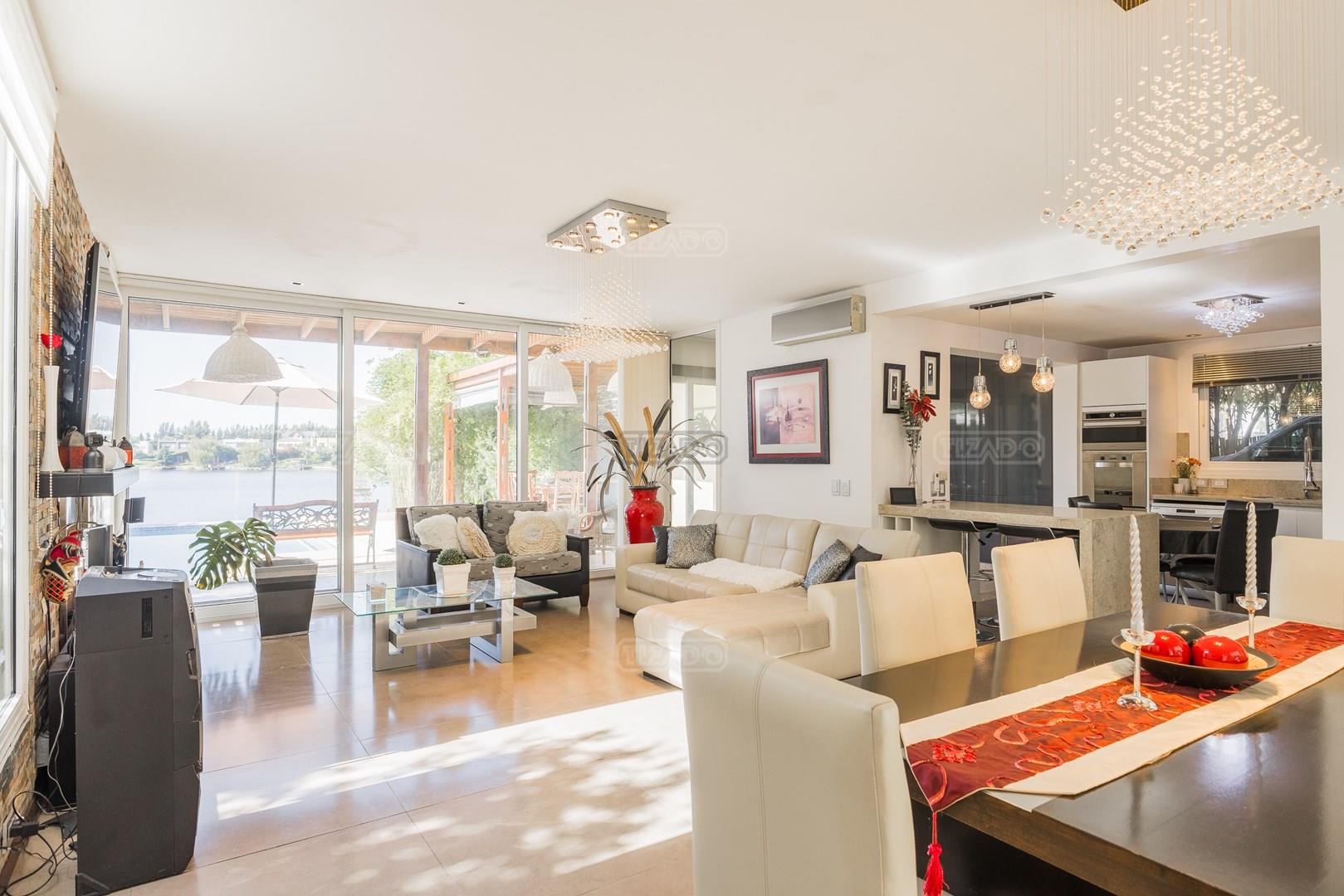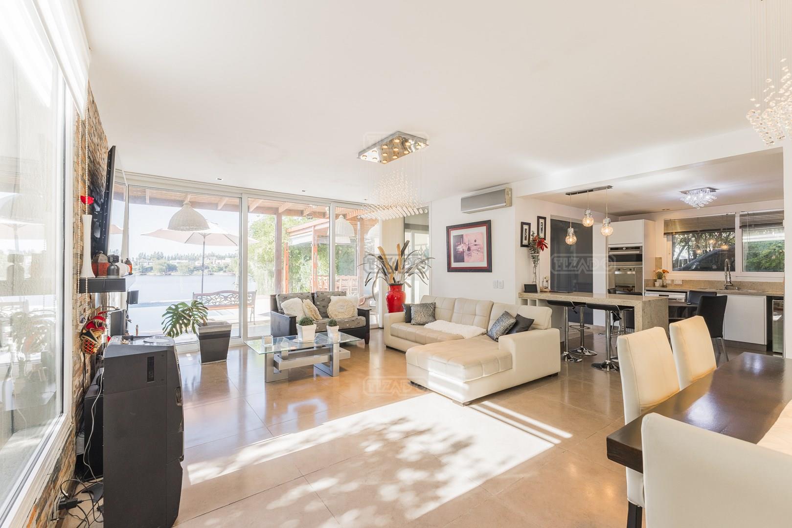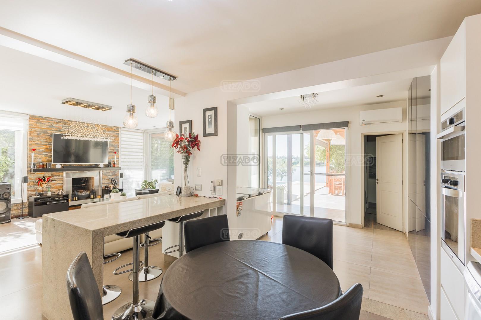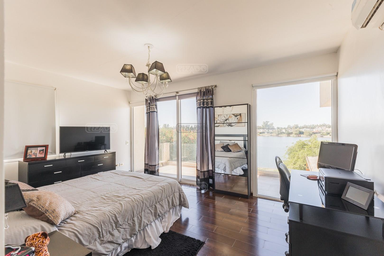 Muy linda casa desarrollada en dos plantas sobre lote al lago de 855 m², con orientación noreste, lo que garantiza excelente luminosidad durante todo el día y sol en el jardín. La propiedad cuenta con 260 m² construidos y una distribución cómoda y funcional. En planta baja, amplio sector social con living y comedor con vistas al jardín y al lago, cocina con muy buen espacio de guardado y un dormitorio en planta baja con baño completo, ideal como cuarto de huéspedes, escritorio o playroom. En planta alta se encuentran dos dormitorios que comparten un baño completo, además de una suite principal con baño privado. El exterior ofrece jardín con salida directa al lago, generando un entorno abierto y muy agradable para disfrutar de la vista y la naturaleza. Ubicada en el barrio San Agustín, dentro del complejo Villanueva, una zona muy valorada por su entorno natural, lagunas y cercanía a servicios y accesos.