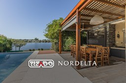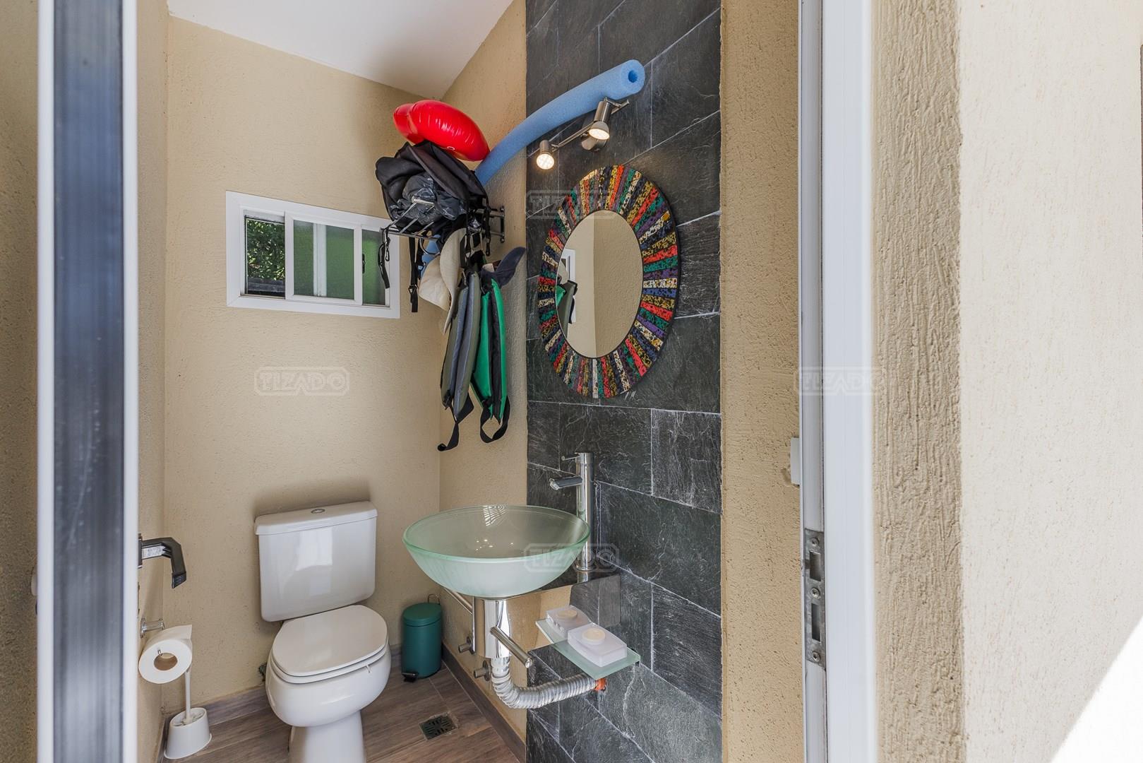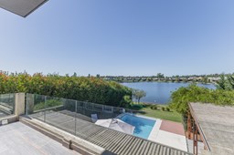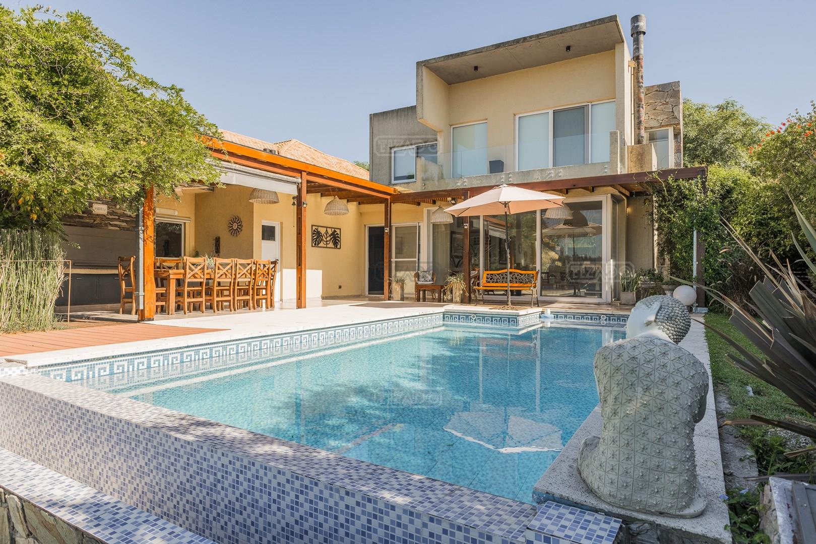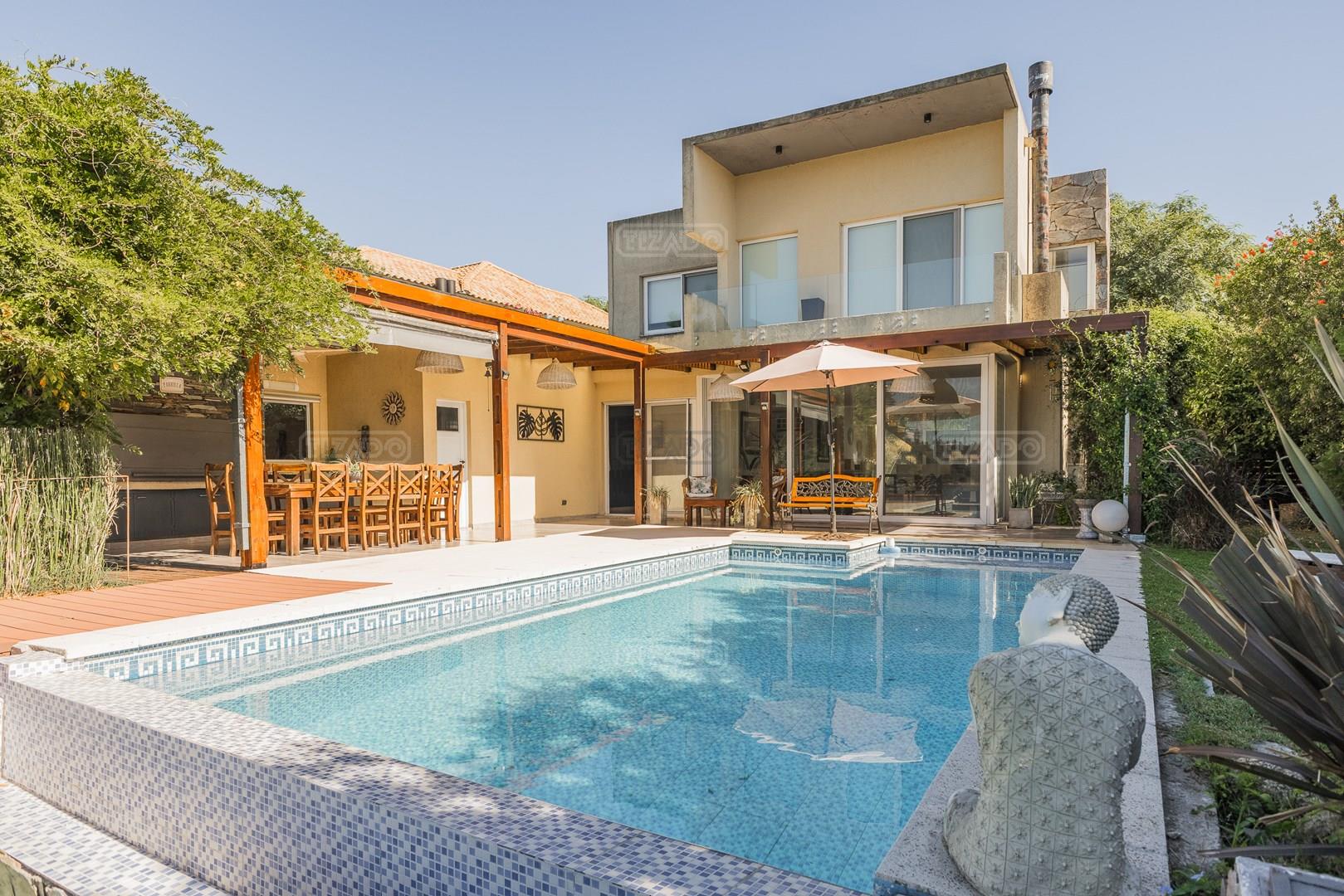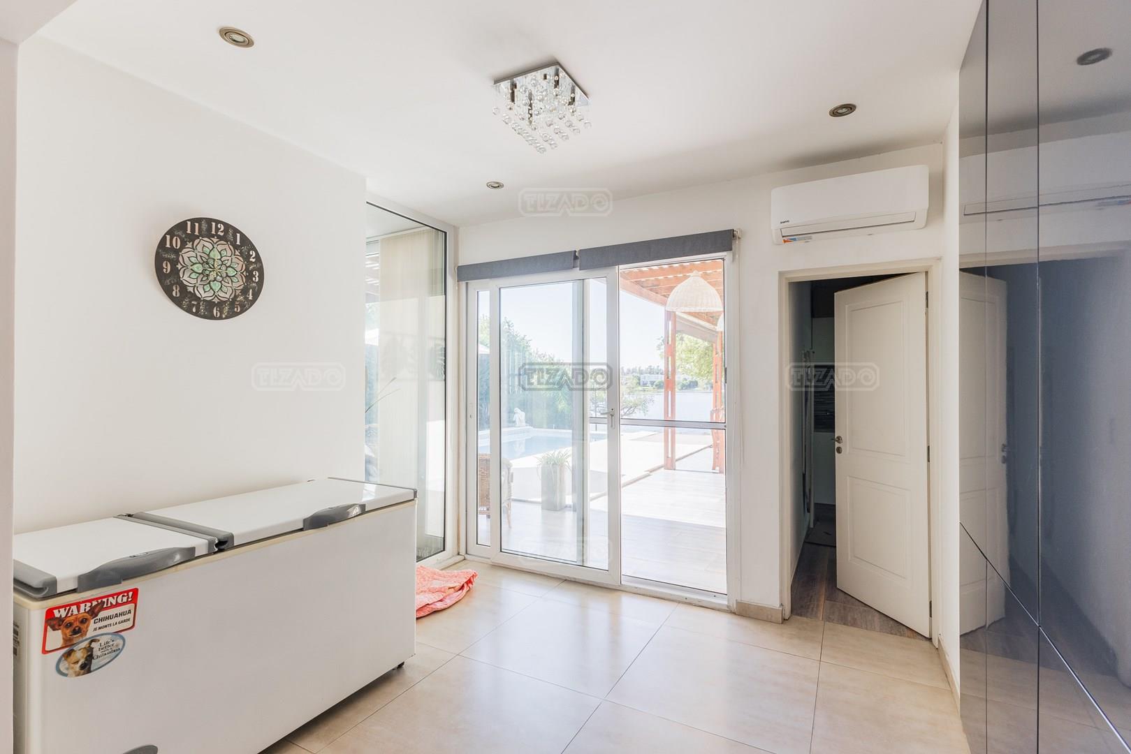 Muy linda casa desarrollada en dos plantas sobre lote al lago de 855 m², con orientación noreste, lo que garantiza excelente luminosidad durante todo el día y sol en el jardín. La propiedad cuenta con 260 m² construidos y una distribución cómoda y funcional. En planta baja, amplio sector social con living y comedor con vistas al jardín y al lago, cocina con muy buen espacio de guardado y un dormitorio en planta baja con baño completo, ideal como cuarto de huéspedes, escritorio o playroom. En planta alta se encuentran dos dormitorios que comparten un baño completo, además de una suite principal con baño privado. El exterior ofrece jardín con salida directa al lago, generando un entorno abierto y muy agradable para disfrutar de la vista y la naturaleza. Ubicada en el barrio San Agustín, dentro del complejo Villanueva, una zona muy valorada por su entorno natural, lagunas y cercanía a servicios y accesos.