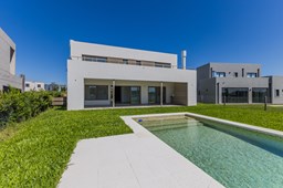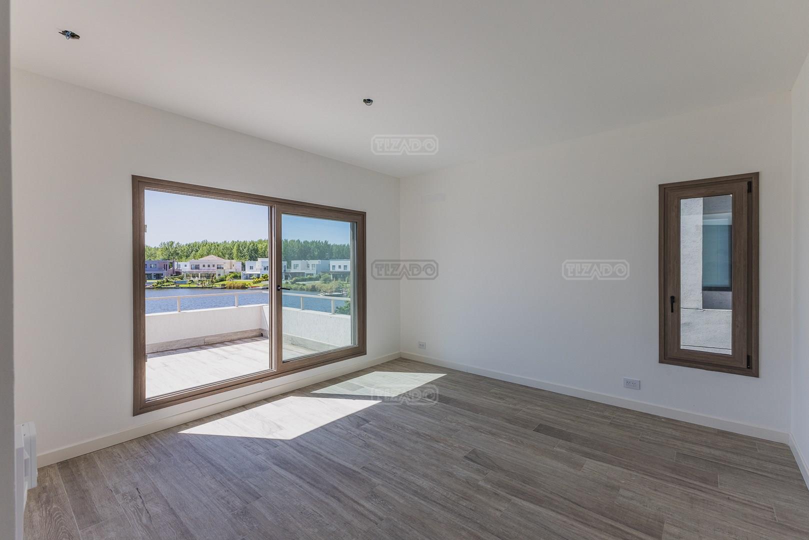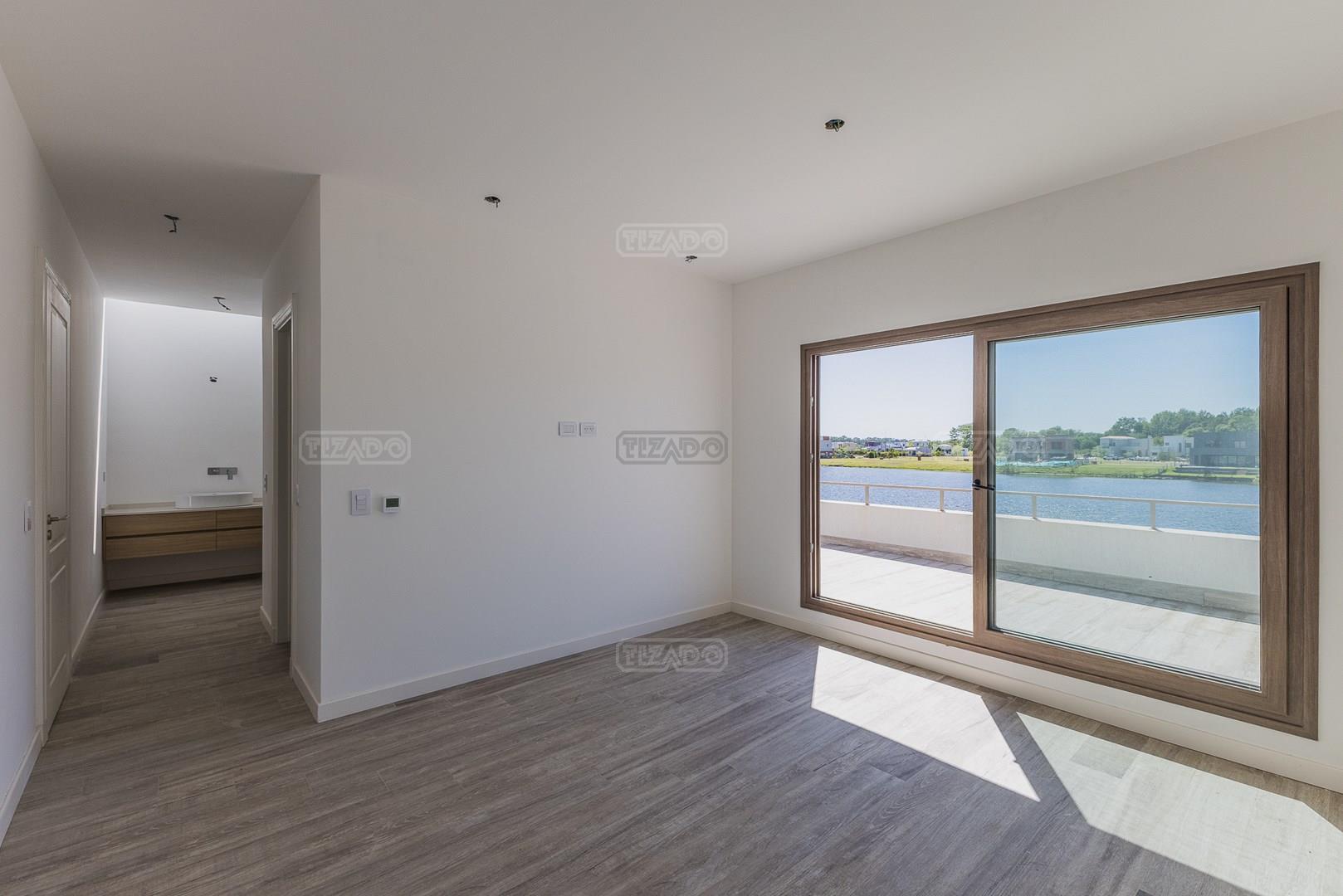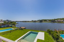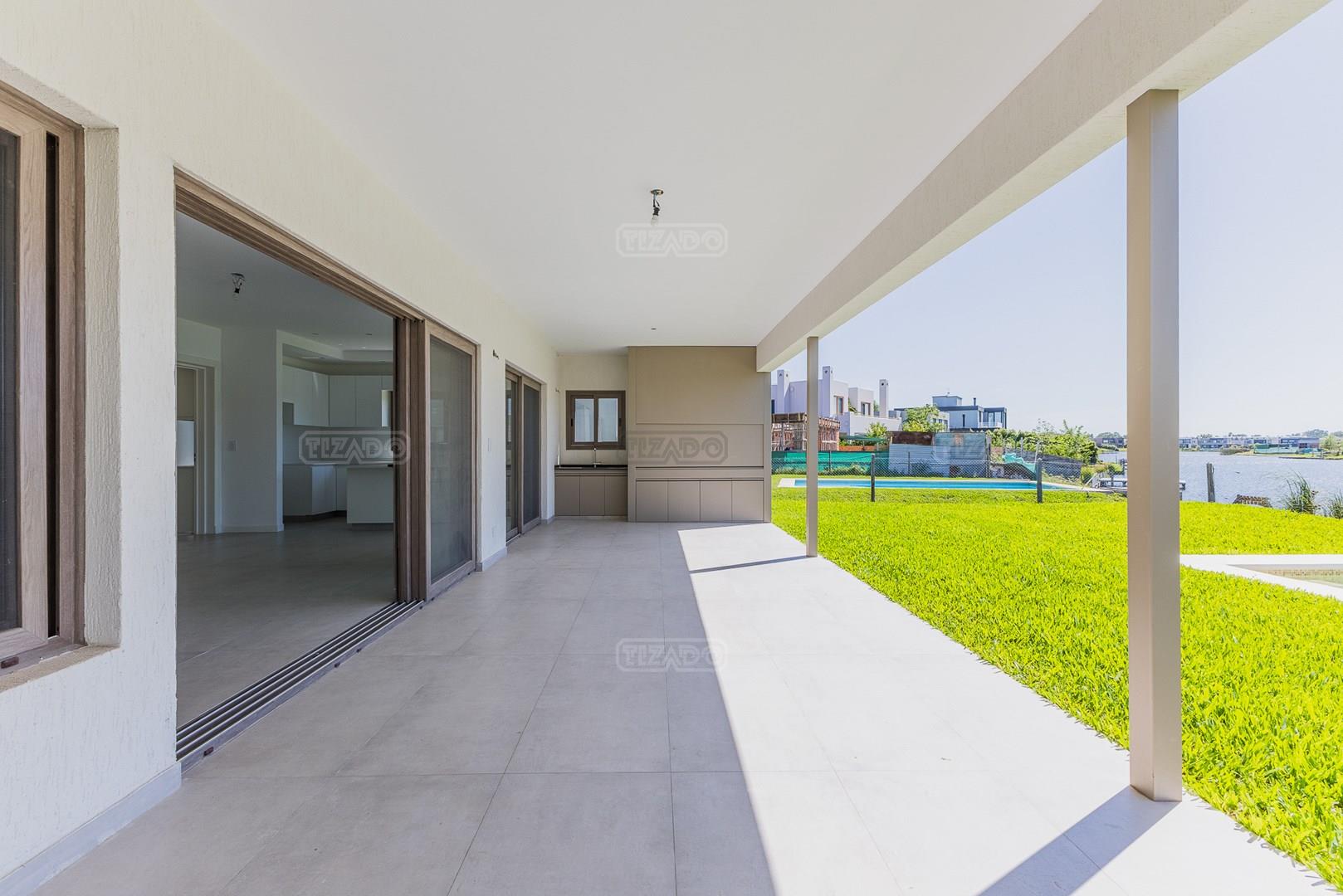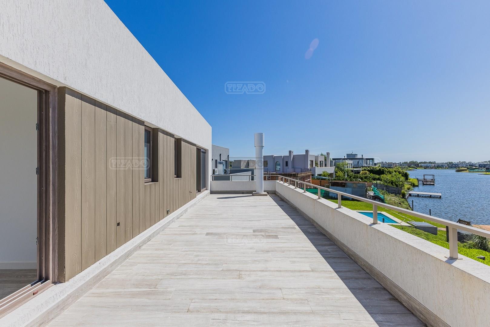 Moderna casa de lineas rectas a la laguna de Santa Ana. PB recepción, gran living con hogar, comedor y cocina integrada, toilette. Lavadero. Escritorio o dormitorio de huéspedes con baño completo (o dependencia de servicio) PA 4 dormitorios, principal en suite, otros 3 dormitorios comparten un baño. Exterior, gran galeria con parrilla con frente de chapa tipo guillotina, parque y piscina de borde infinito Aberturas de PVC simil madera con DVH y mosquiteros. Calefacción por losa radiante, preinstalacion de AA en todos los ambientes, Incluye frentes e interiores de placard pisos porcelanato de 60x120 en PB y pisos de porcelanato simil madera de 19x115 en PA Mesadas de silestone White Stone Quartz en cocina y lavadero, Blanco Norte en baño suite y chicos. Mesada Negro Brasil Leather en parrilla. Mampara en duchas baño suite de planta alta. Vanitorys en todos los baños excepto en el toilette. Muebles de cocina bajo mesadas con alacenas e isla en blanco laqueados. Horno eléctrico Whirpool, Anafe a gas marca Whirpool. Campana en cocina marca TST. Jardín nivelado. Estacado a laguna con quebrachos. Tanque cisterna de 3.500 lts de capacidad. Bomba presurizadora marca Espa. Caldera dual Baxi. Pileta de 3.5x7 con desborde infinito en el ancho, solado y luces, revestida con venecitas. Equipo de filtrado marca Vulcano. Accesos peatonales y vehiculares en hormigón alisado. Cochera cubierta para 2 autos, estacionamiento sin techar para 4 autos.